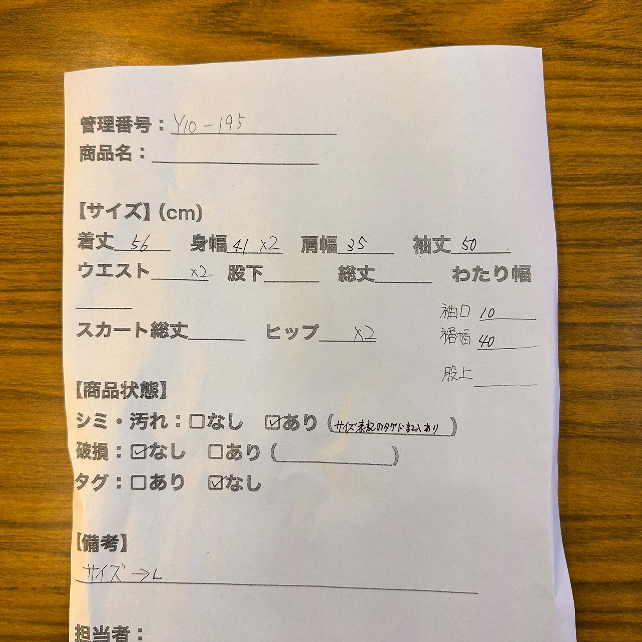 平置き採寸です。