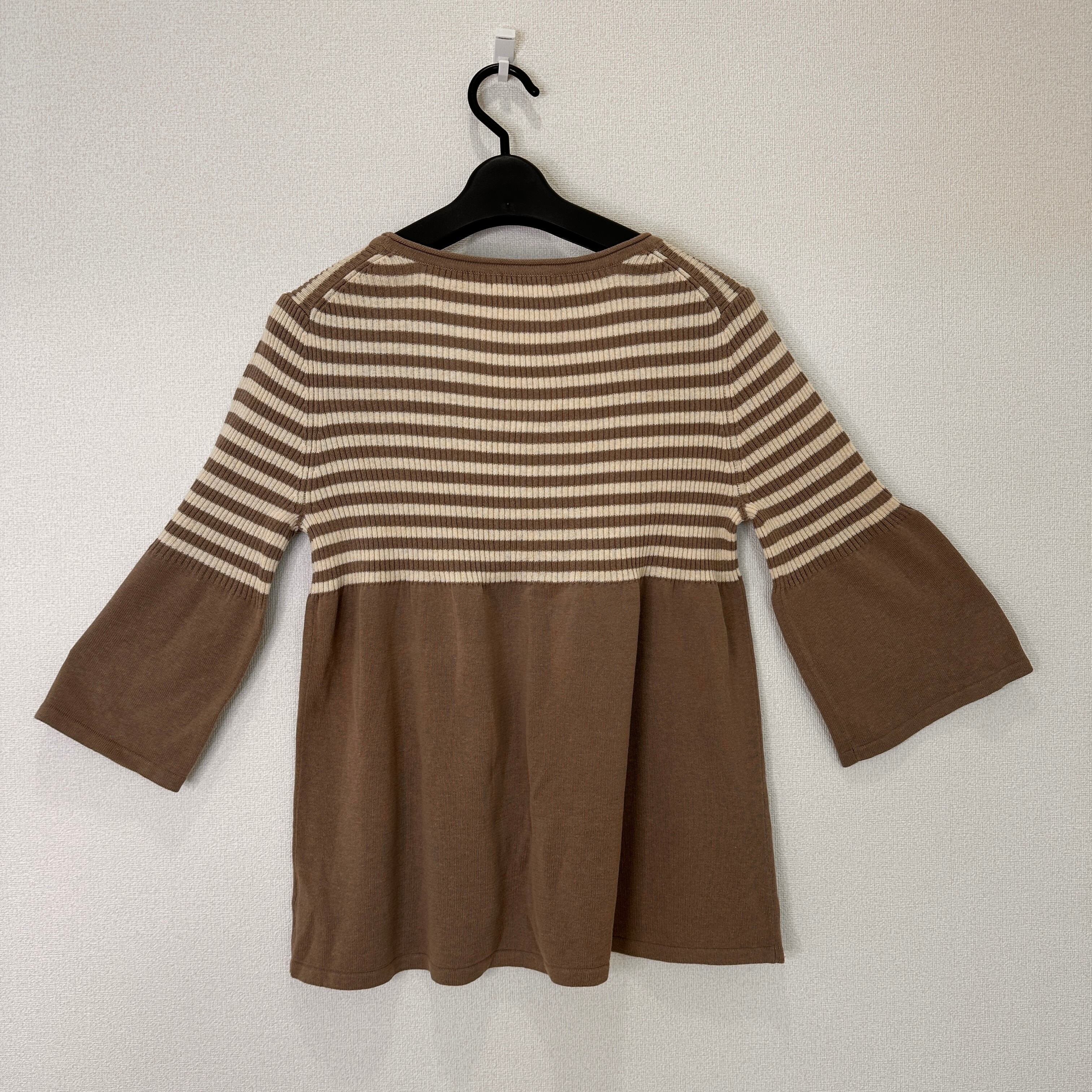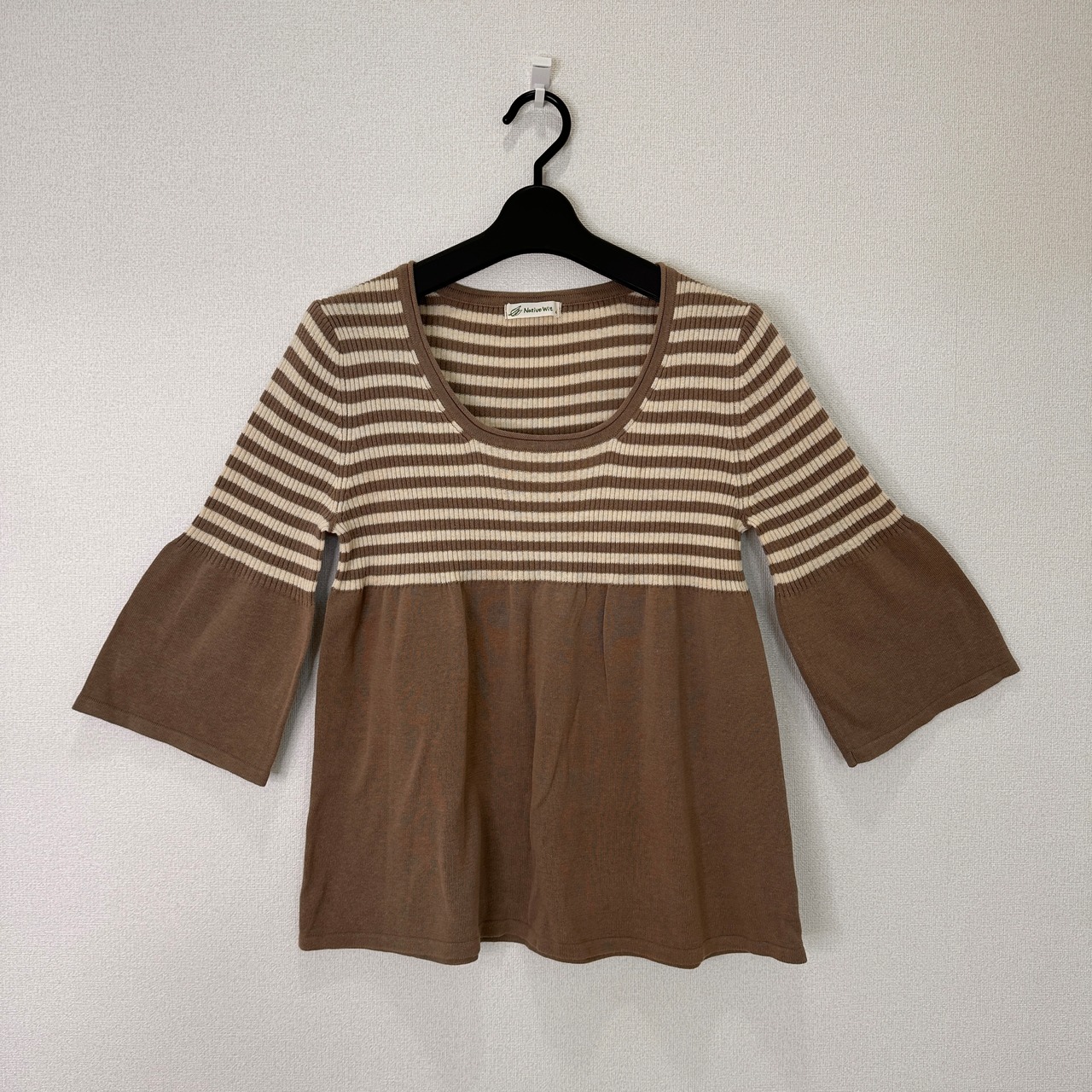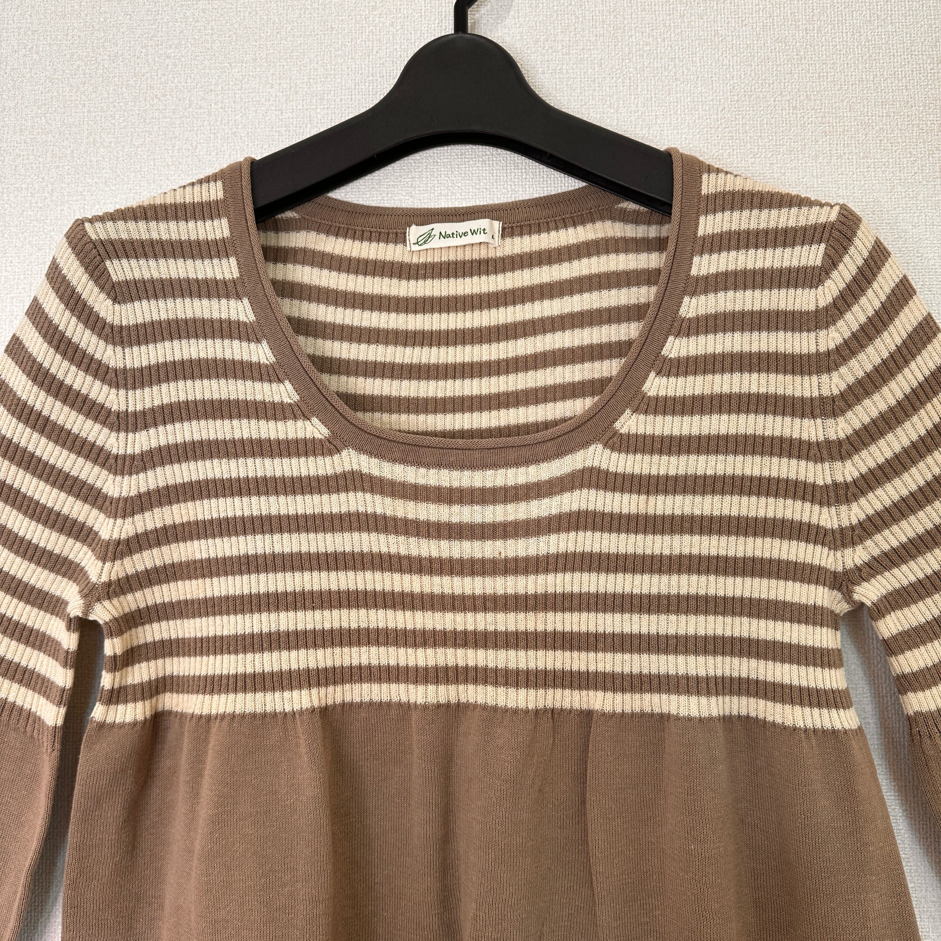 Native Wit(ネイティブウィット) 裾フレア ニットセーター L ストライプ ベルスリーブ ブラウン