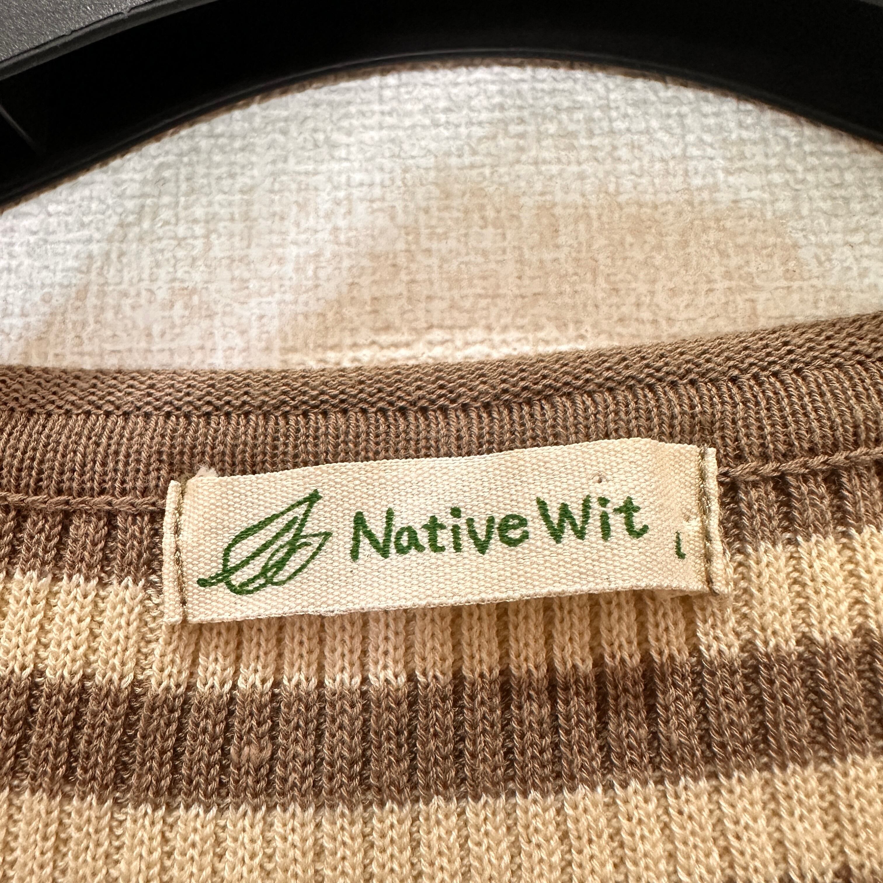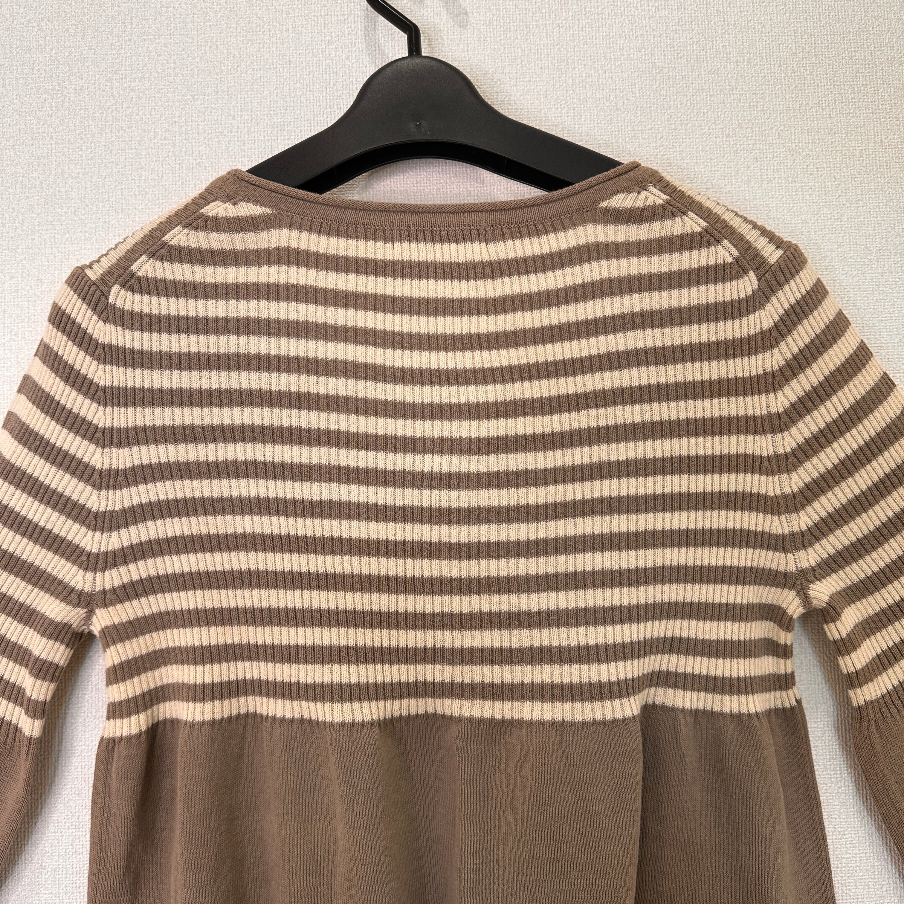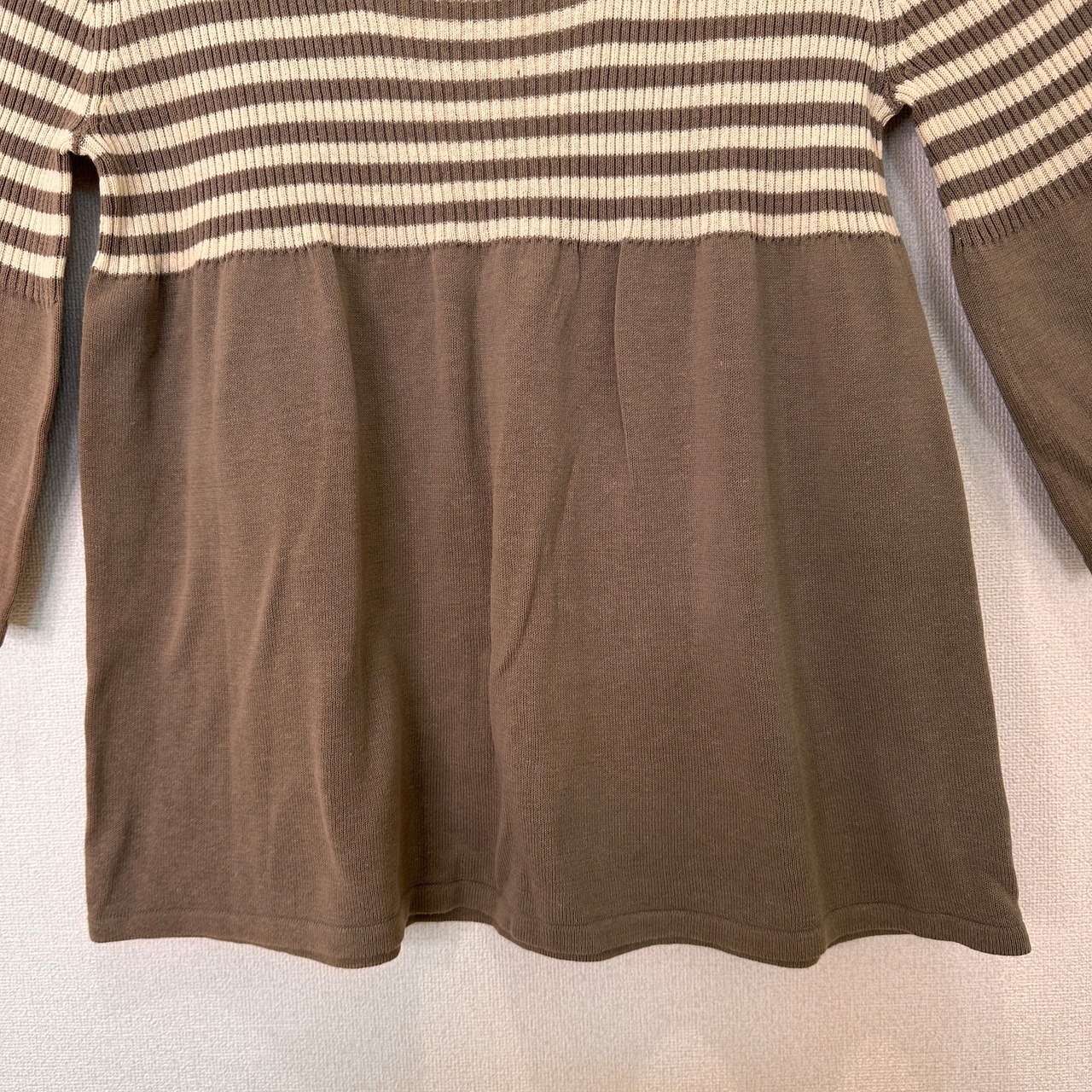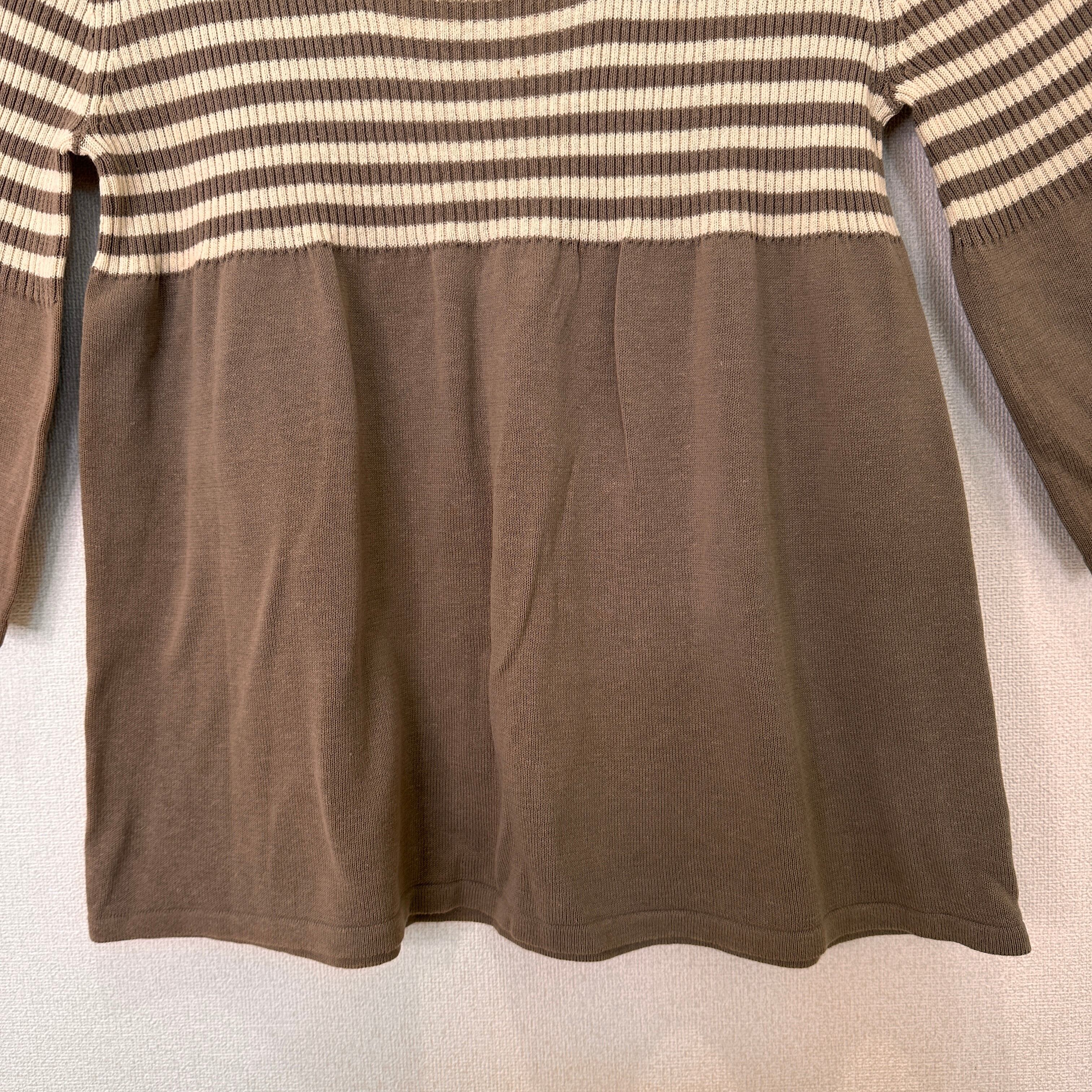 Native Wit(ネイティブウィット) 裾フレア ニットセーター L ストライプ ベルスリーブ ブラウン