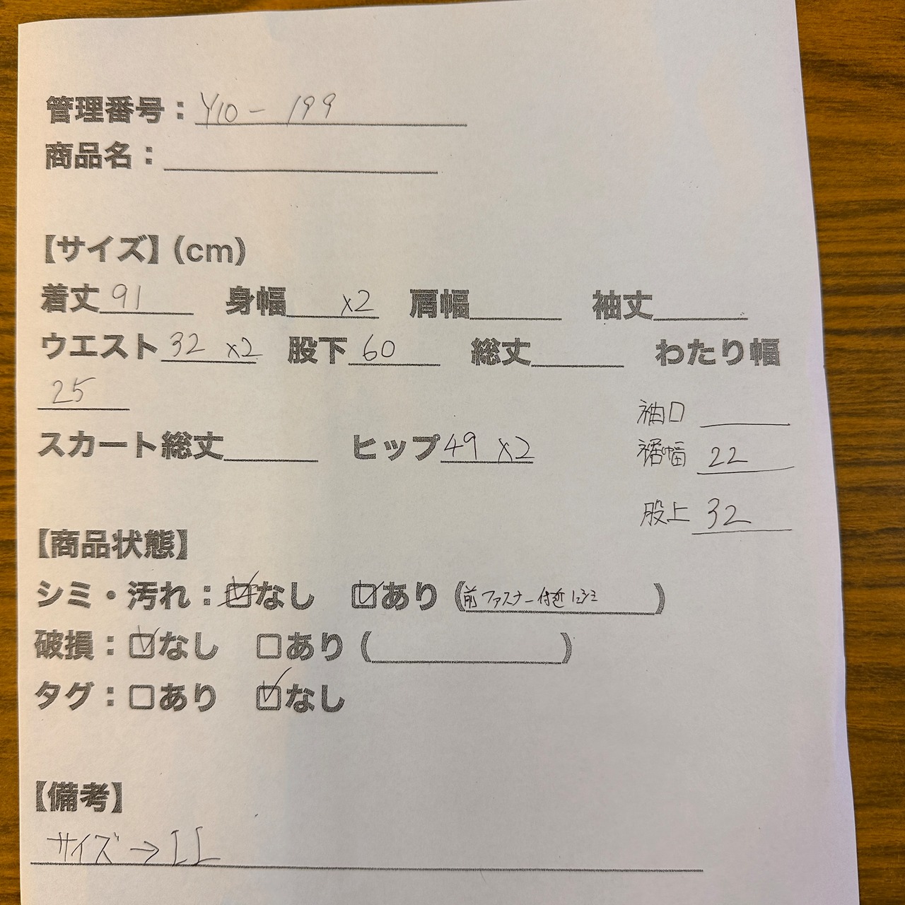 ウエスト: 32×2 (平置き)