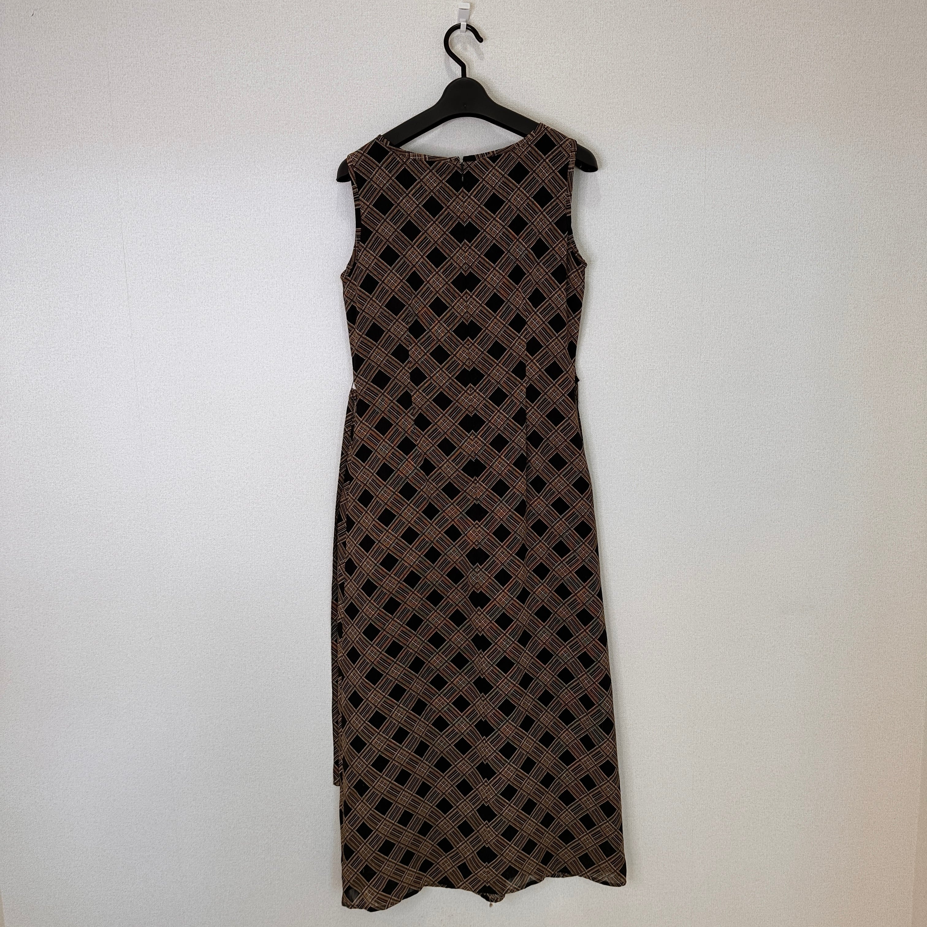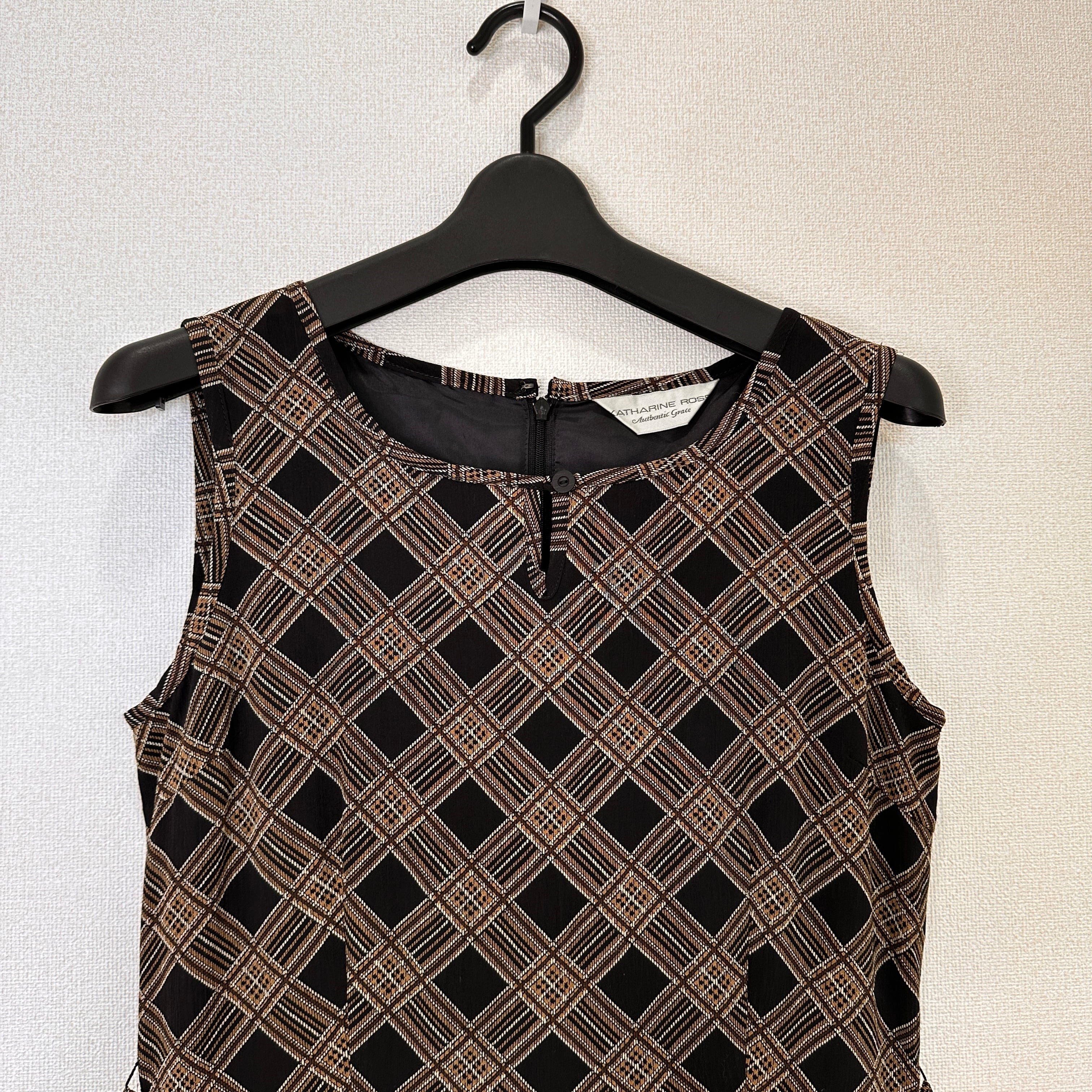 KATHARINE ROSS マキシ丈 ノースリーブワンピース 幾何学チェック柄 日本製