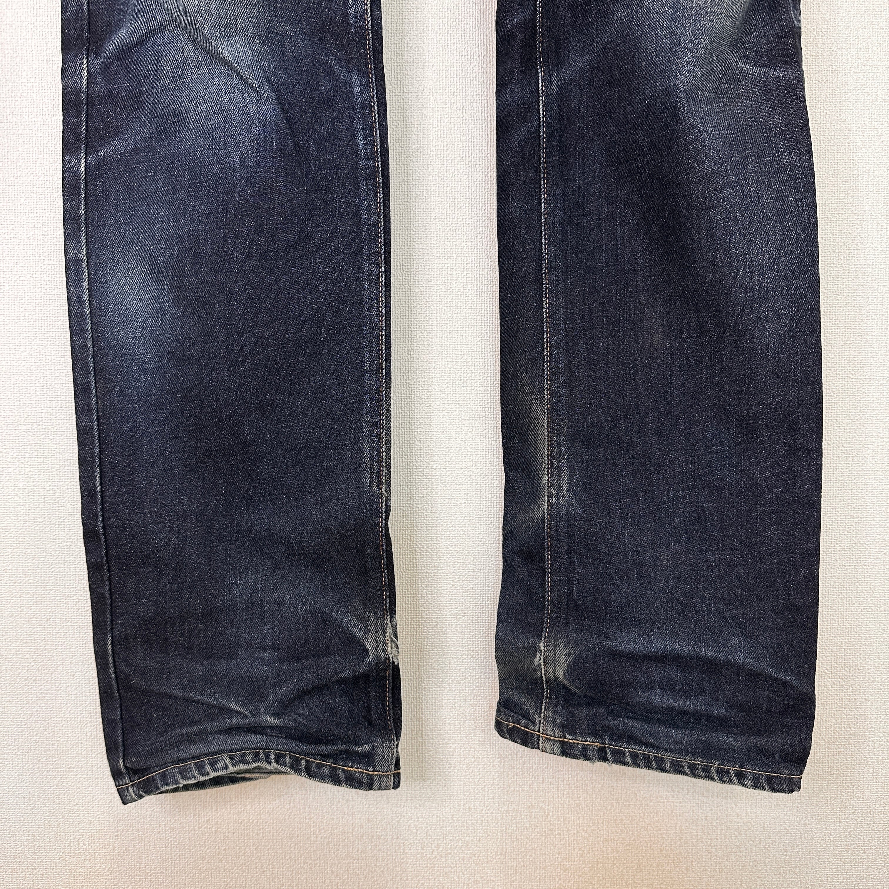 MADE IN JAPAN(日本製)で、しっかりとした生地感と、穿き込まれたことによる自然な色落ち(ヒゲやハチノス)が魅力的な一本です。