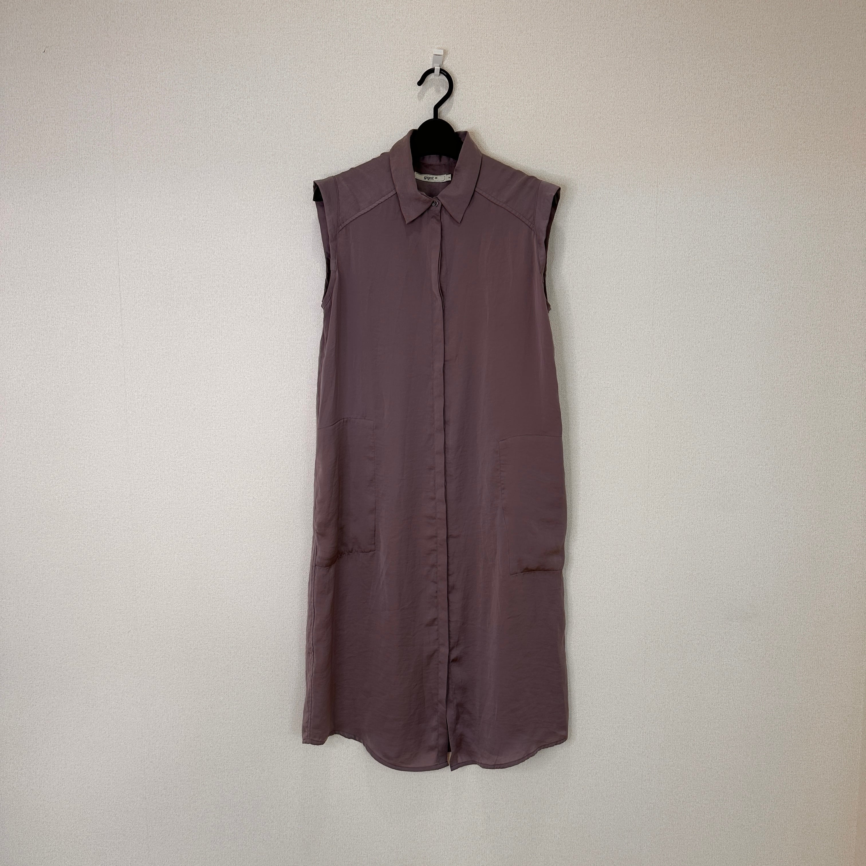 gigot ジゴ ノースリーブ ロングシャツワンピース シャツドレス パープル系 サイズ2(M)Mサイズ相当