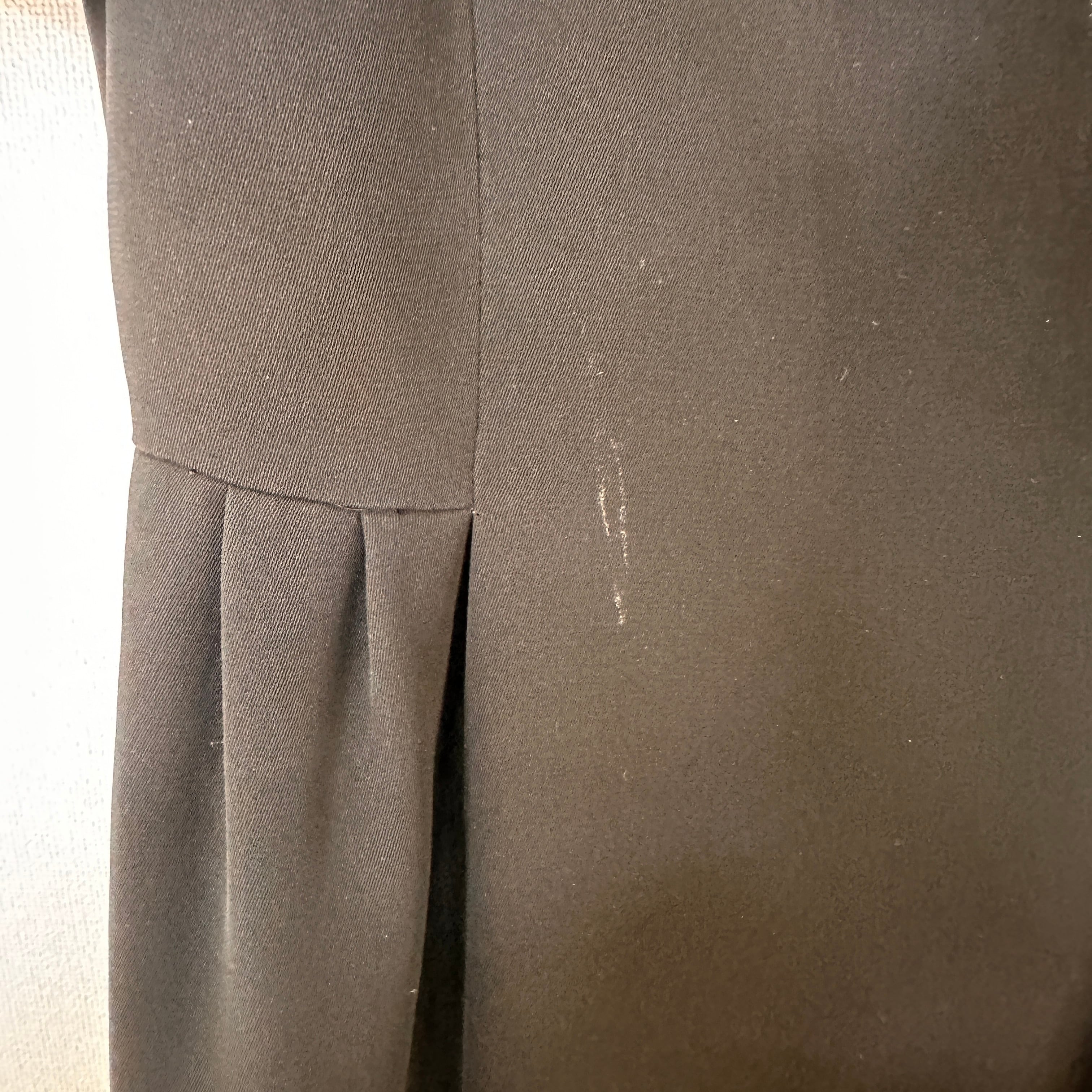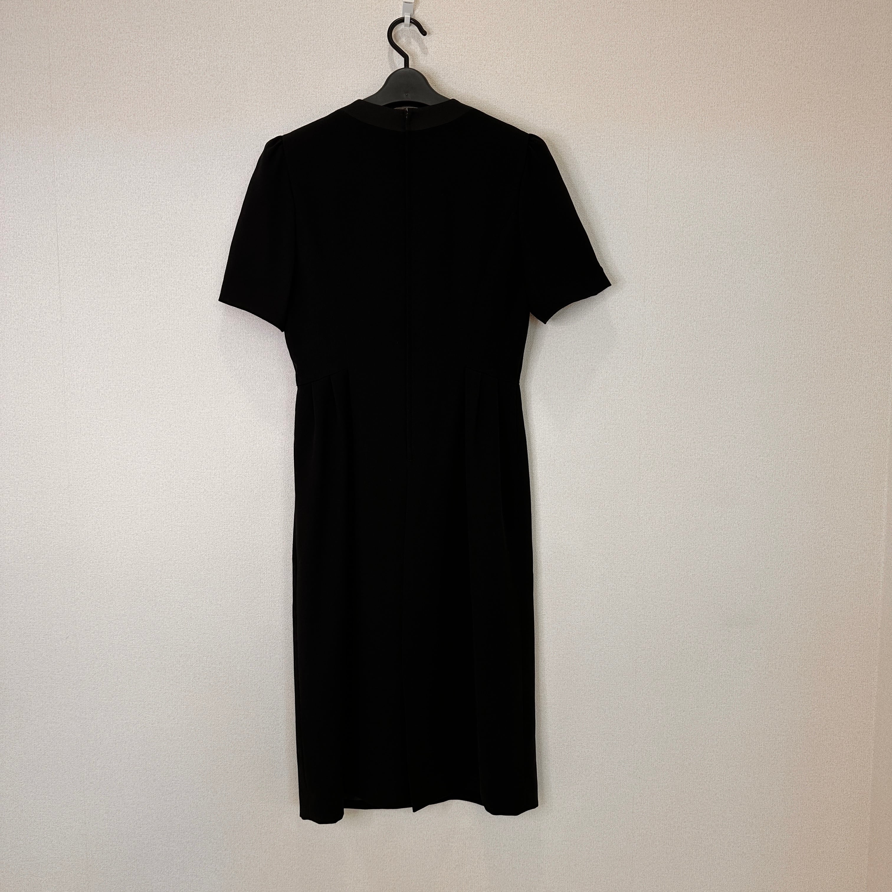 特にフォーマルとしてご使用される方は、状態をよくご確認の上、中古品にご理解いただける方のみご購入をお願いいたします。Vネックとパフスリーブが特徴のシンプルなブラックドレス。