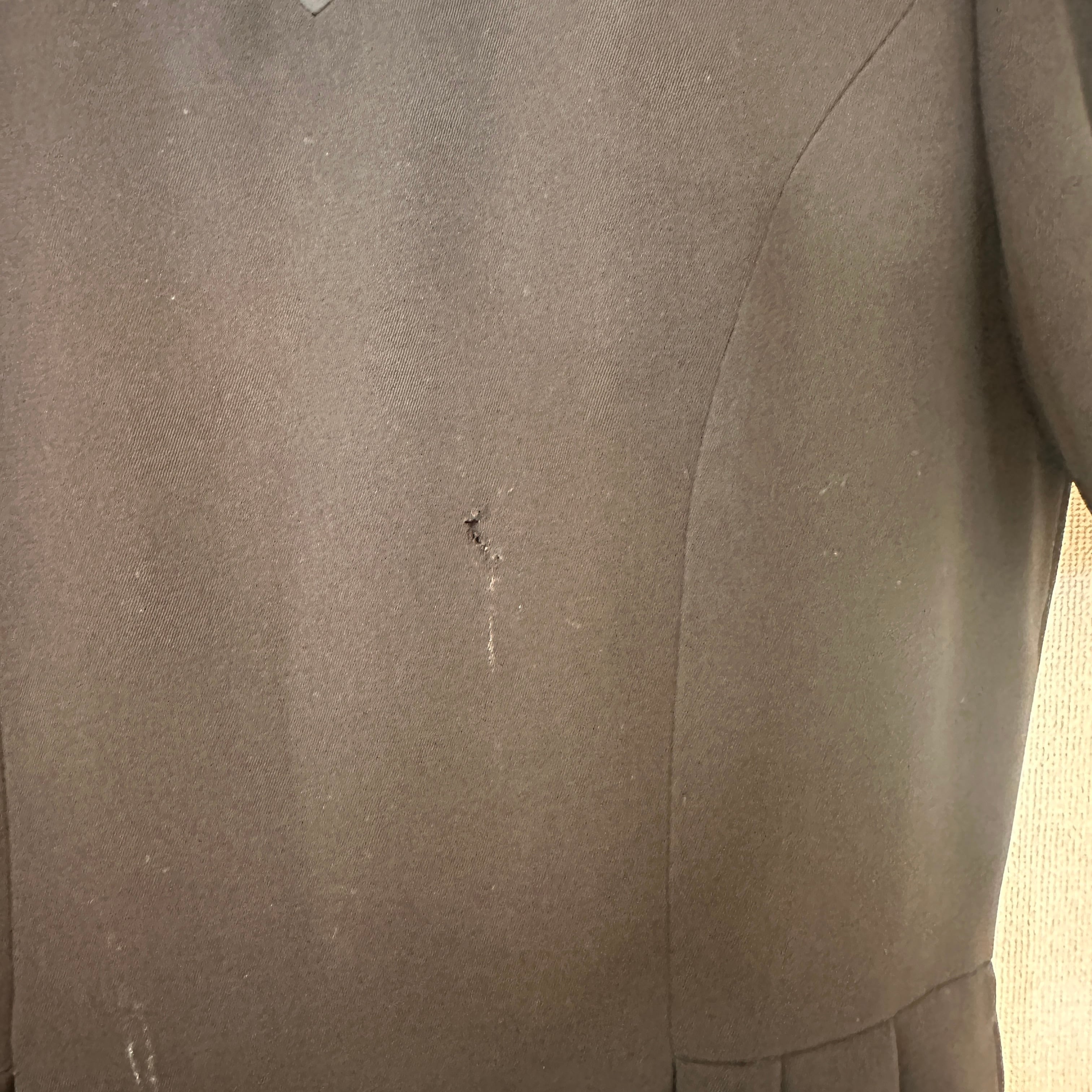 右ウエスト部分にごく小さな汚れ、右袖・バスト・右脇など数カ所に生地のほつれやスレ(使用感)がございます。