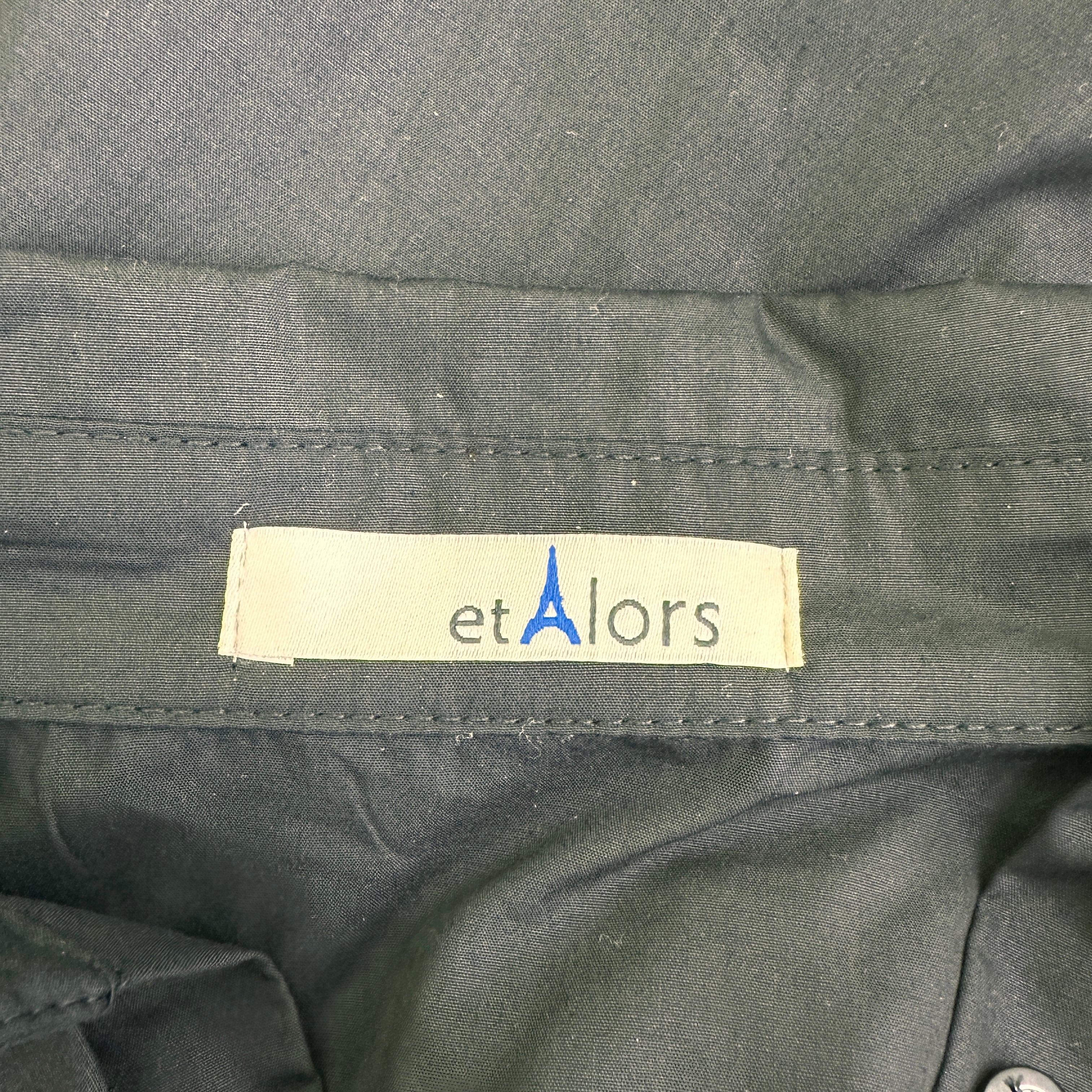 et Alors フリルデザイン 半袖シャツ ブラウス ブラックコットン100% サイズ : L