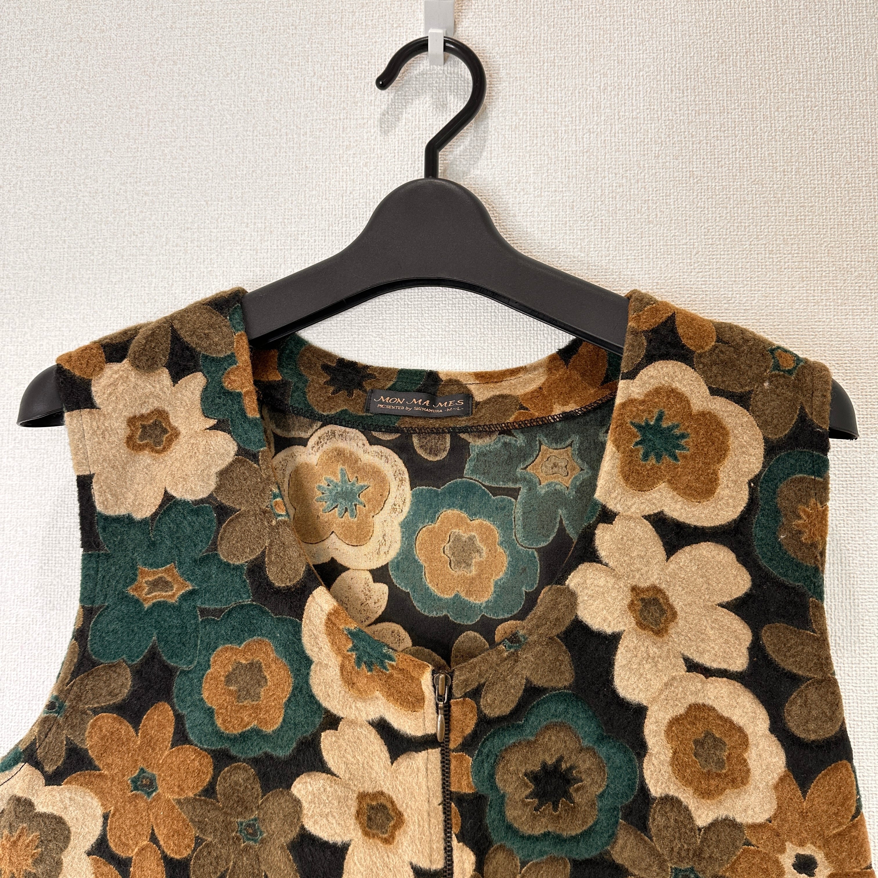 MON MA MES (しまむら) 花柄 ベスト ジップアップ M~L