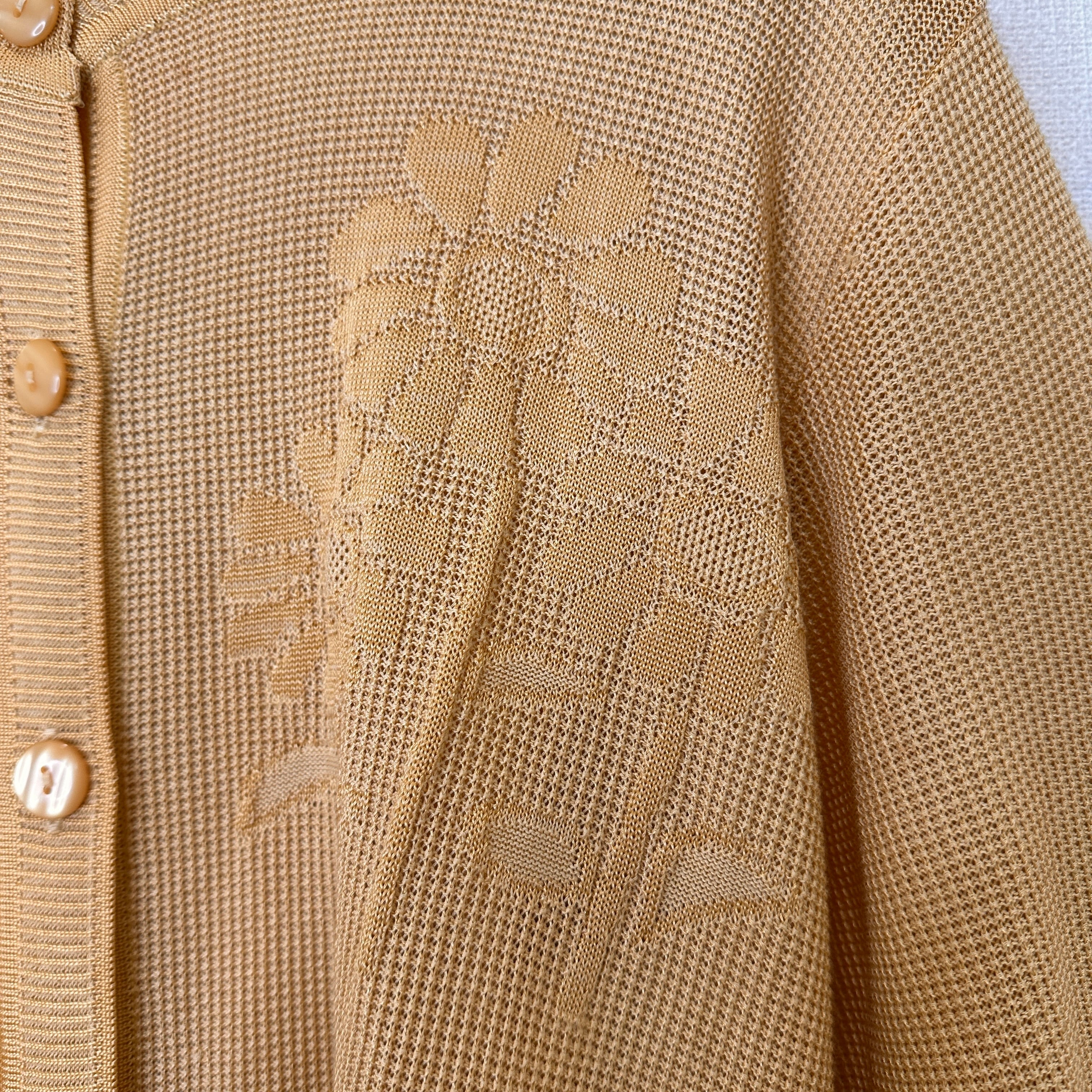 Morale Riche 透かし編みニットカーディガン 黄色系 日本製 L相当