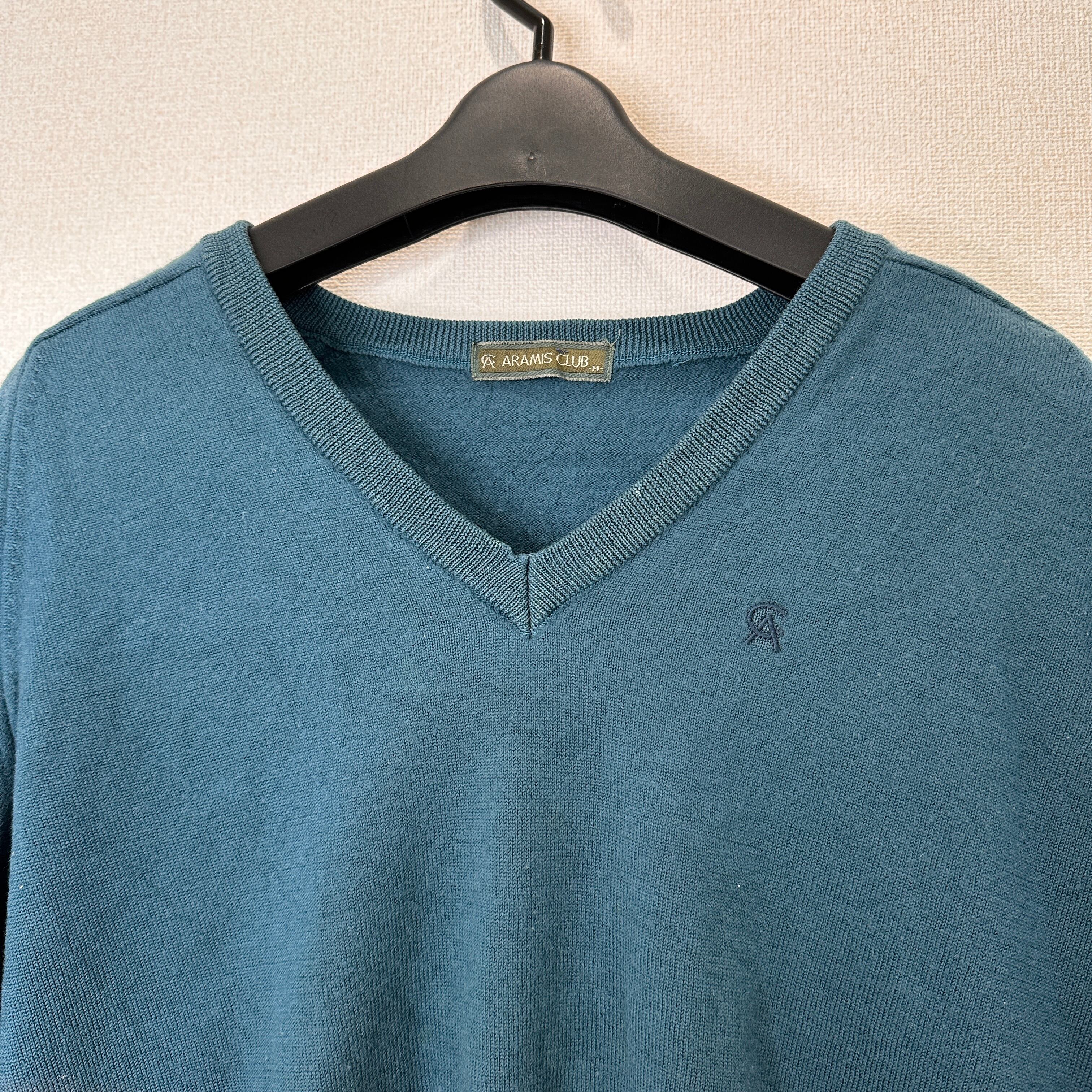 ARAMIS CLUB アラミスクラブ Vネックセーター ウール100% 93 エメラルドグリーン系