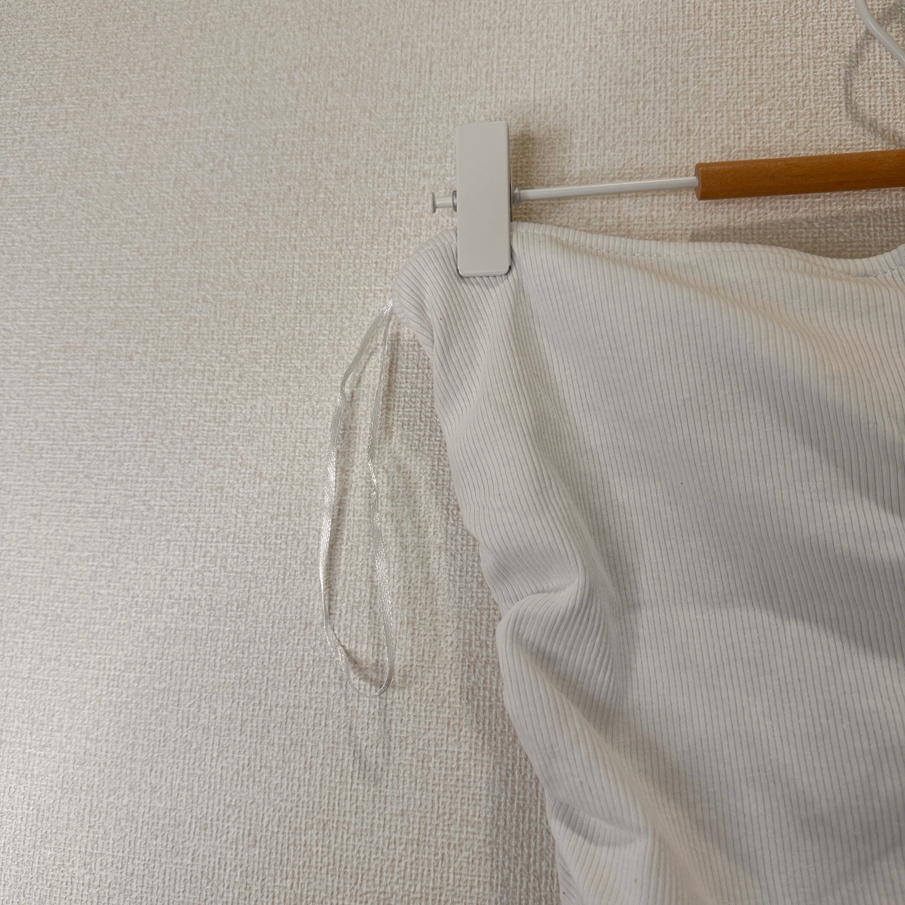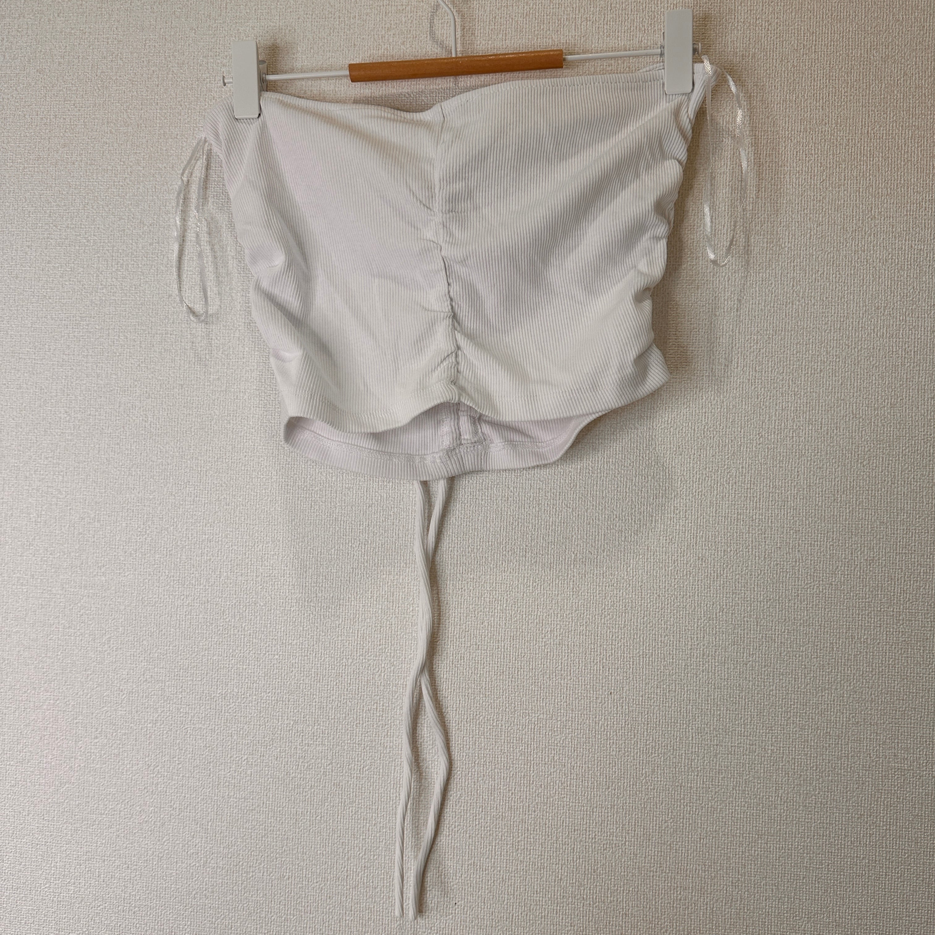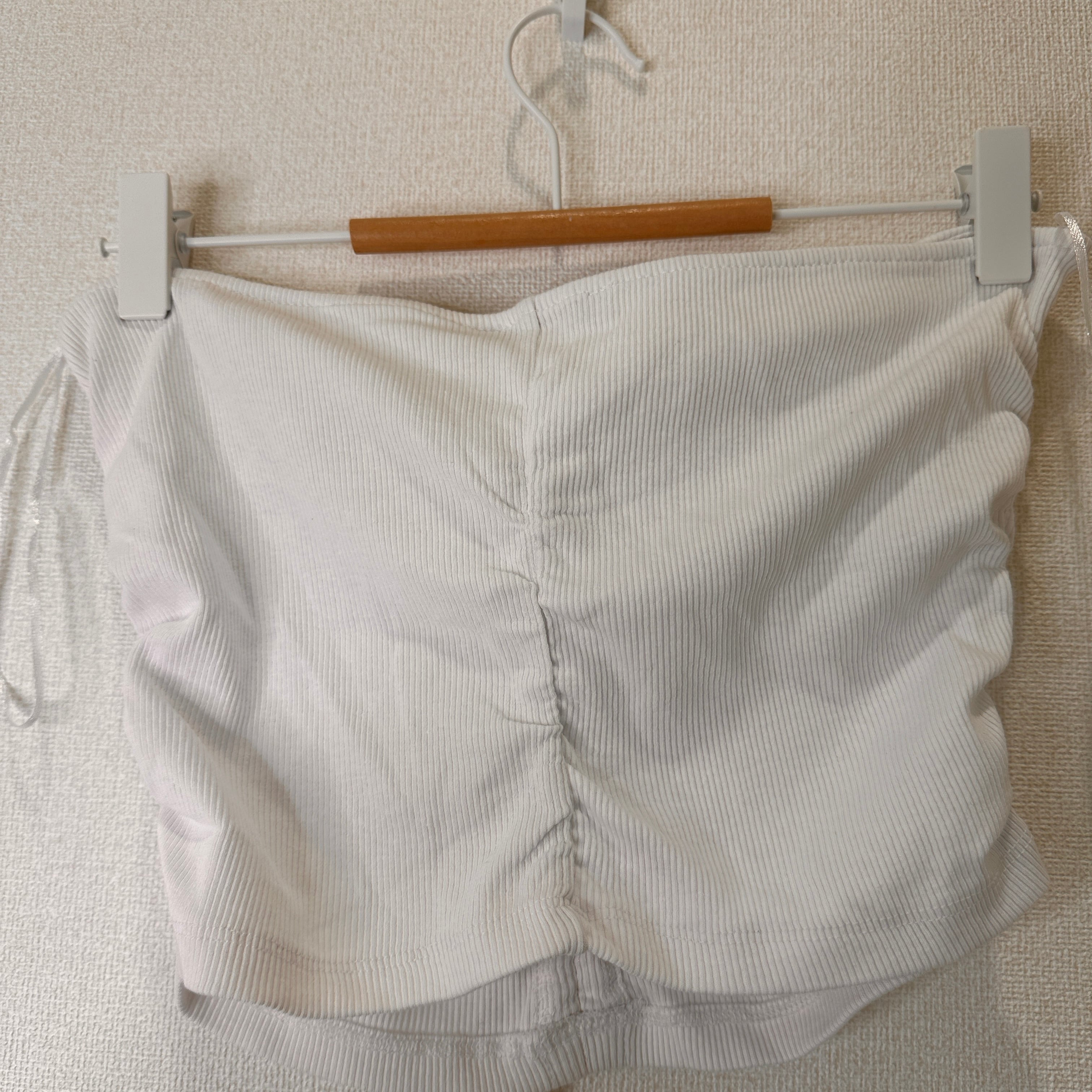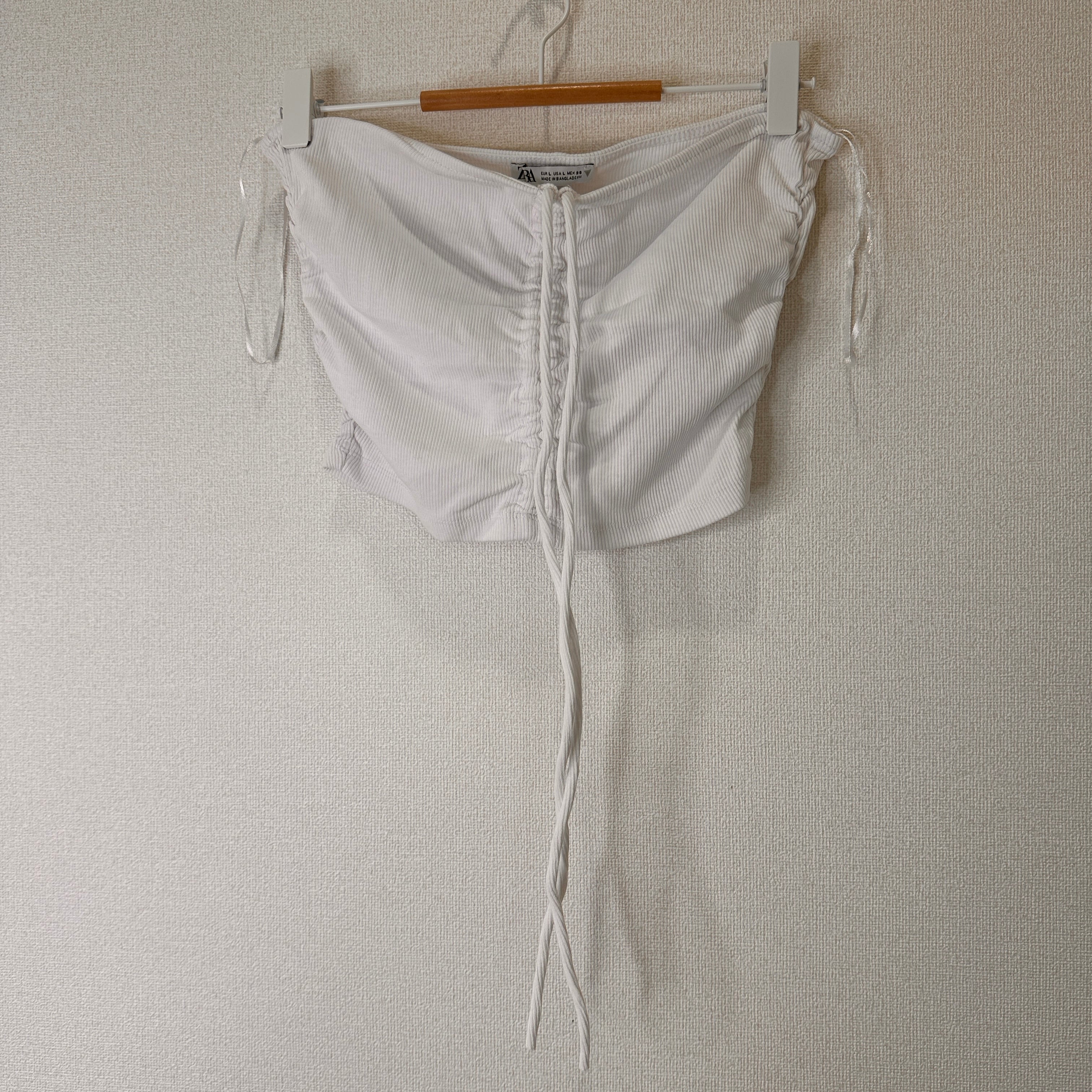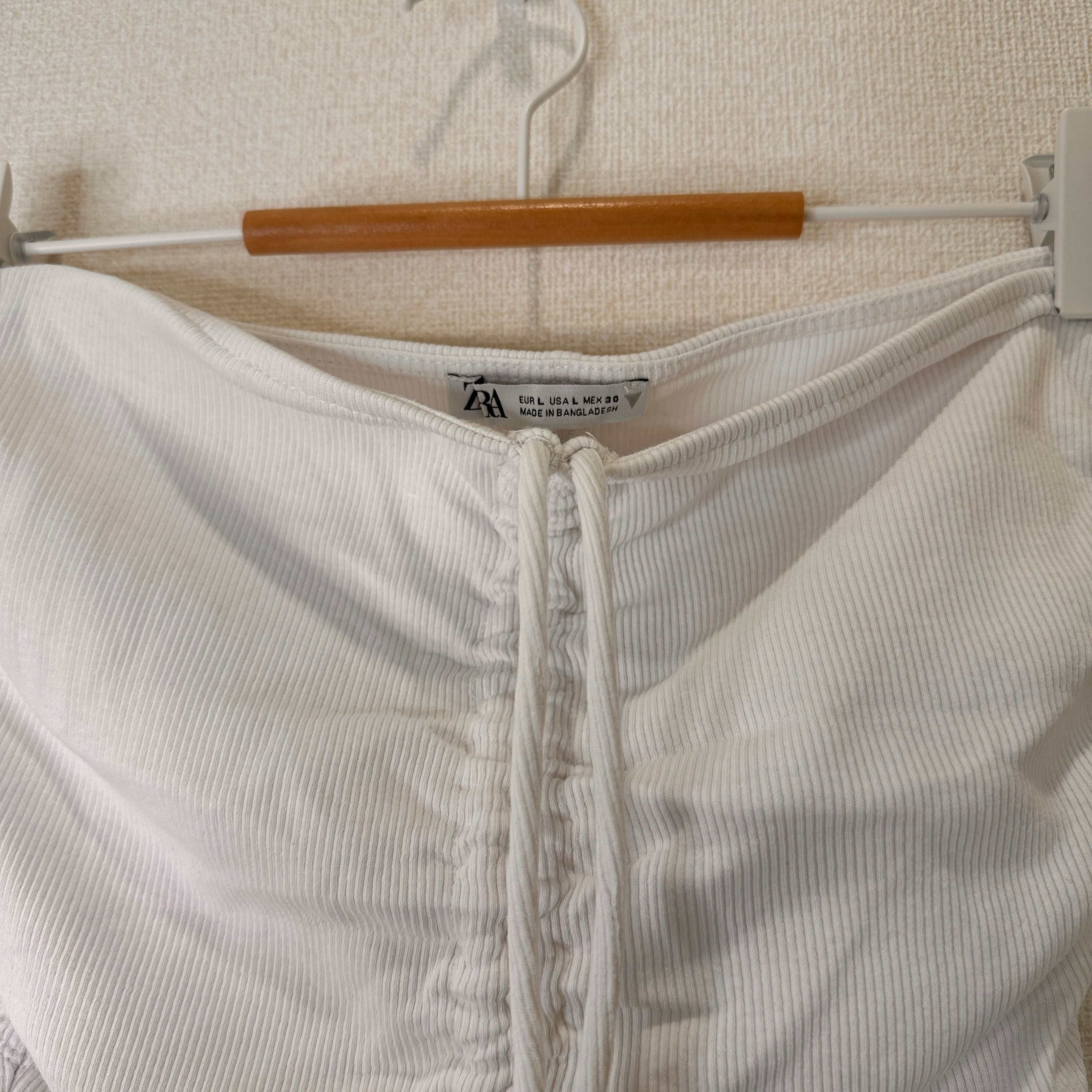 ZARA ザラ Lサイズ リブ チューブトップ キャミソール ギャザー シャーリング オフホワイト