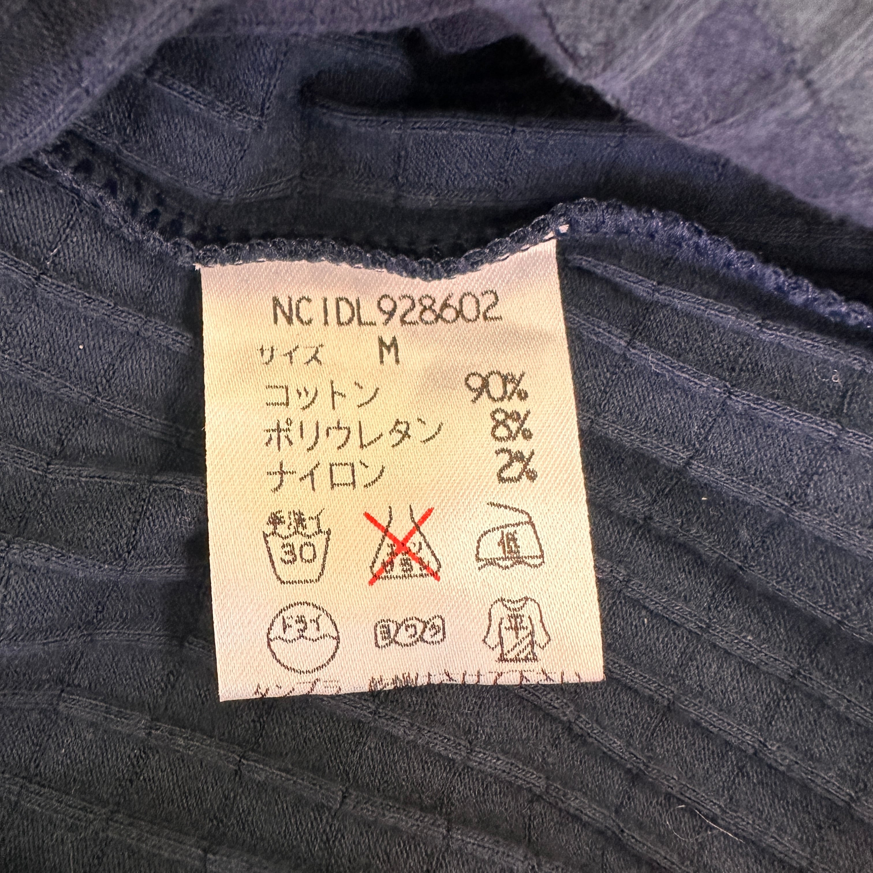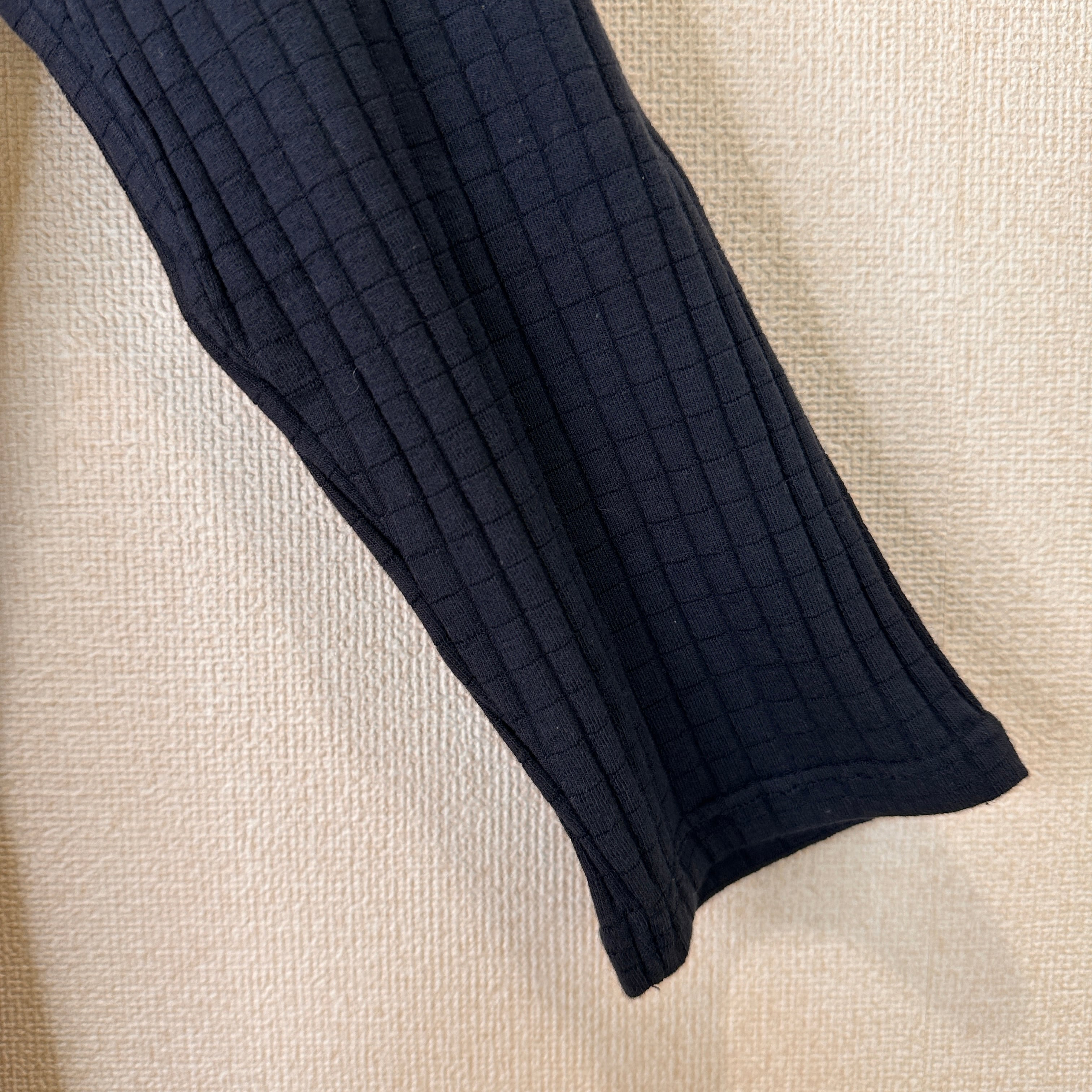 色は濃紺/ネイビー系で、細かなリブ編みで伸縮性があります。