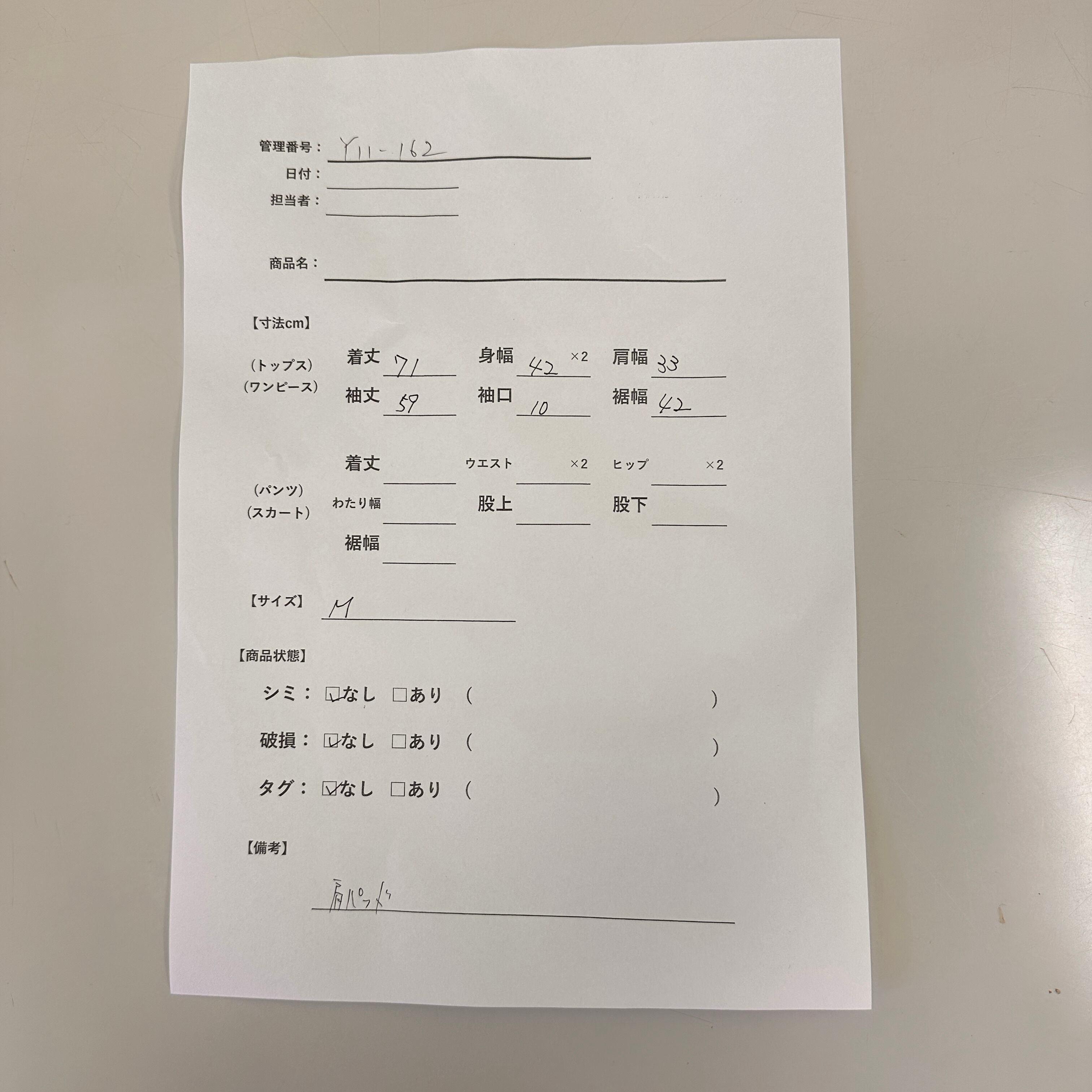 管理番号:Y11-162#てまいらずアパレル商品一覧