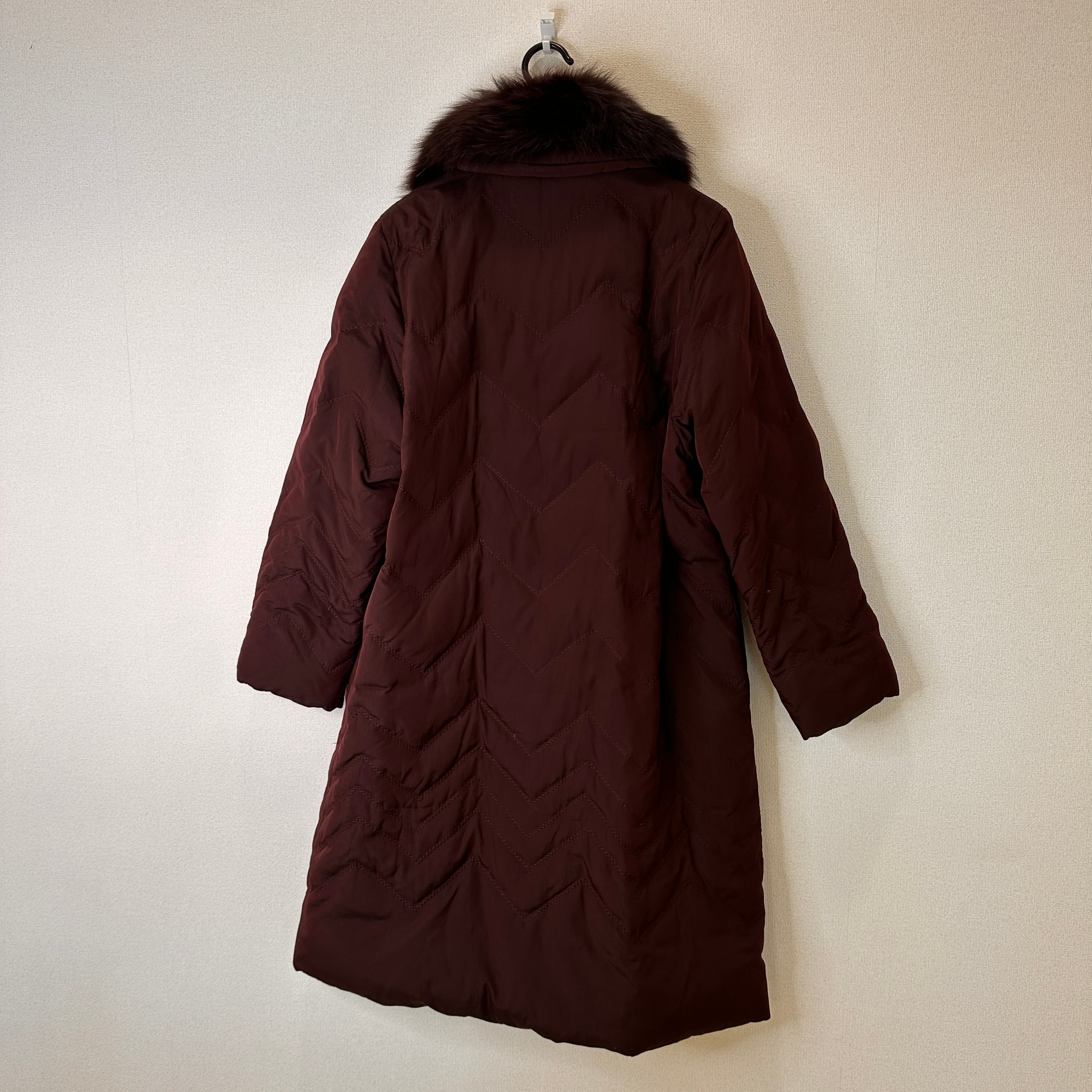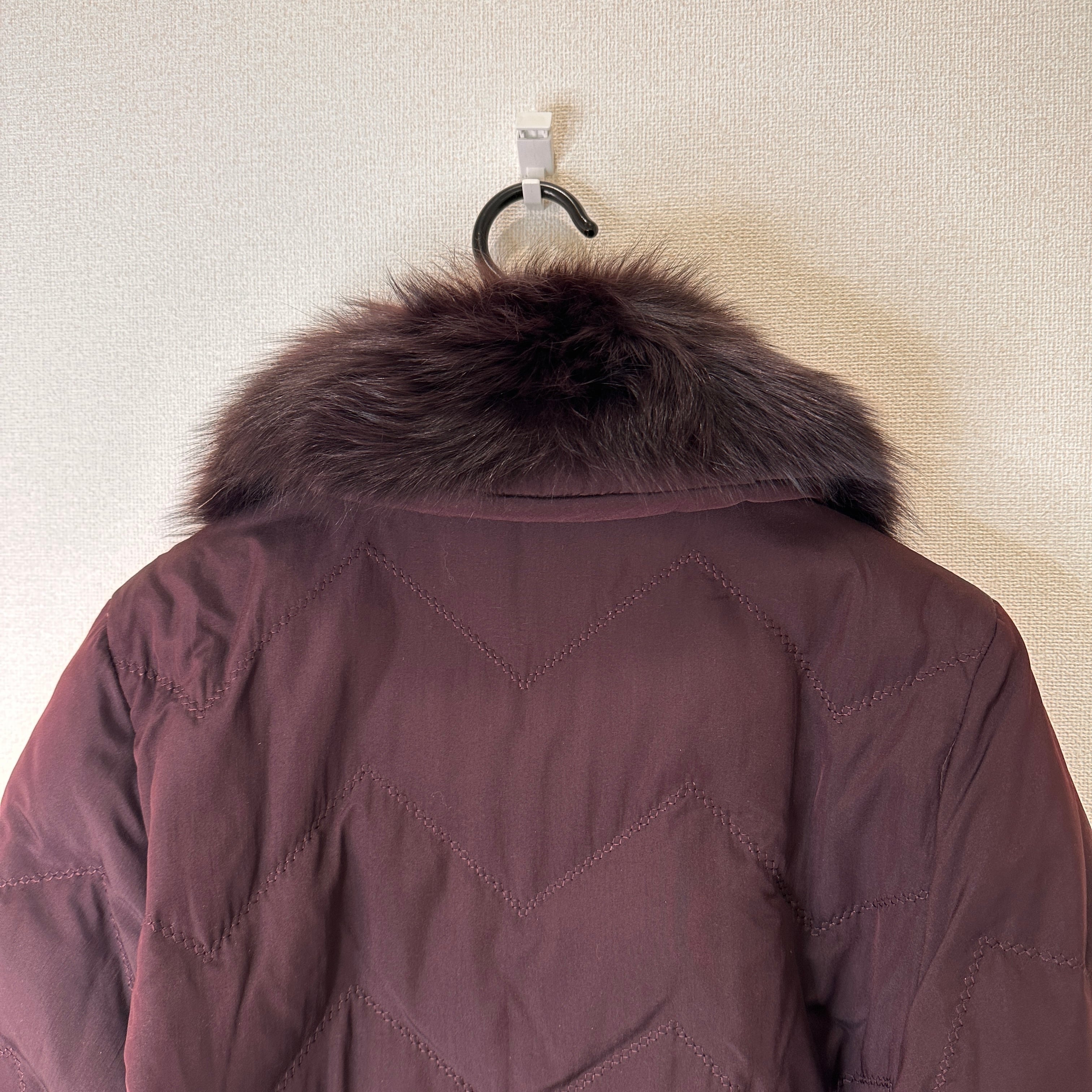 Chumandor(チュマンドア)フォックスファー付き ダウンコート ロング丈 Mサイズ ワインレッド系