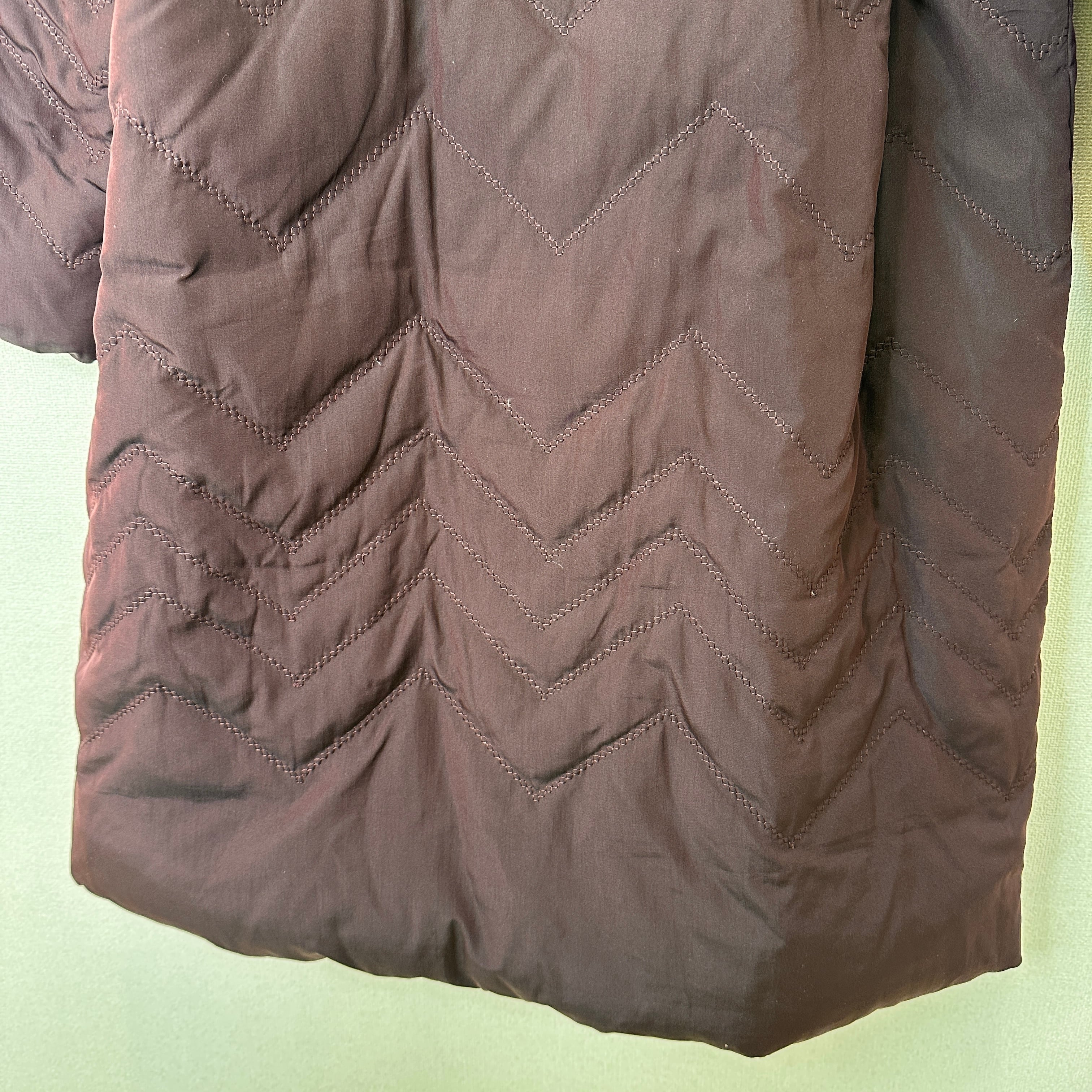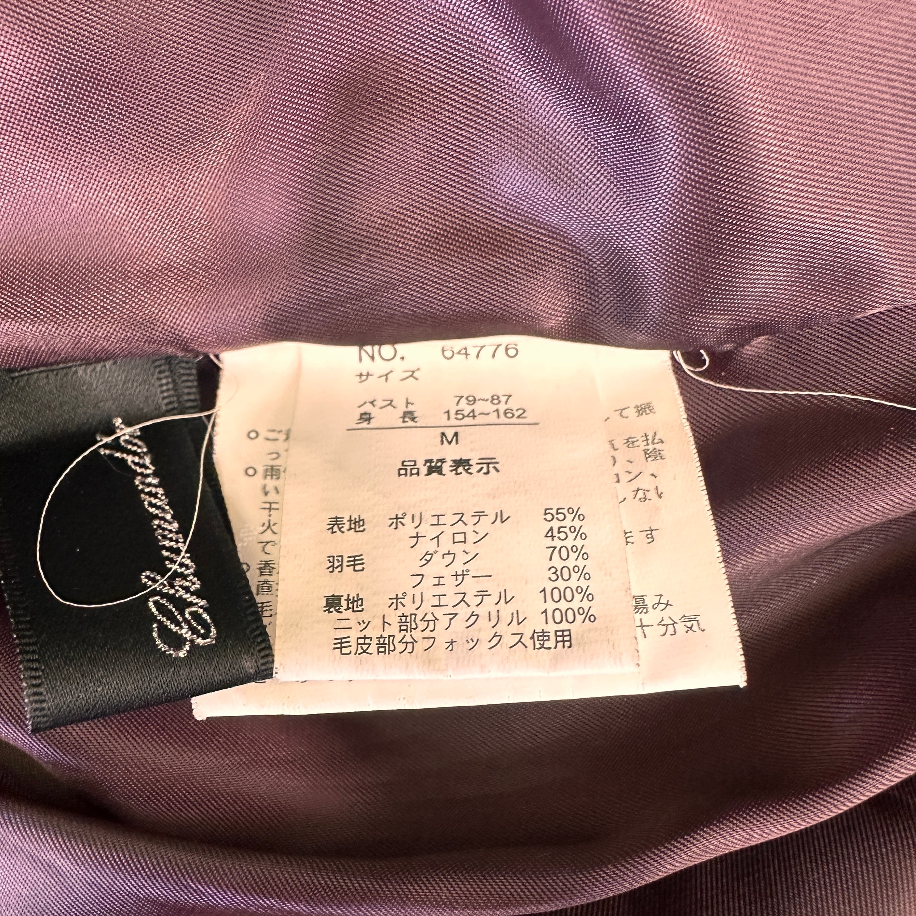 特に毛皮製品の取り扱い・保管方法については、品質表示タグの内容をご確認ください。ファー付きのワインレッドダウンジャケット、キルティングデザインで暖かさとスタイルを両立。