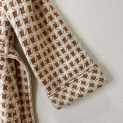 ブラウンとアイボリーの千鳥格子、または幾何学柄が特徴的です。
