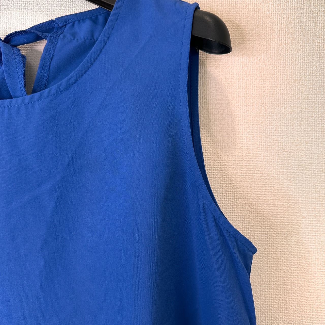 未使用品ですが、一度人の手に渡っていることにご理解いただける方のみご購入をお願いいたします。リボン付きのノースリーブAラインカットソーワンピース、鮮やかな青色。