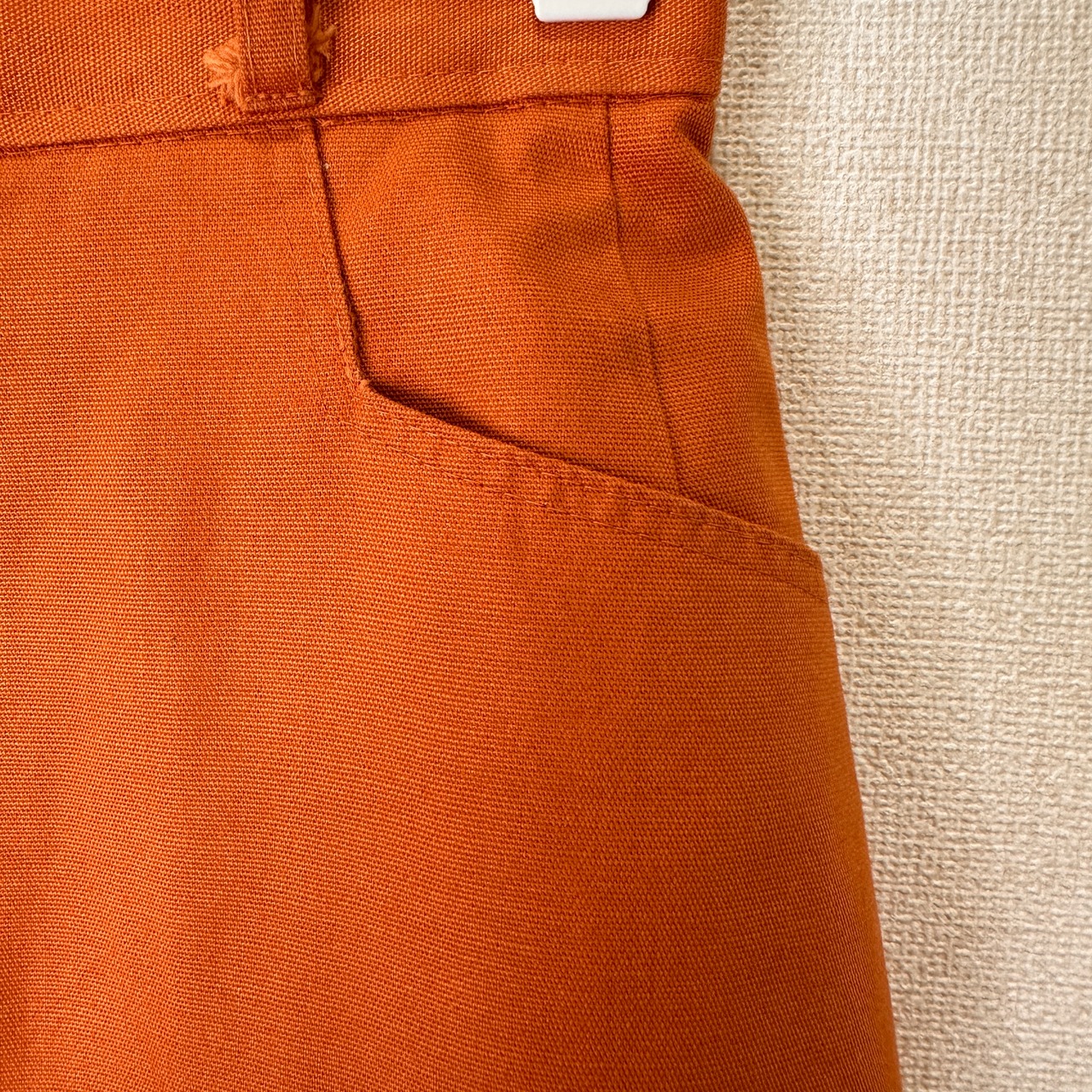 目立った傷や汚れはありませんが、中古品にご理解いただける方のみご購入をお願いいたします。鮮やかなオレンジのひざ丈スカート、サイドポケット付きで実用的。