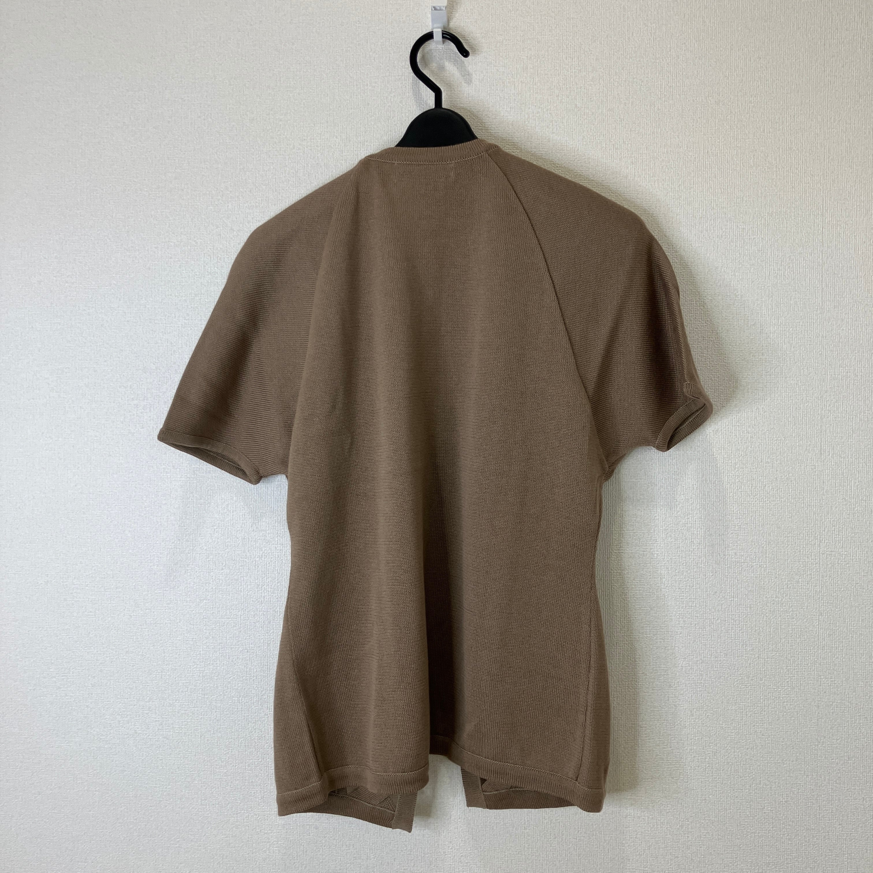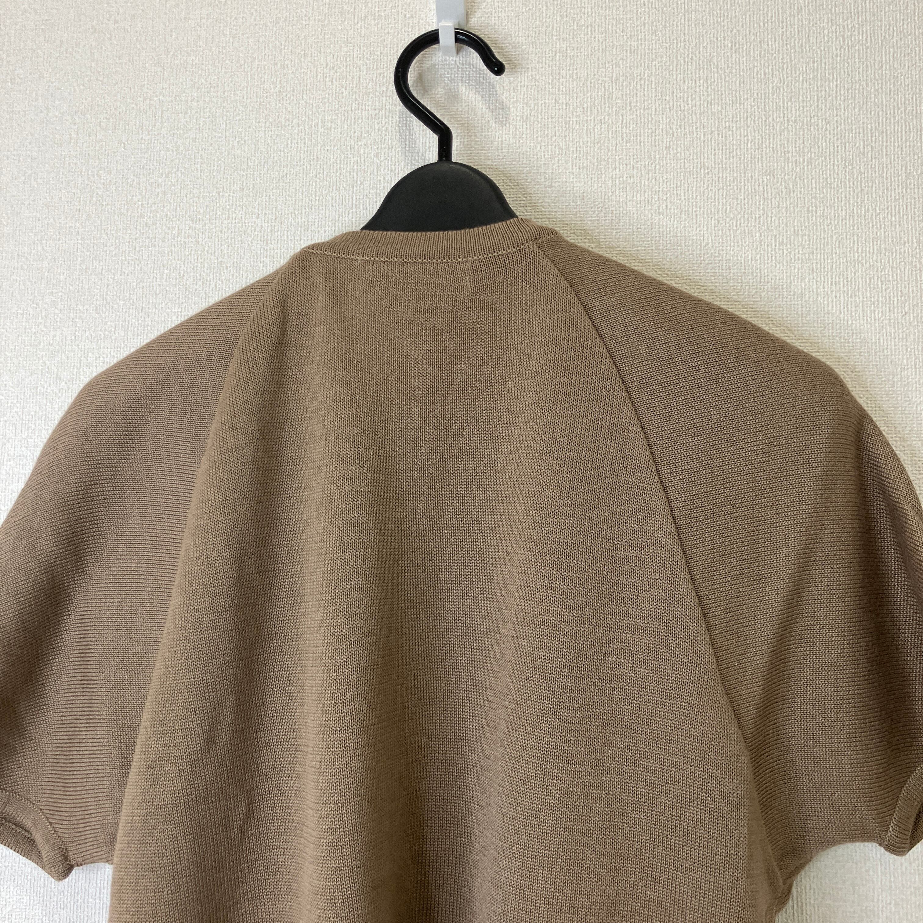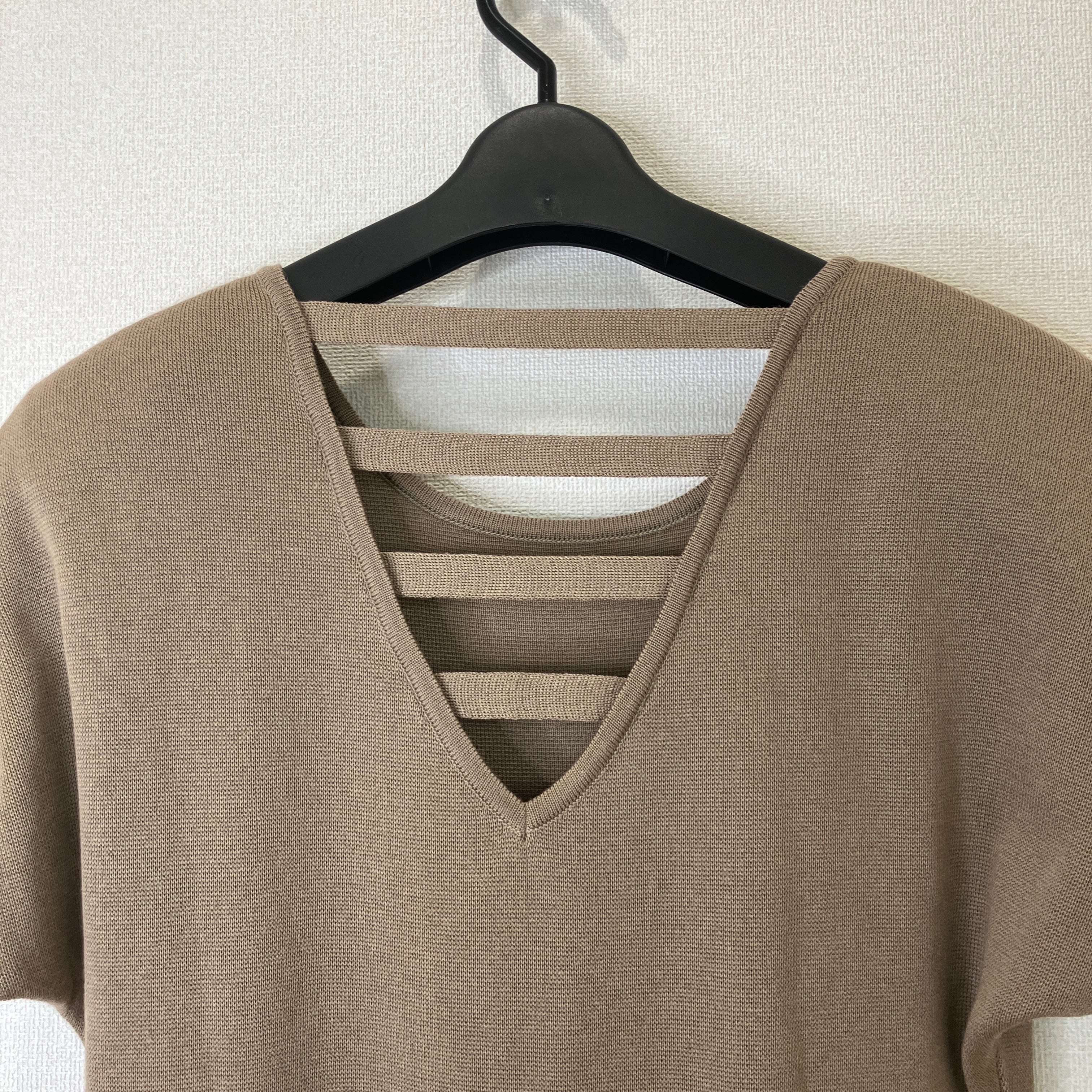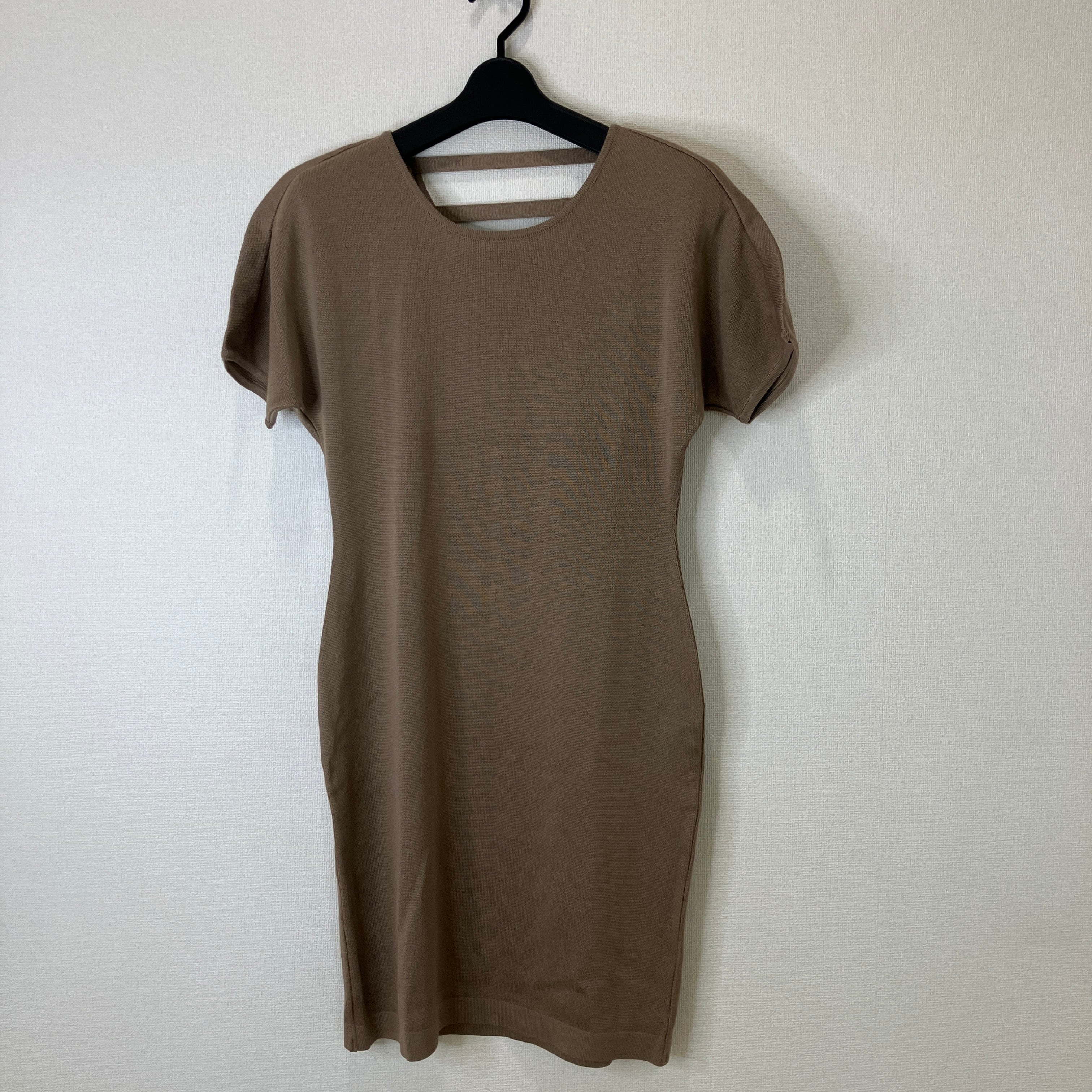 ワンピース: Vネックで半袖、タイトなシルエットのニットワンピースです。