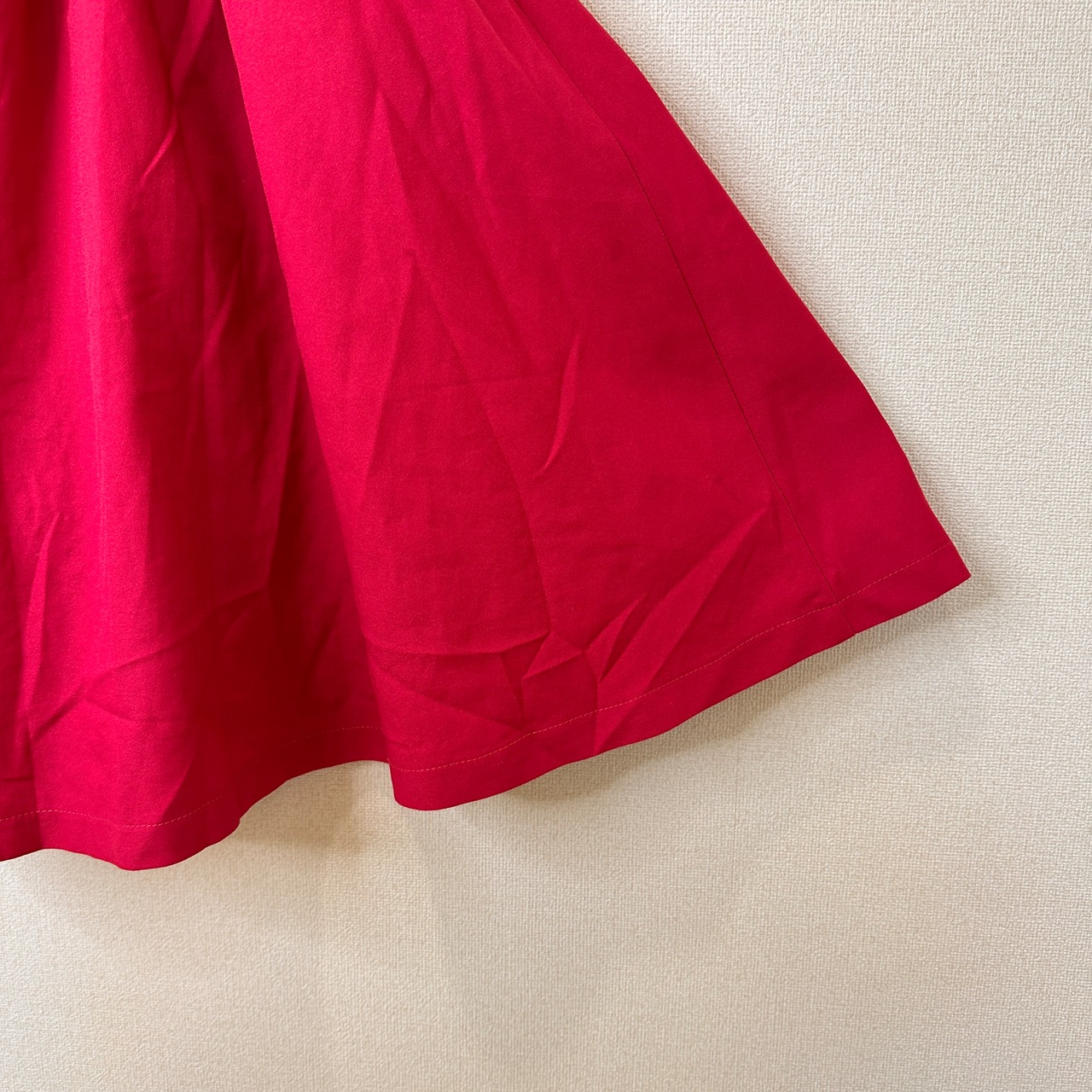 TOЯTE(トルテ)の、鮮やかなレッド(赤)が目を引くフレアスカートです。