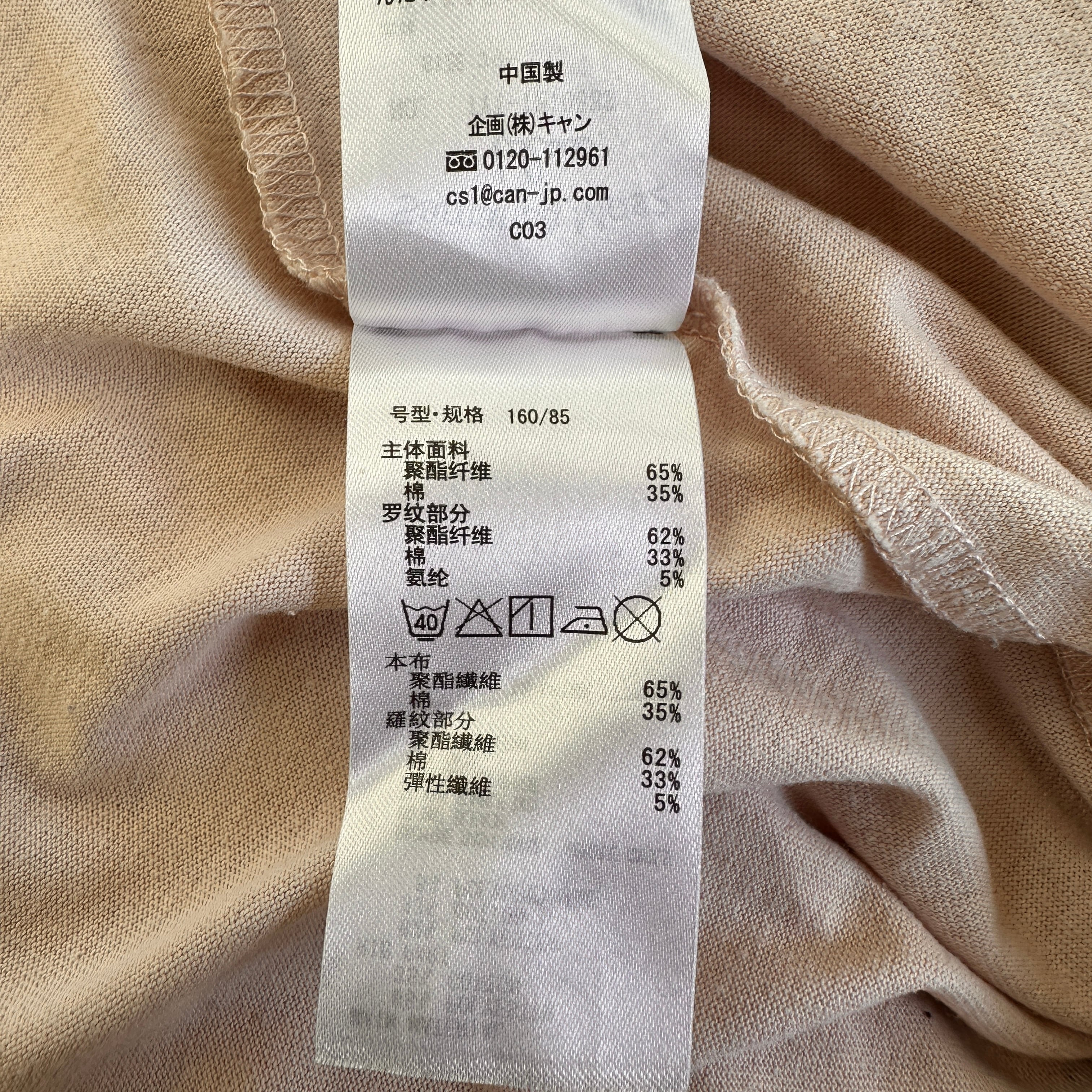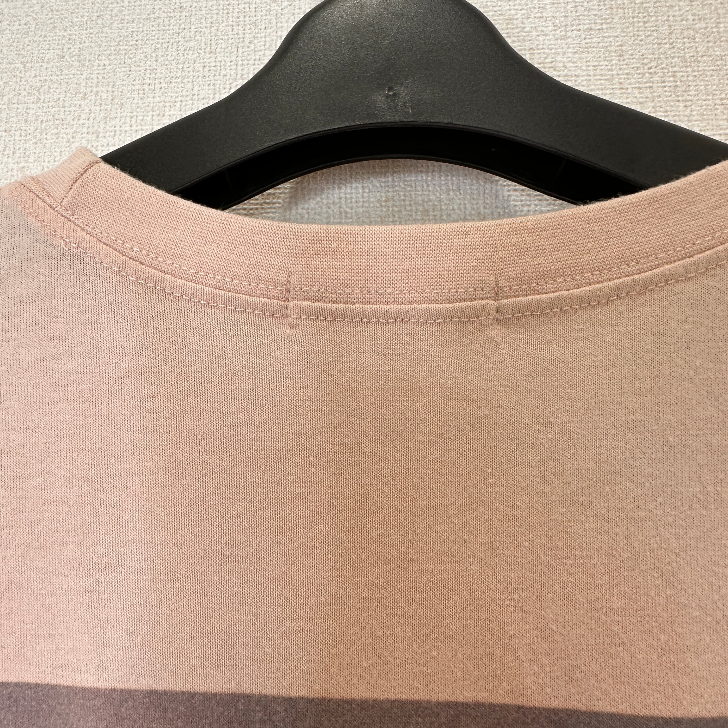 淡いピンクベージュのような優しい色合いで、ゆったりとしたオーバーサイズのシルエット(ドロップショルダー)が特徴です。