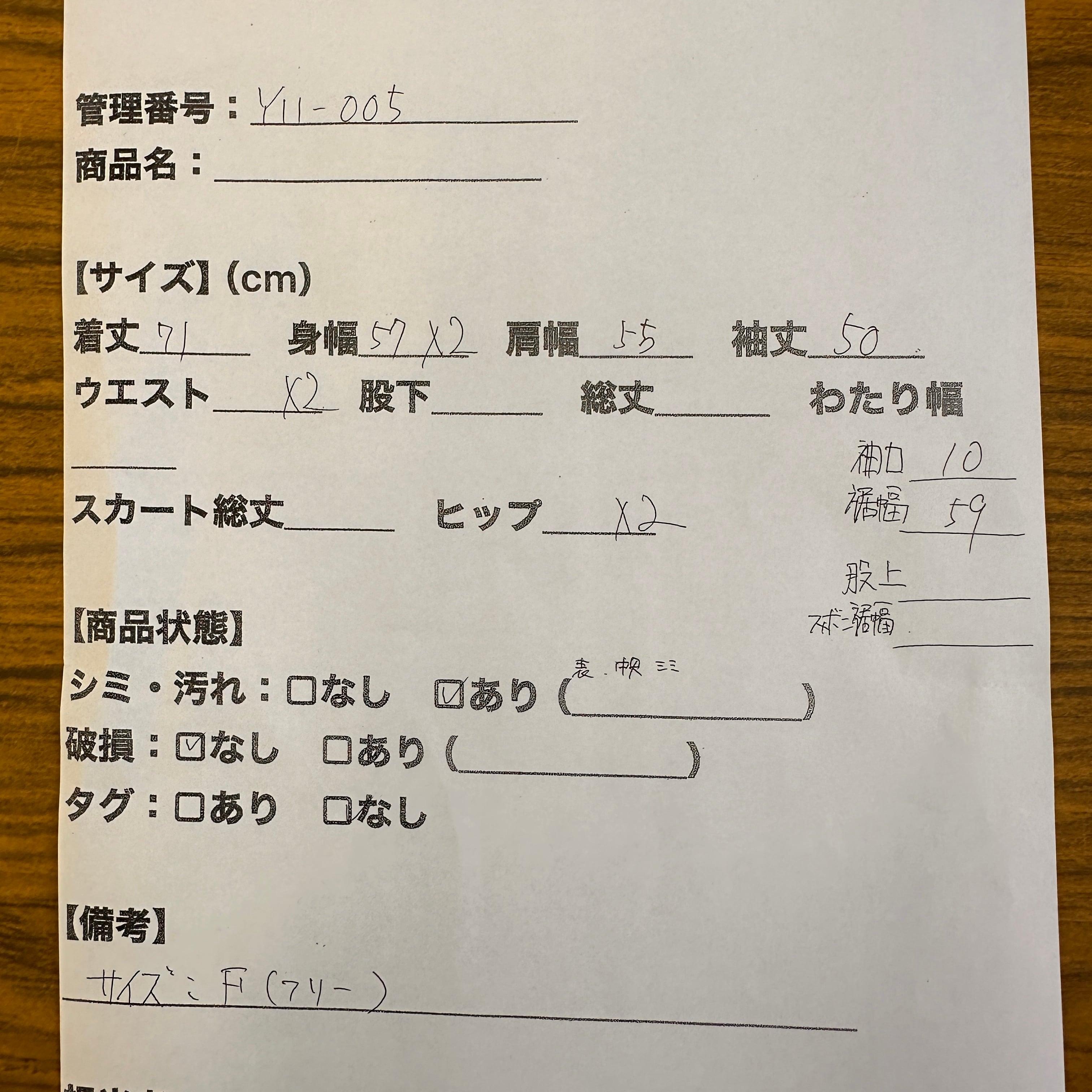 管理番号:Y11-005#てまいらずアパレル商品一覧