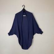 目立った傷や汚れはありませんが、中古品にご理解いただける方のみご購入をお願いいたします。ネイビーのオープンフロントカーディガン、ドルマンスリーブデザインでスタイリッシュ。