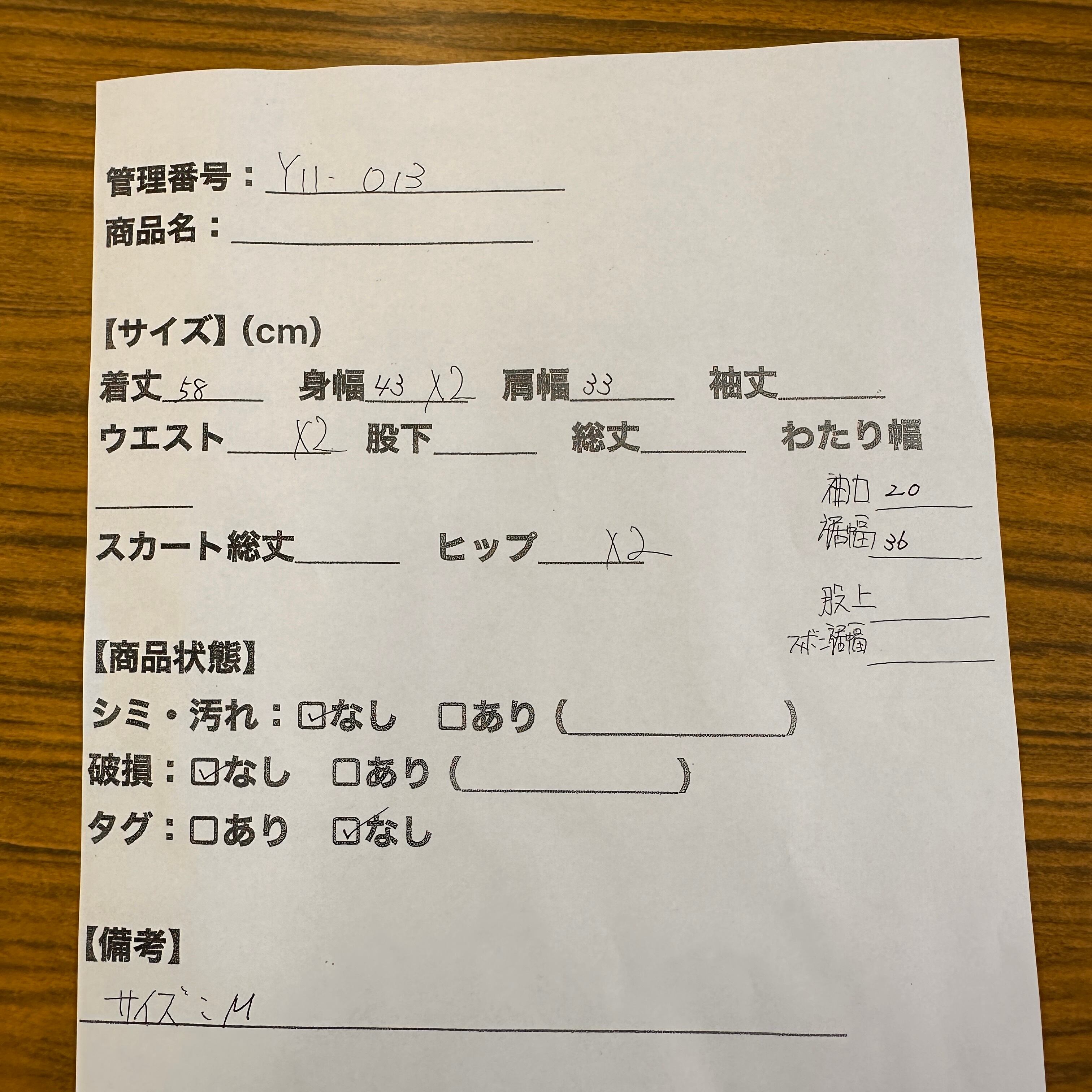 管理番号:Y11-013#てまいらずアパレル商品一覧