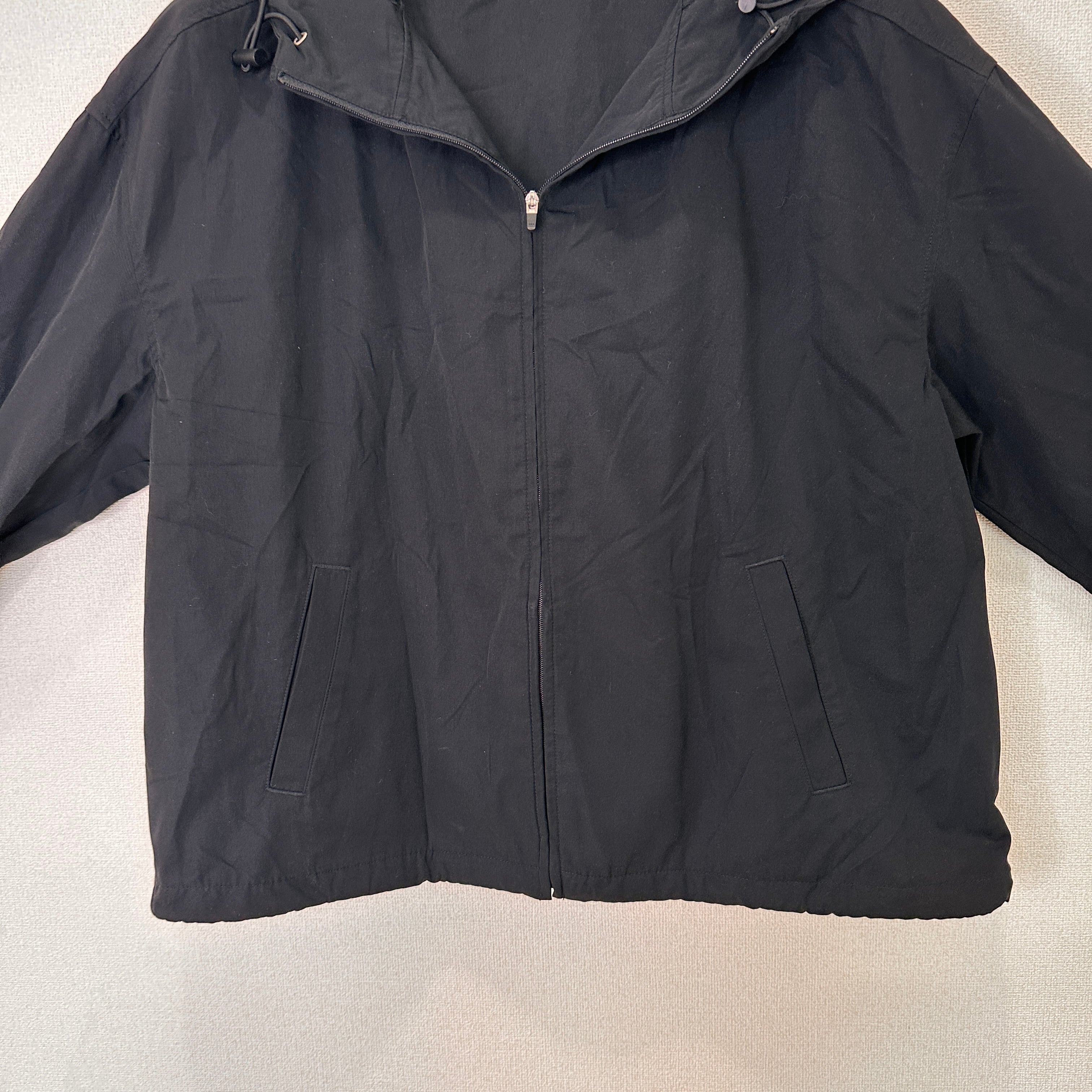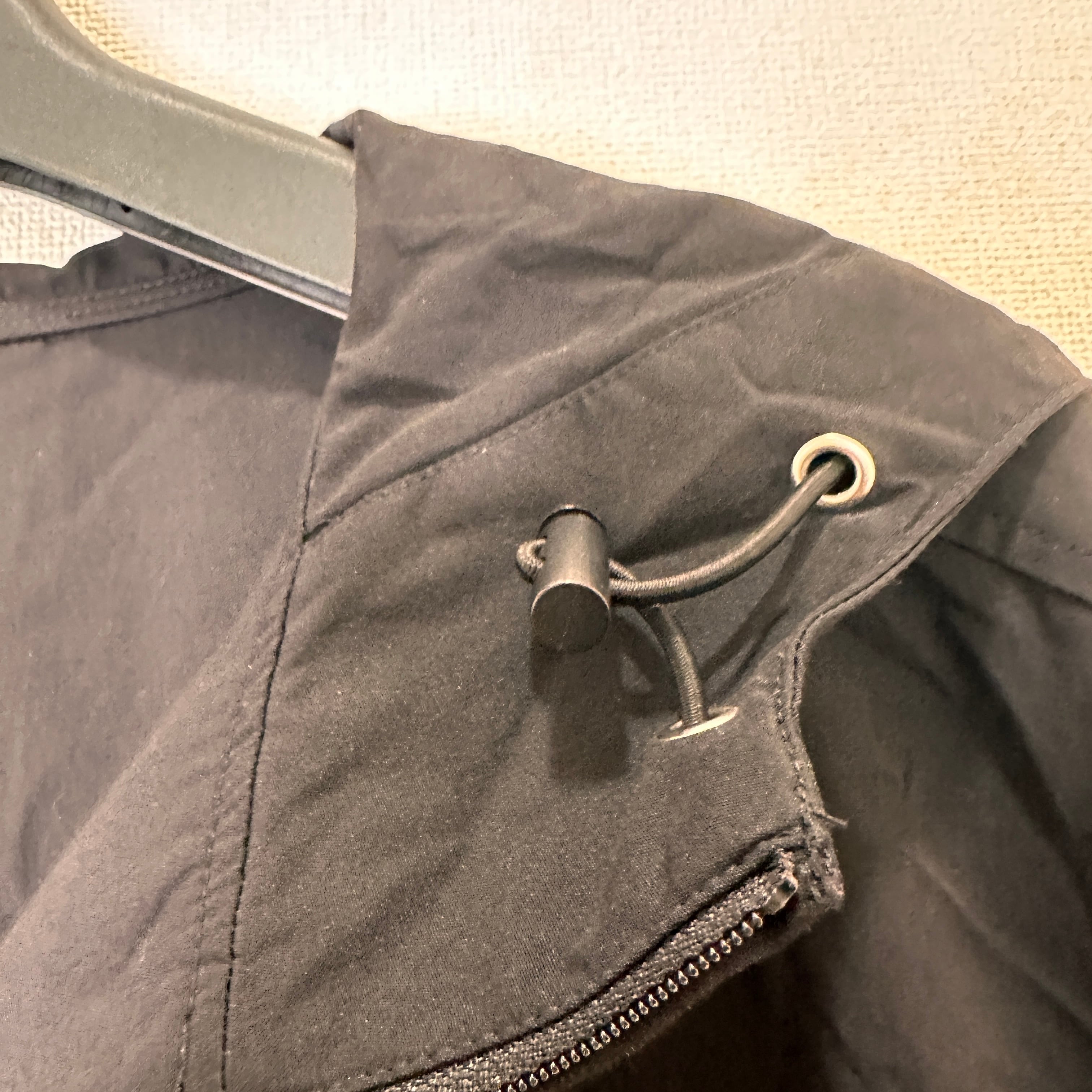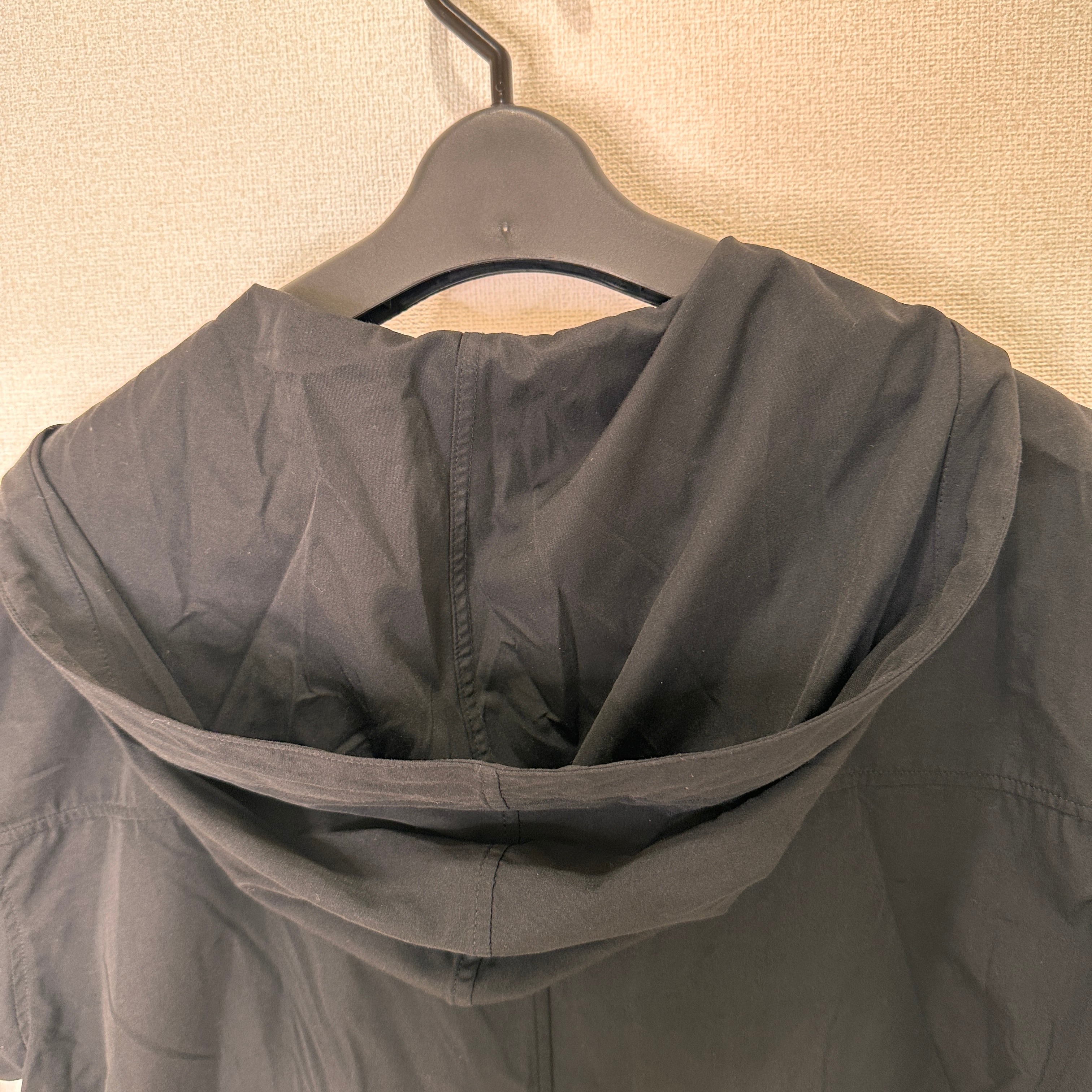 目立った傷や汚れはありませんが、中古品にご理解いただける方のみご購入をお願いいたします。フード付きの黒いジャンパー、Mサイズ、前面にポケット付き。