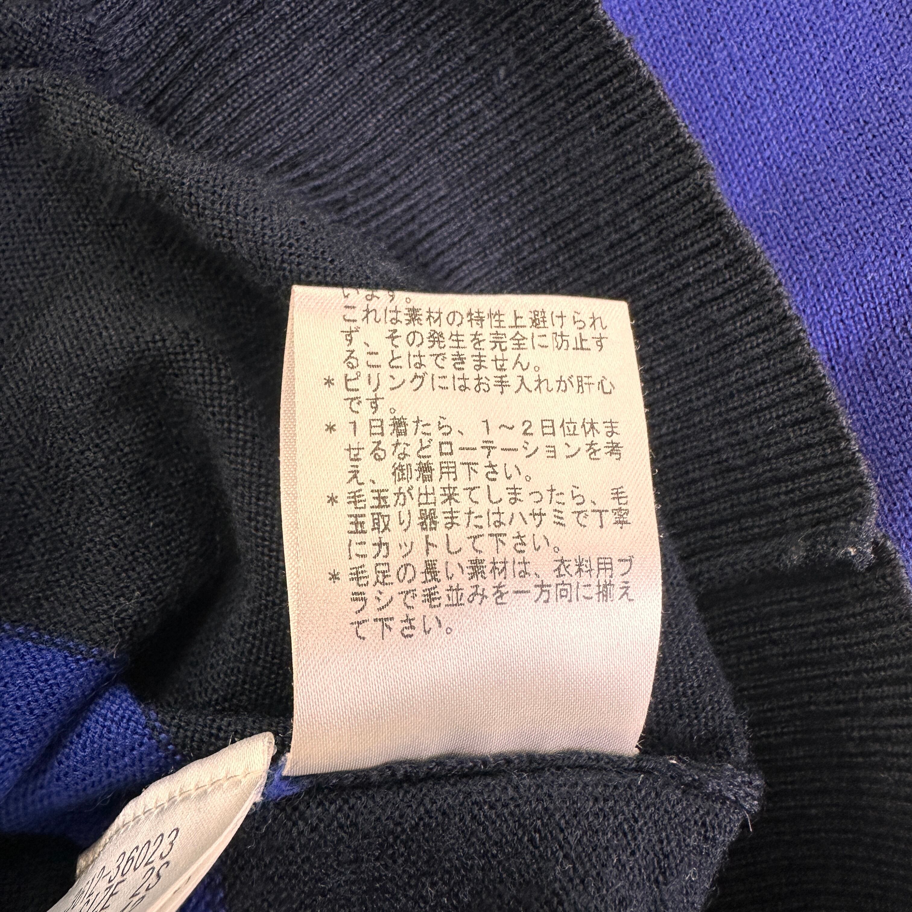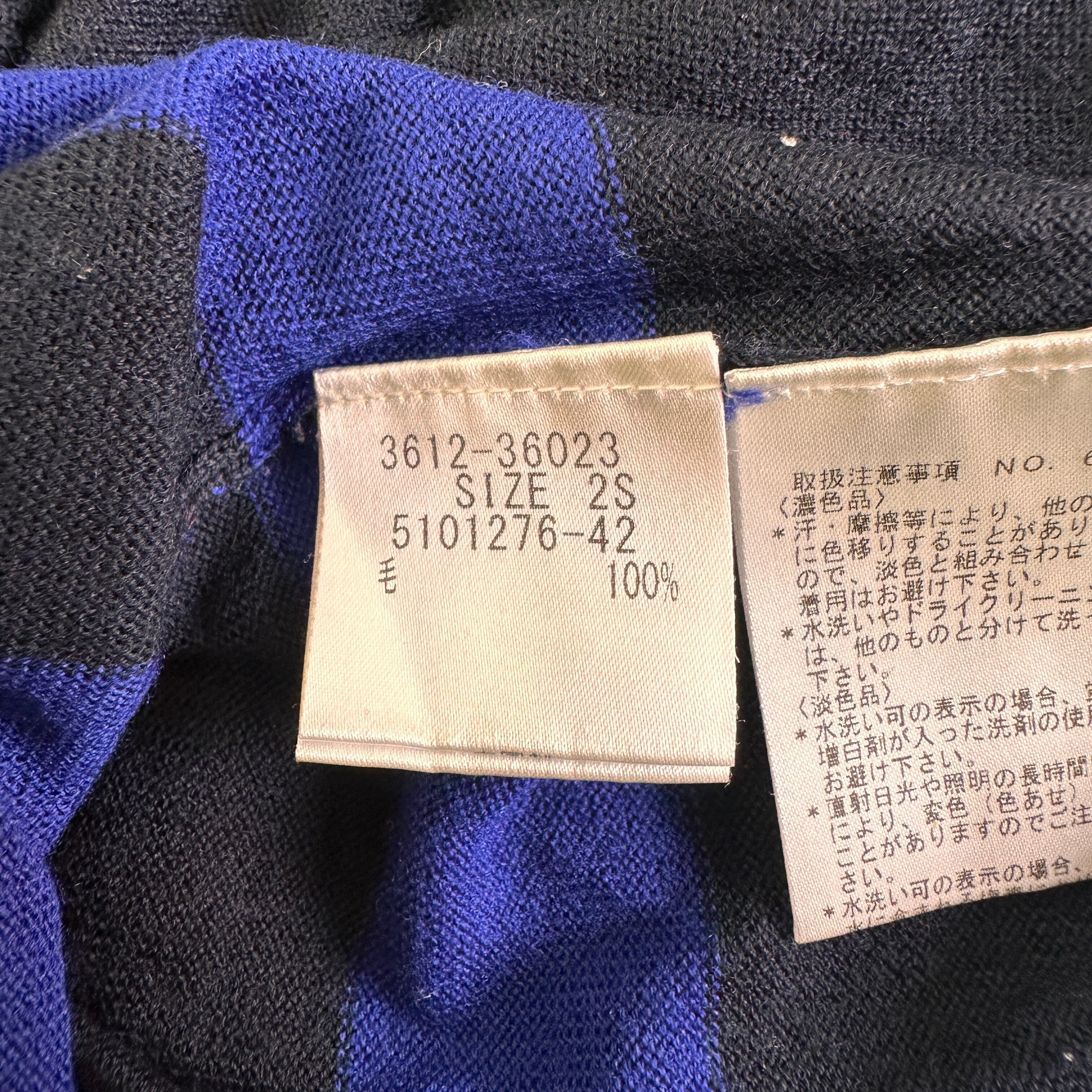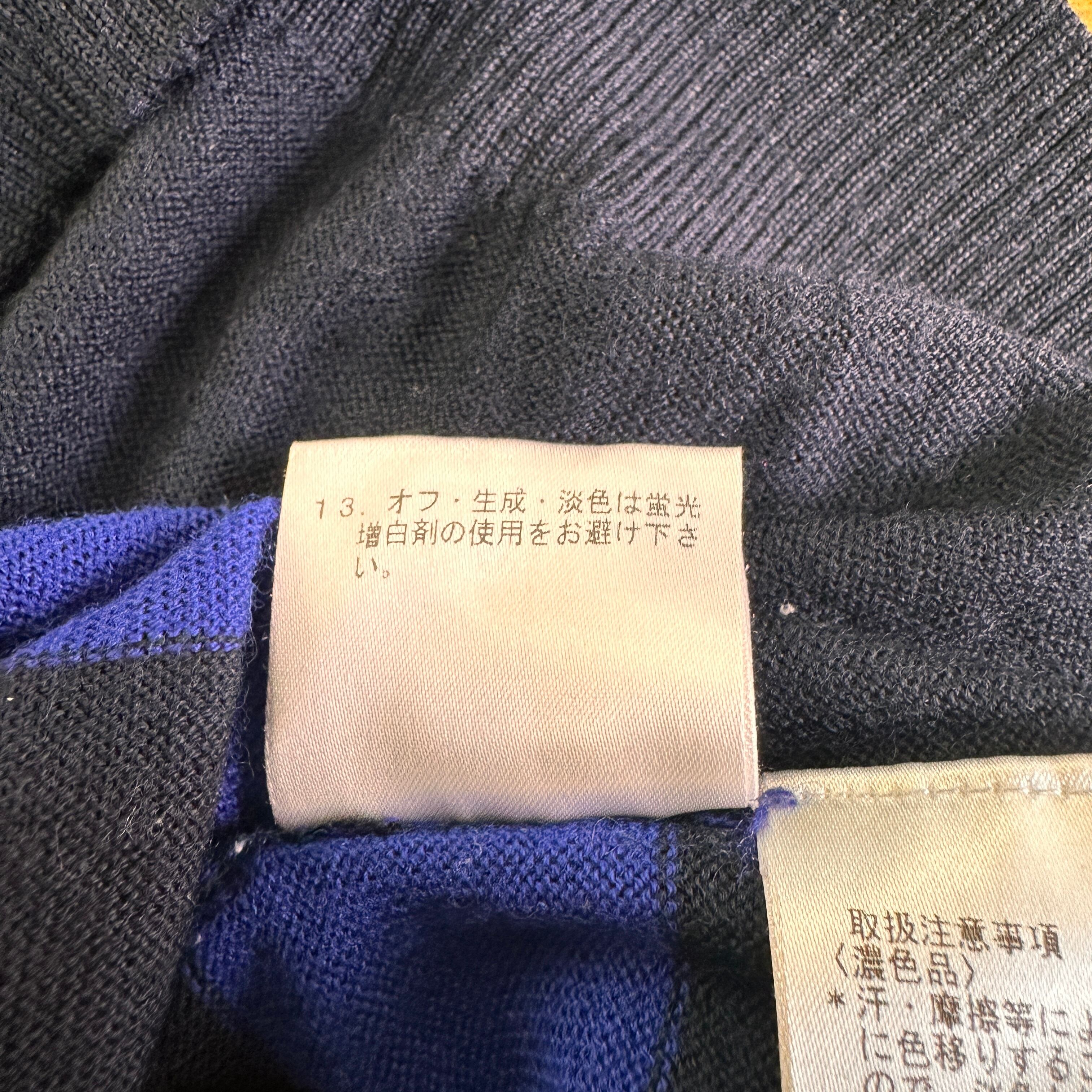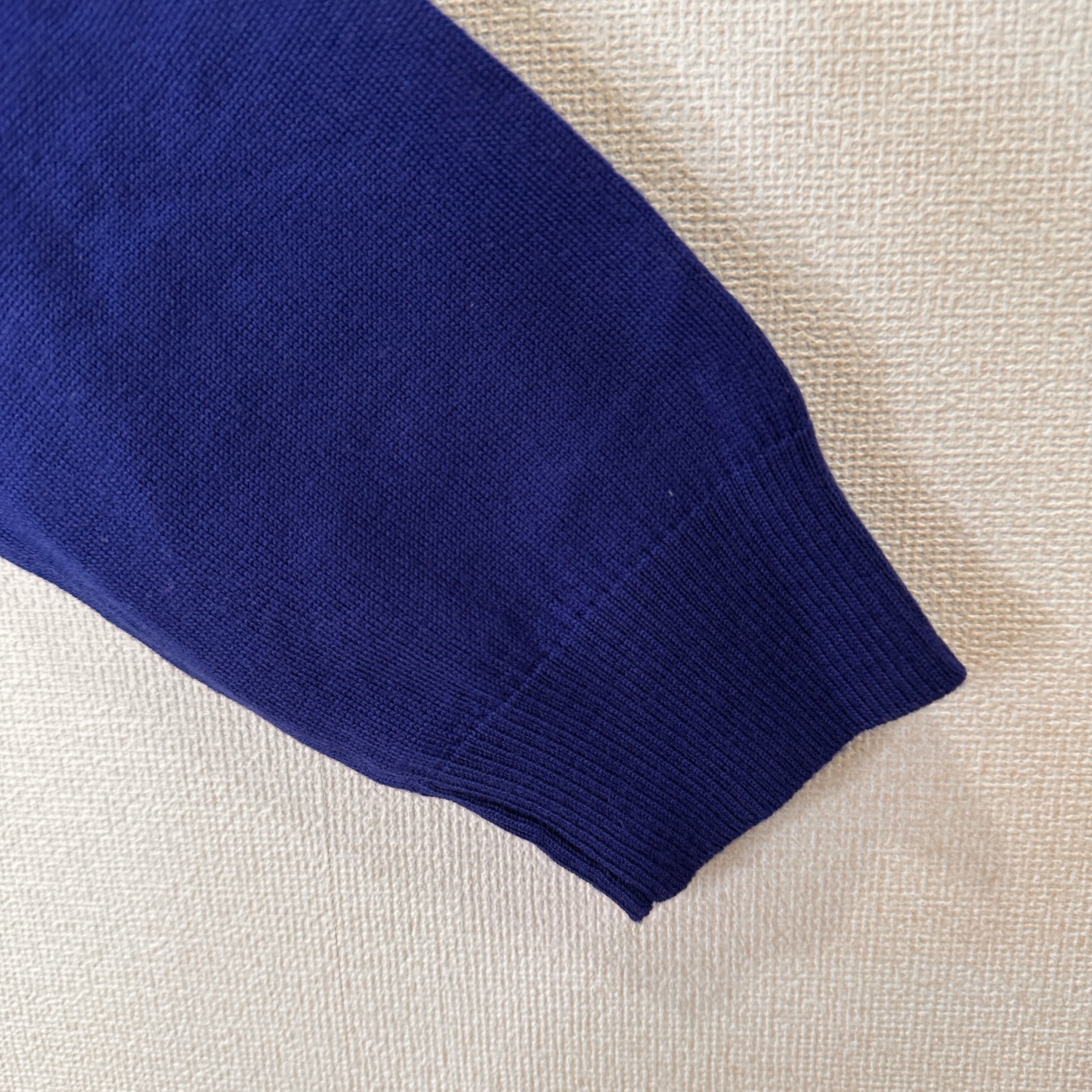 鮮やかなブルーとブラックの配色ボーダーがおしゃれな、モックネック(ハイネック)ニットプルオーバーです。