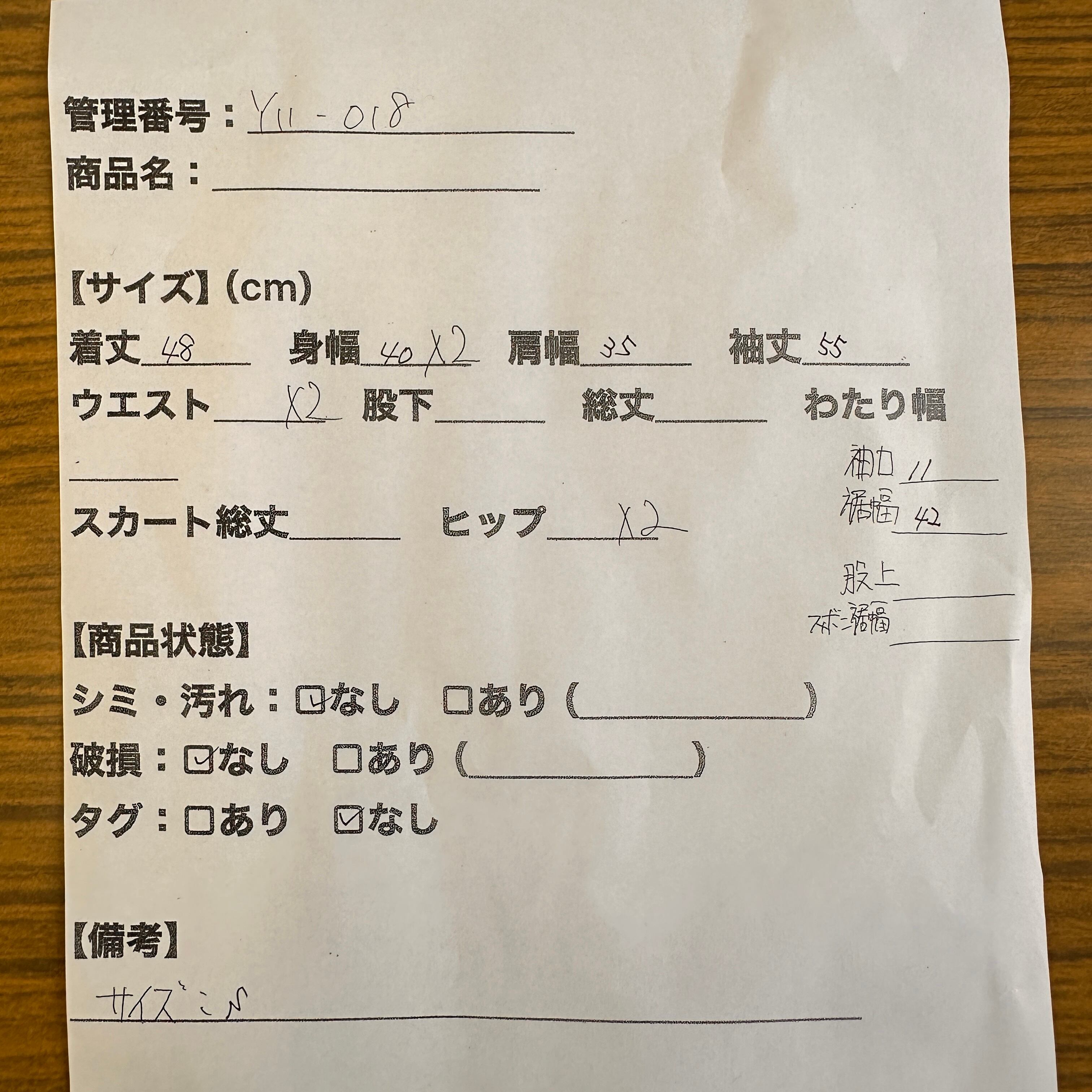 管理番号:Y11-018#てまいらずアパレル商品一覧