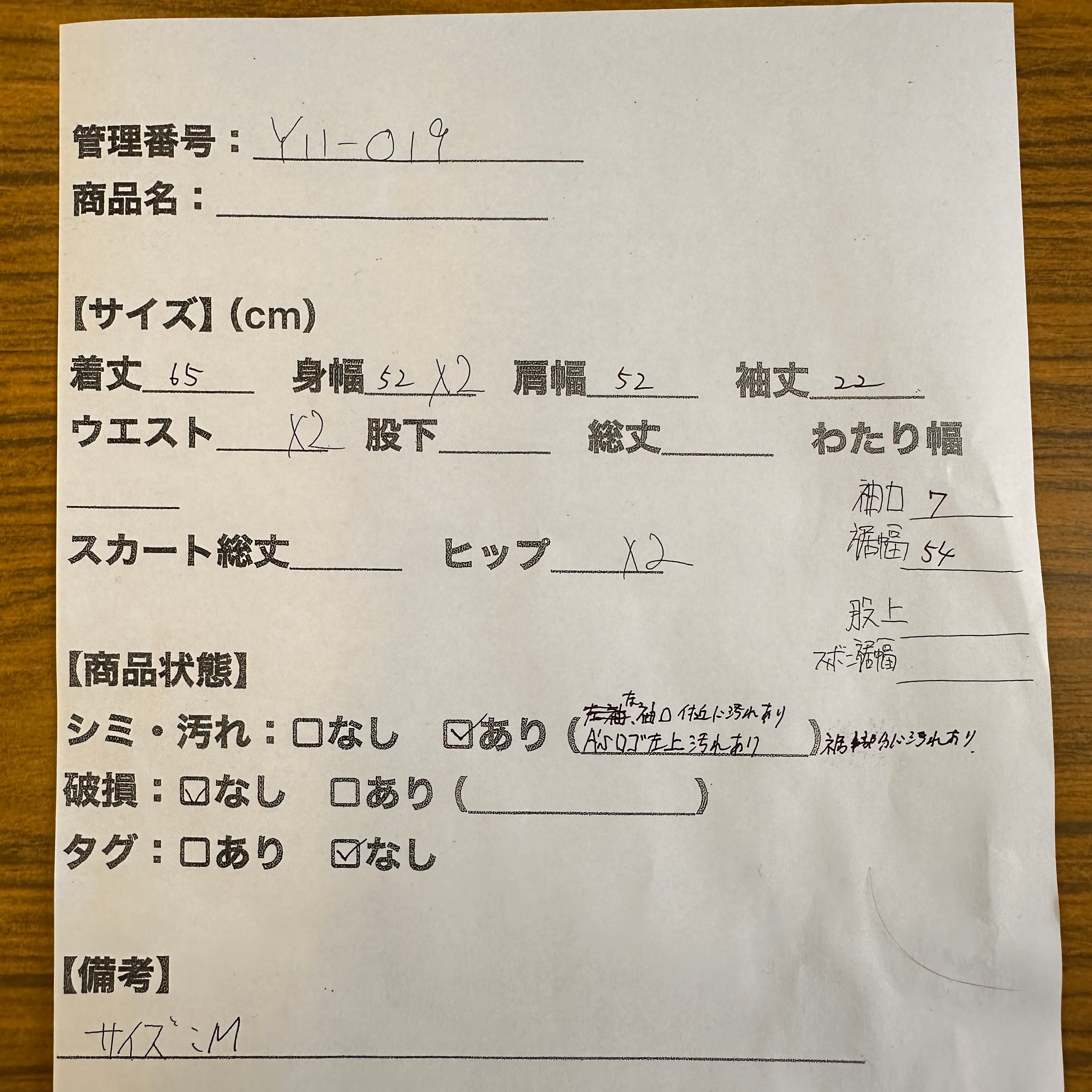 管理番号:Y11-019#てまいらずアパレル商品一覧