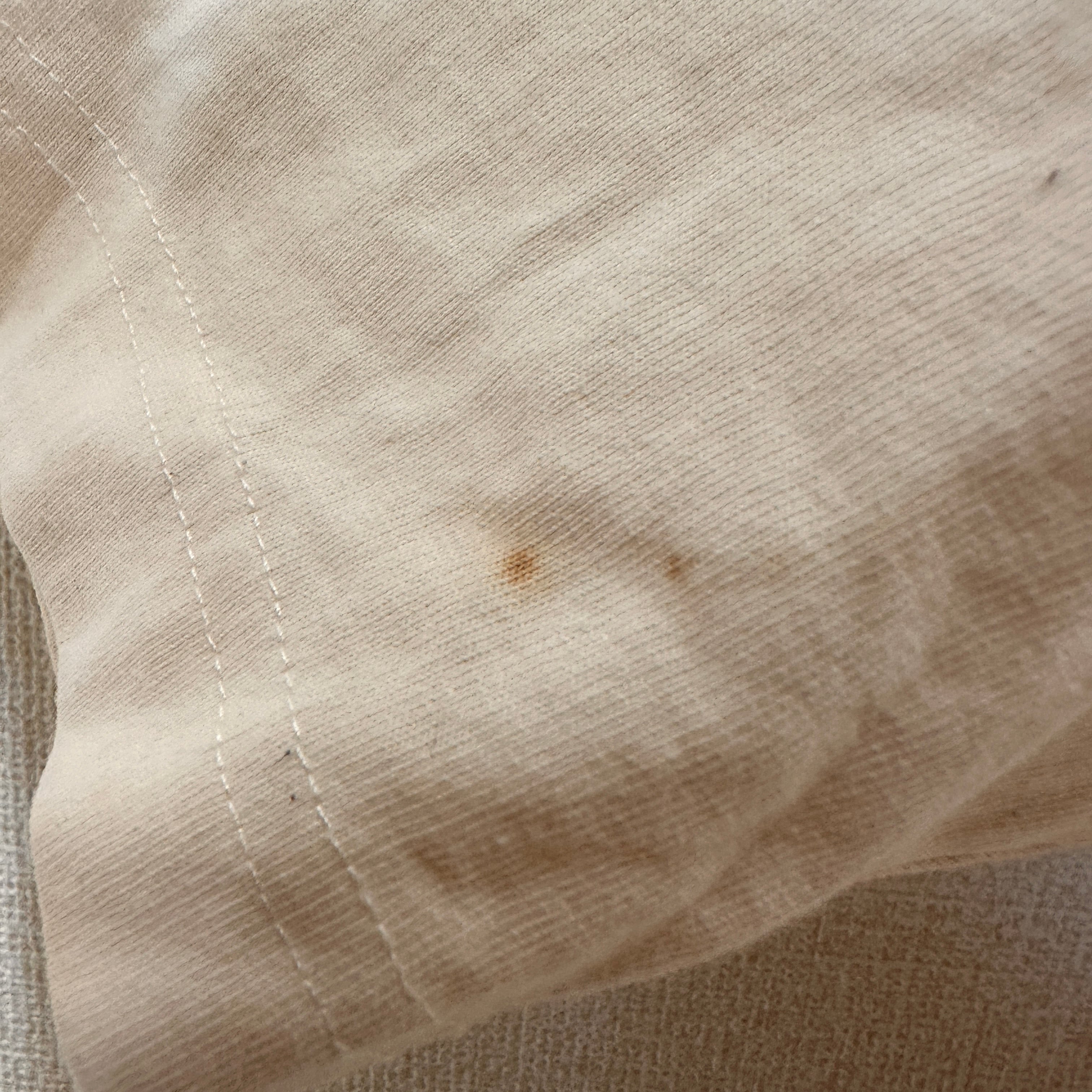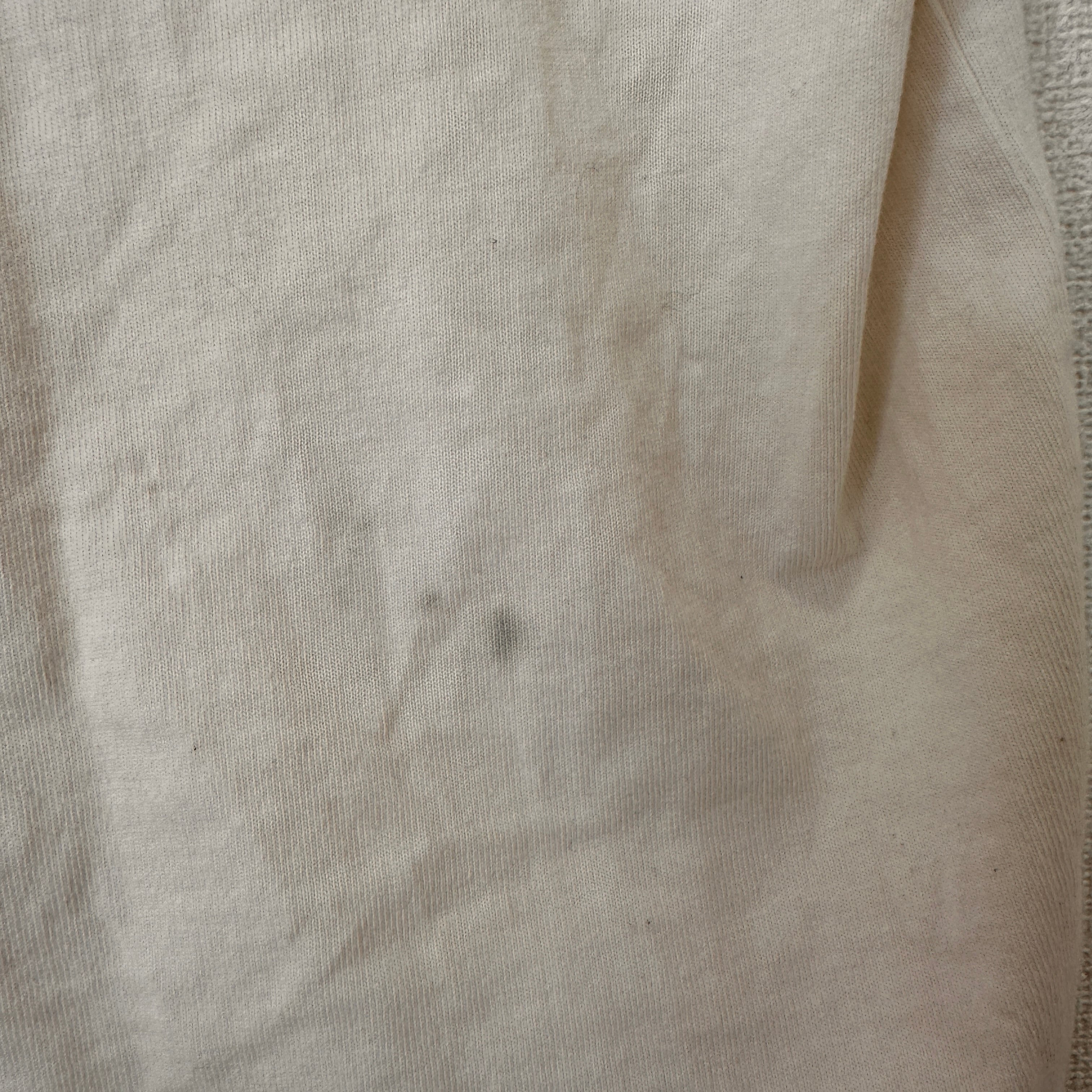 シミ/汚れ: あり (左袖口に汚れ、ロゴ左上に汚れ、裾部分に汚れ)