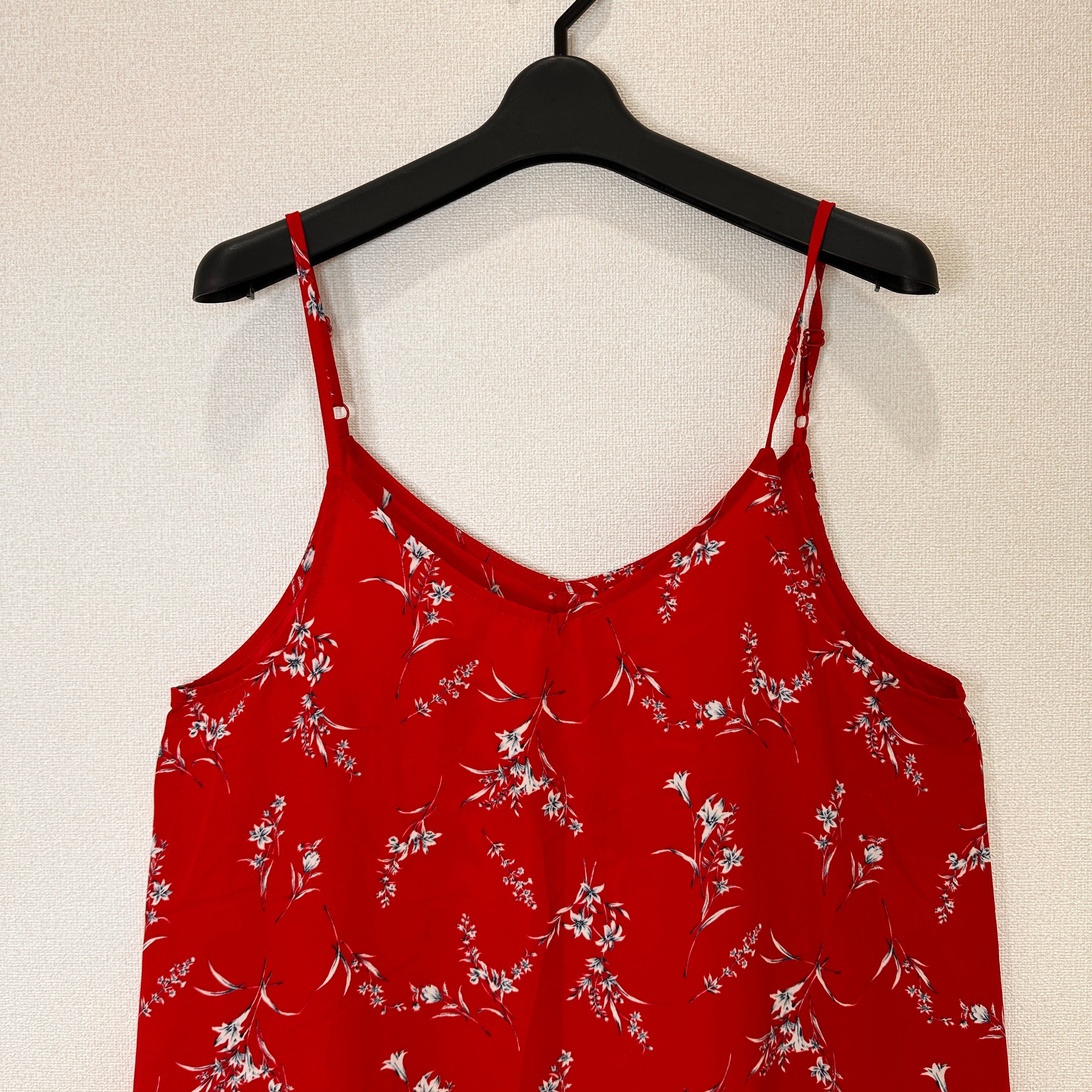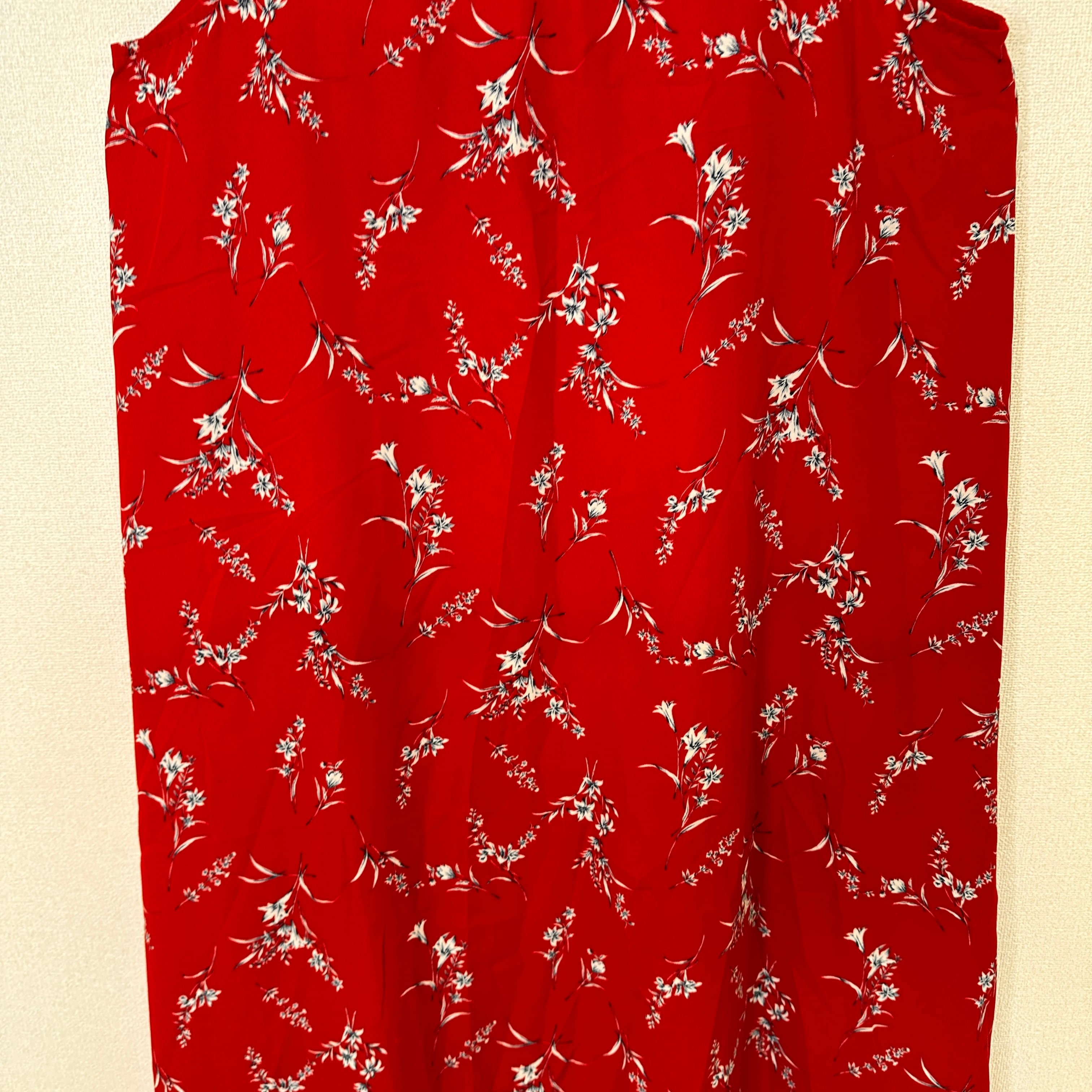 目立った傷や汚れはありませんが、中古品にご理解いただける方のみご購入をお願いいたします。赤い花柄のキャミワンピース、ロング丈で涼しげなデザイン。