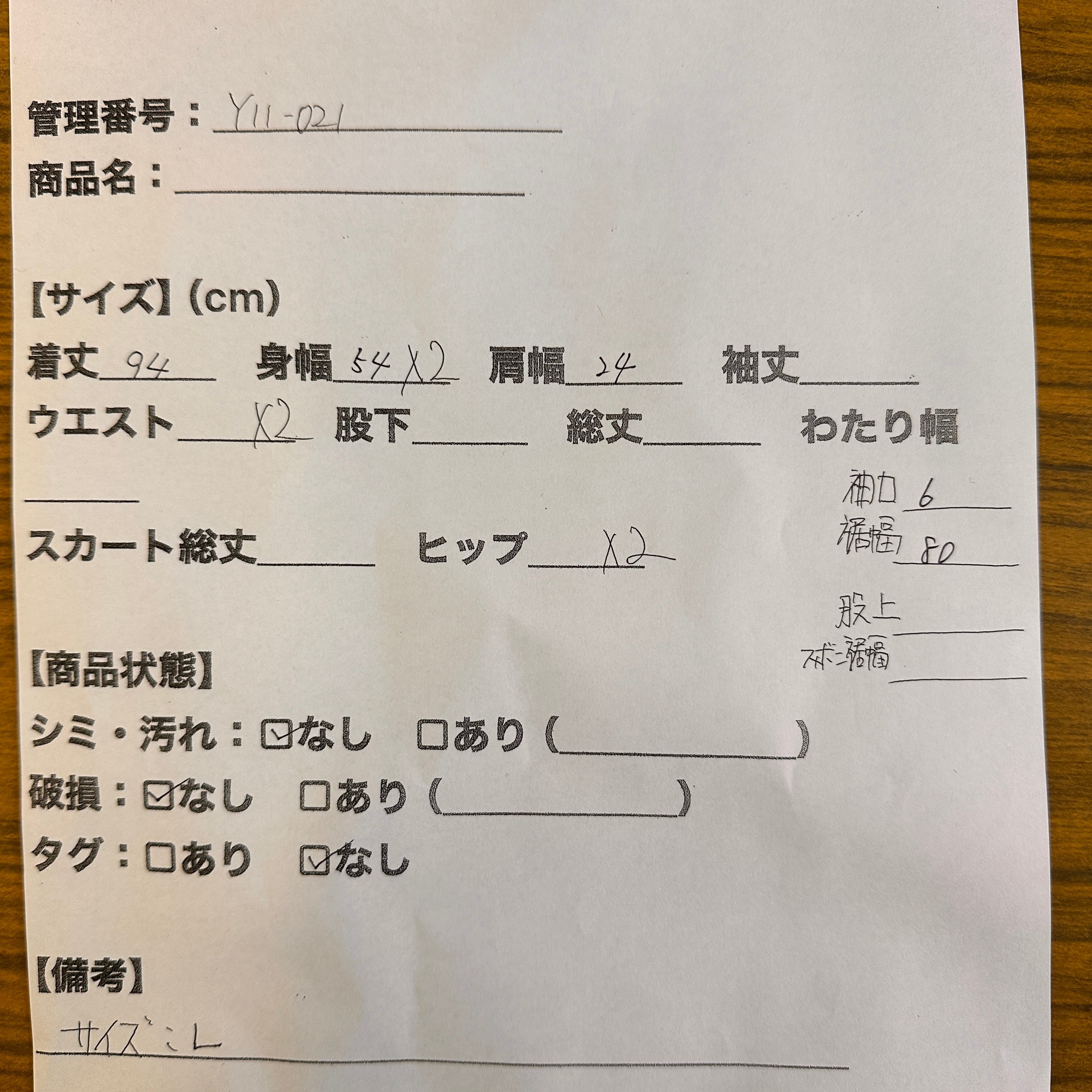 管理番号:Y11-021#てまいらずアパレル商品一覧