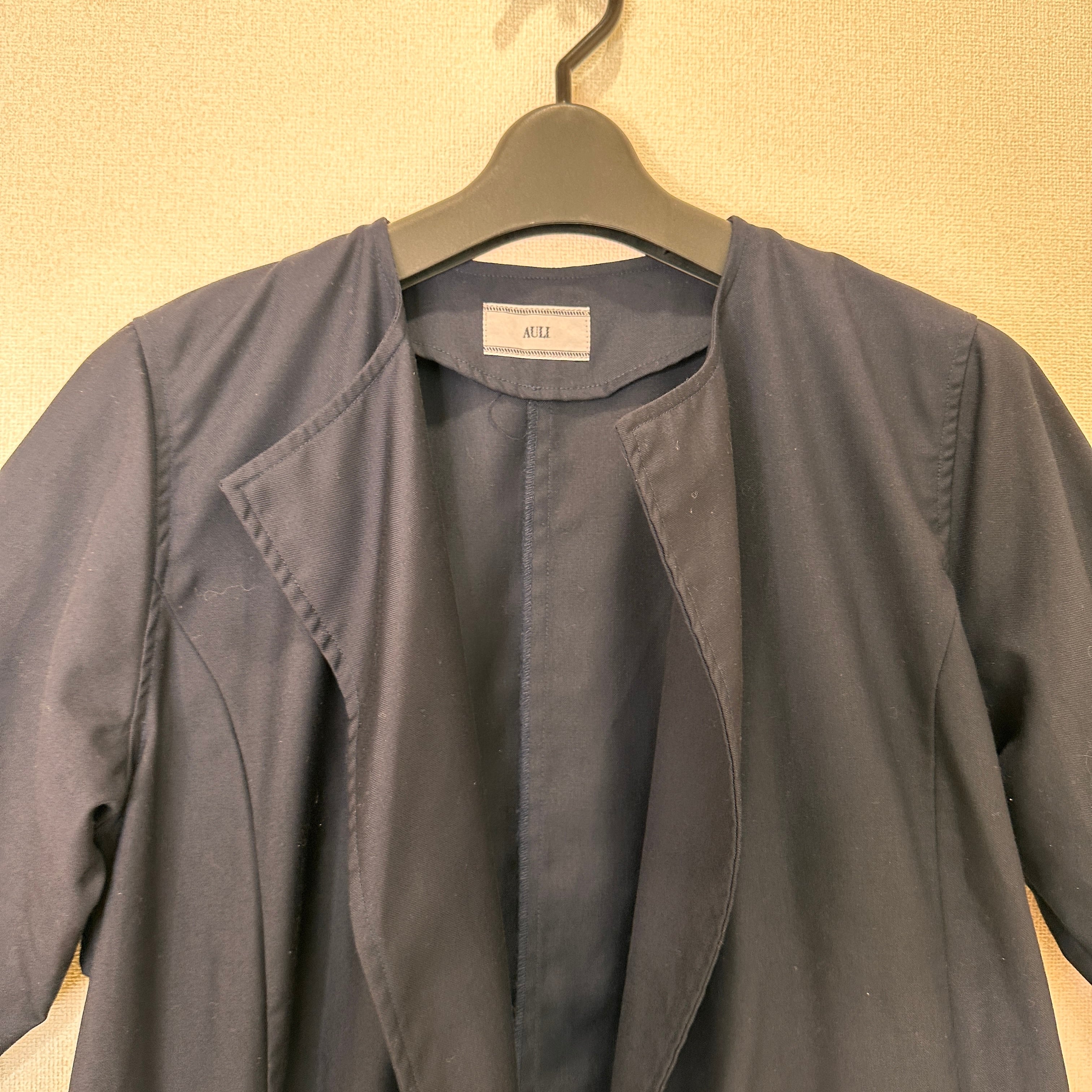 AULI (アウリィ) ノーカラー ロングシャツコート/トレンチコート Mサイズ 濃紺