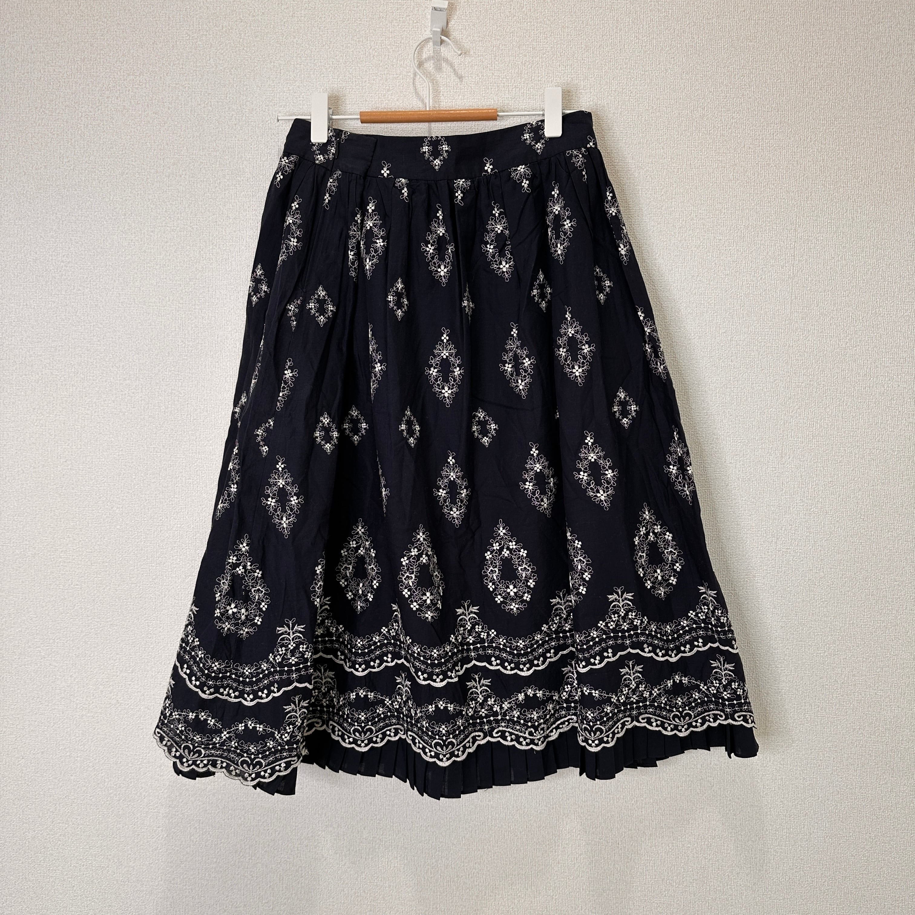 chaber (チャバー) 刺繍入り フレアスカート 38 (Mサイズ相当) ネイビー
