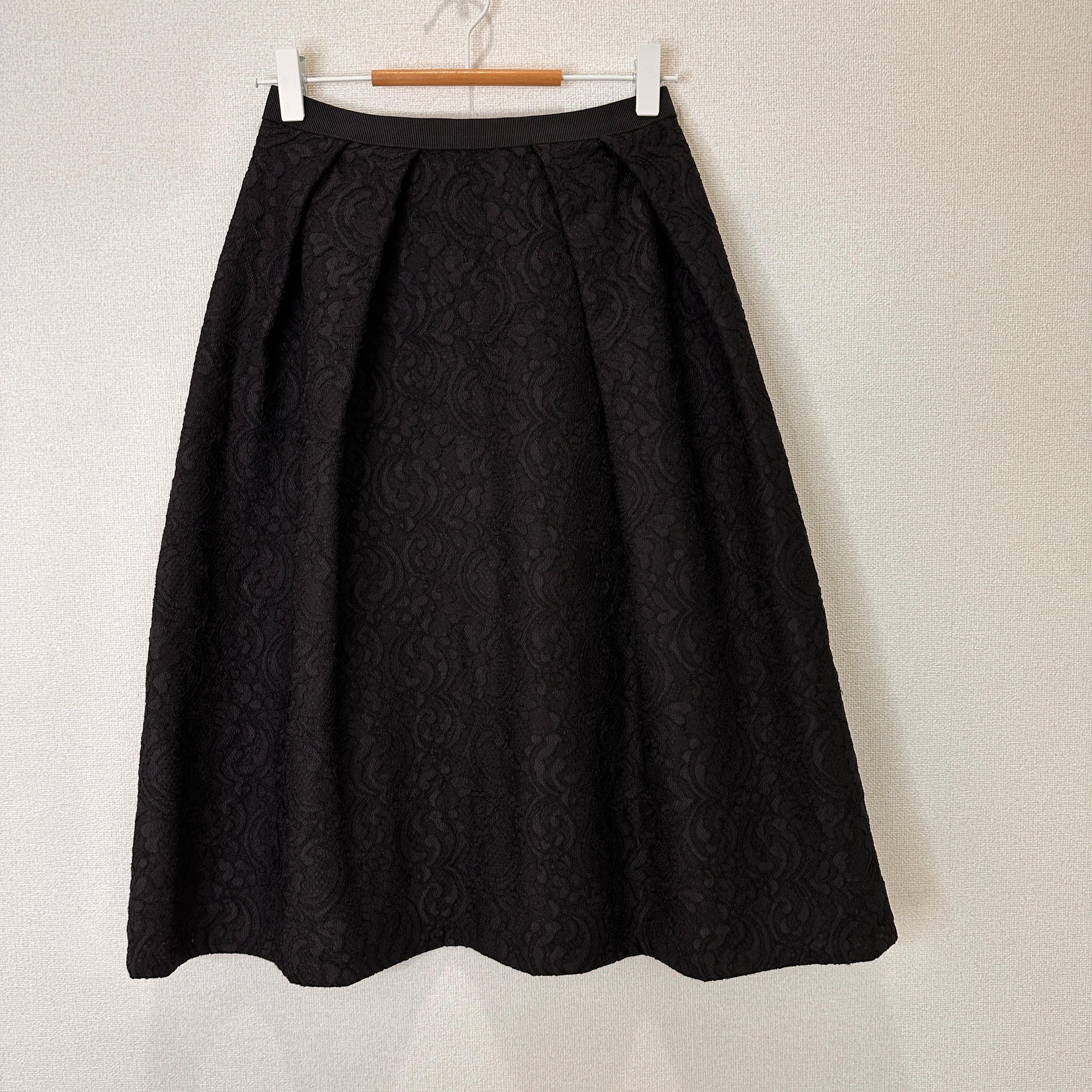 目立った傷や汚れはありませんが、中古品にご理解いただける方のみご購入をお願いいたします。レース模様の黒いロングスカート、ゴムウエストで快適な着用感。