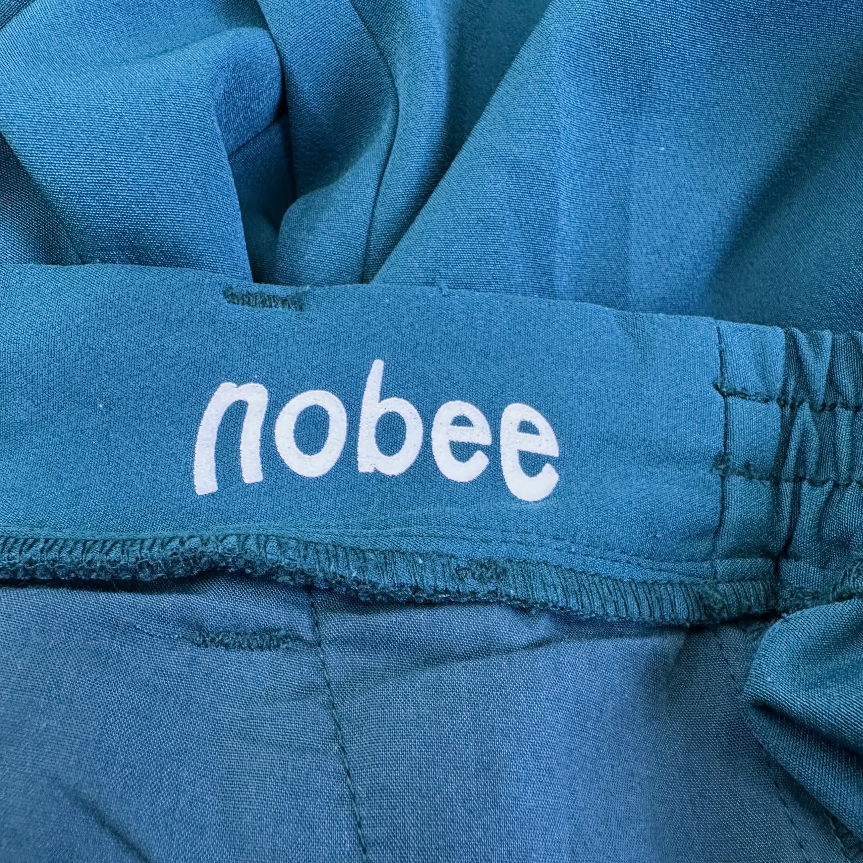 また、雨や汗で濡れた状態でソファやバッグ等に長時間接触すると色移りする場合がありますのでご注意ください。グリーンのnobeeスラックス、サイドポケット付きでスタイリッシュなデザイン。