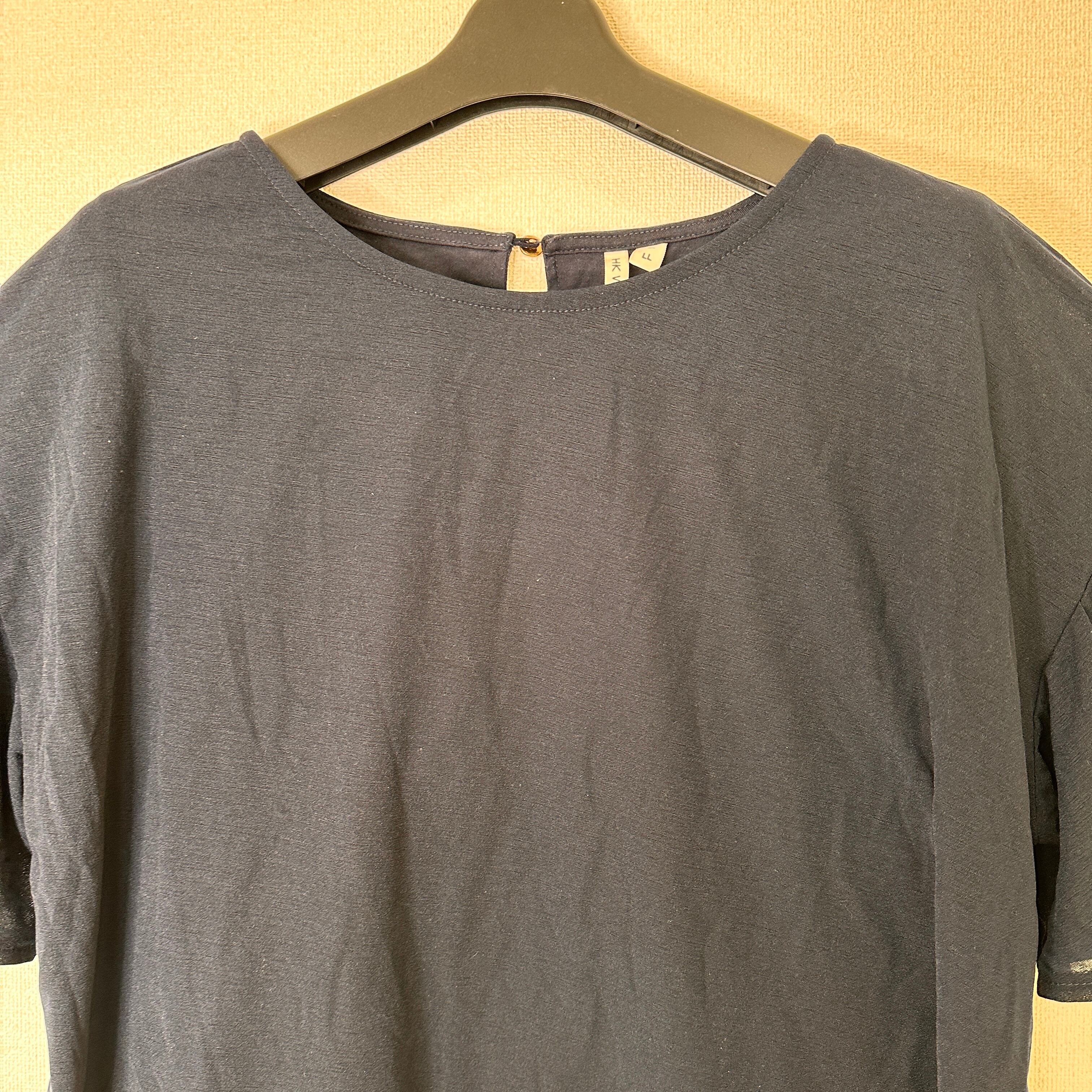 色は黒に近いネイビー(紺)で、透け感のある軽やかな生地です。