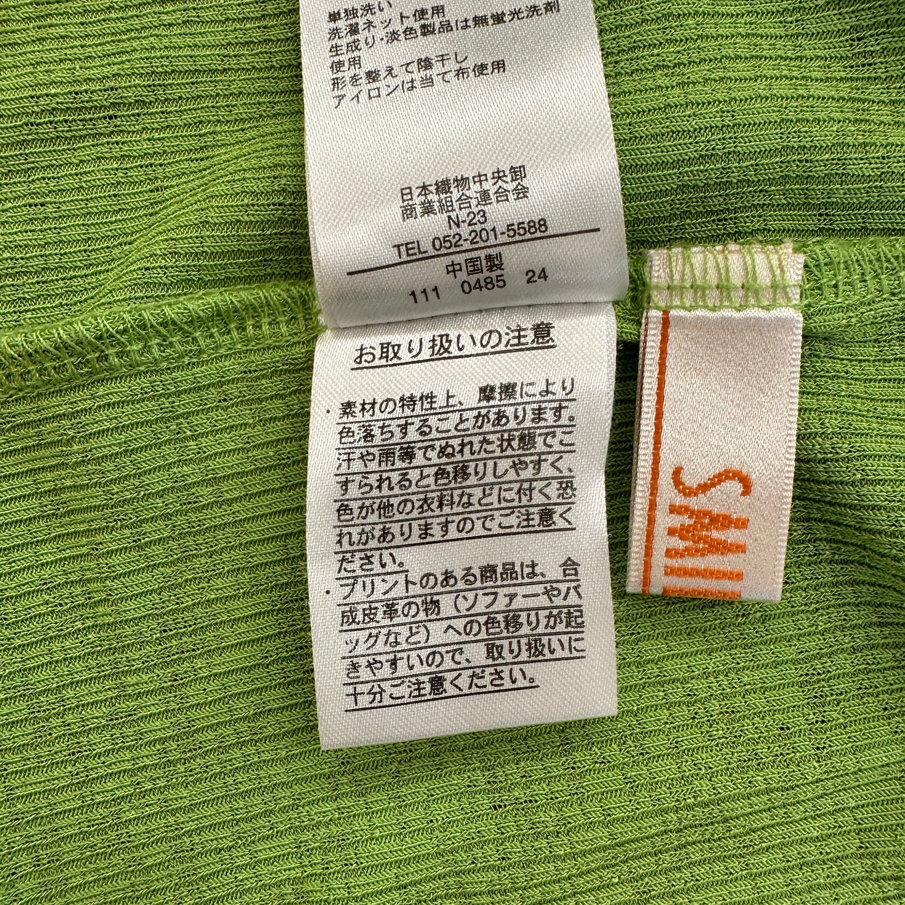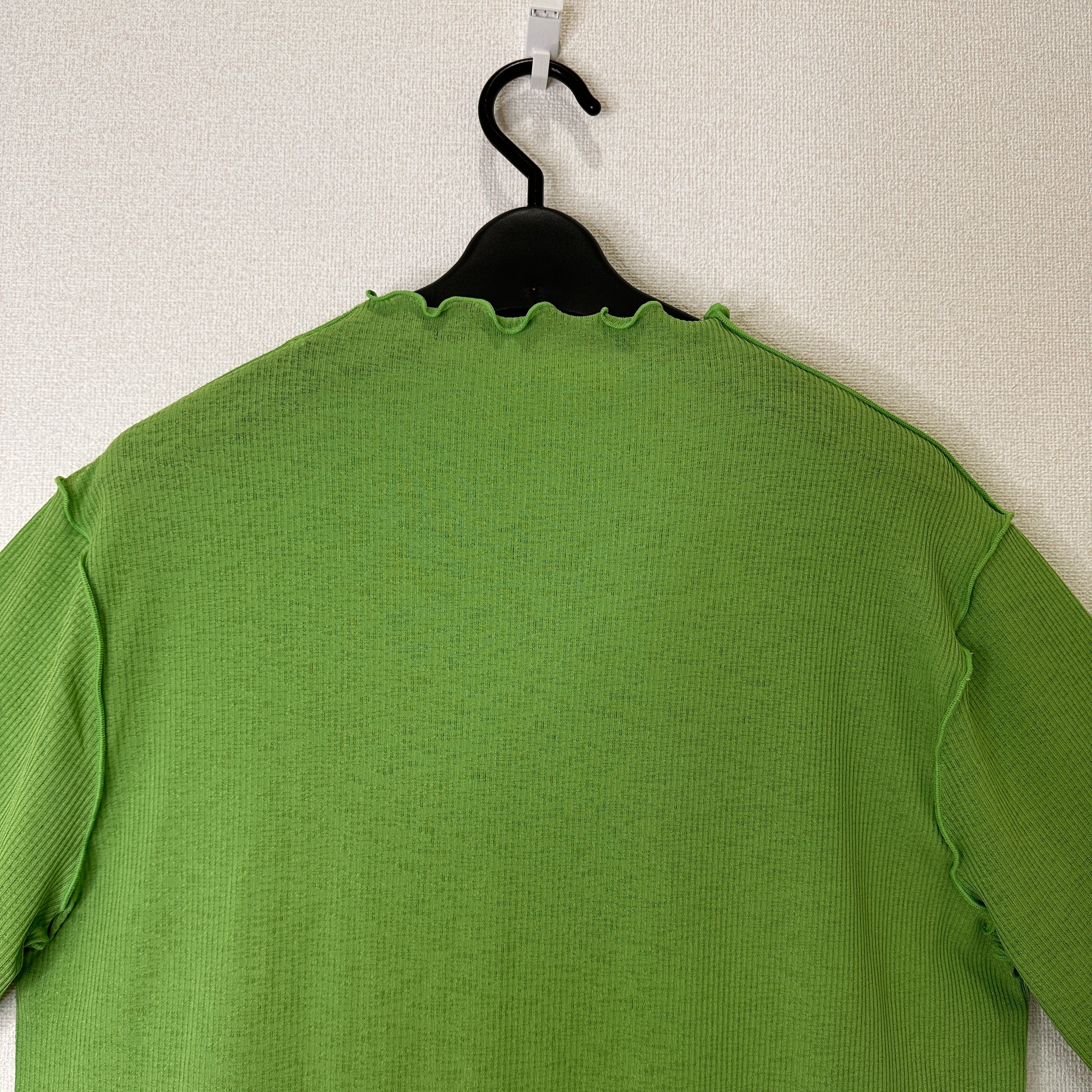 鮮やかなライムグリーンのリブニットTシャツ(トップス)です。