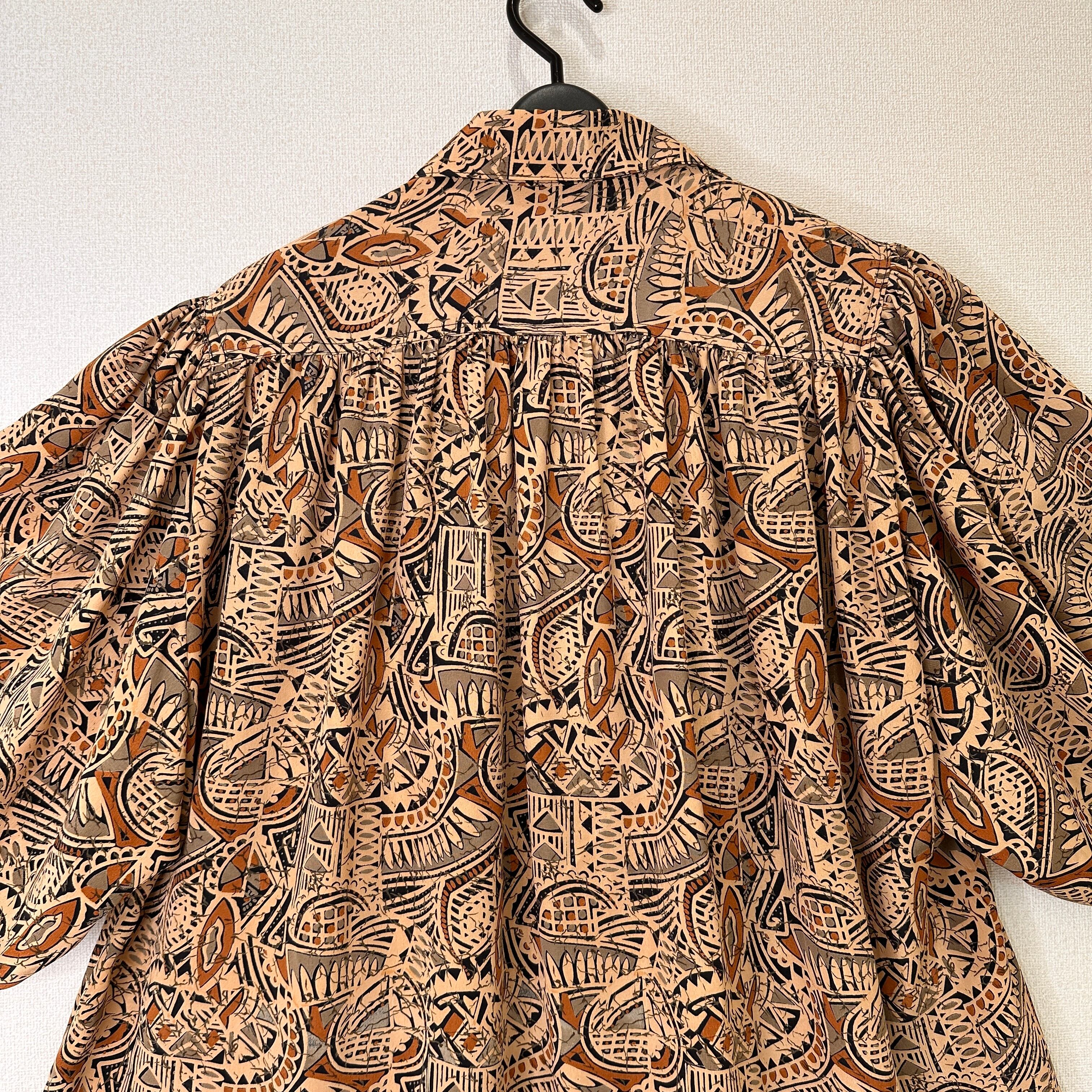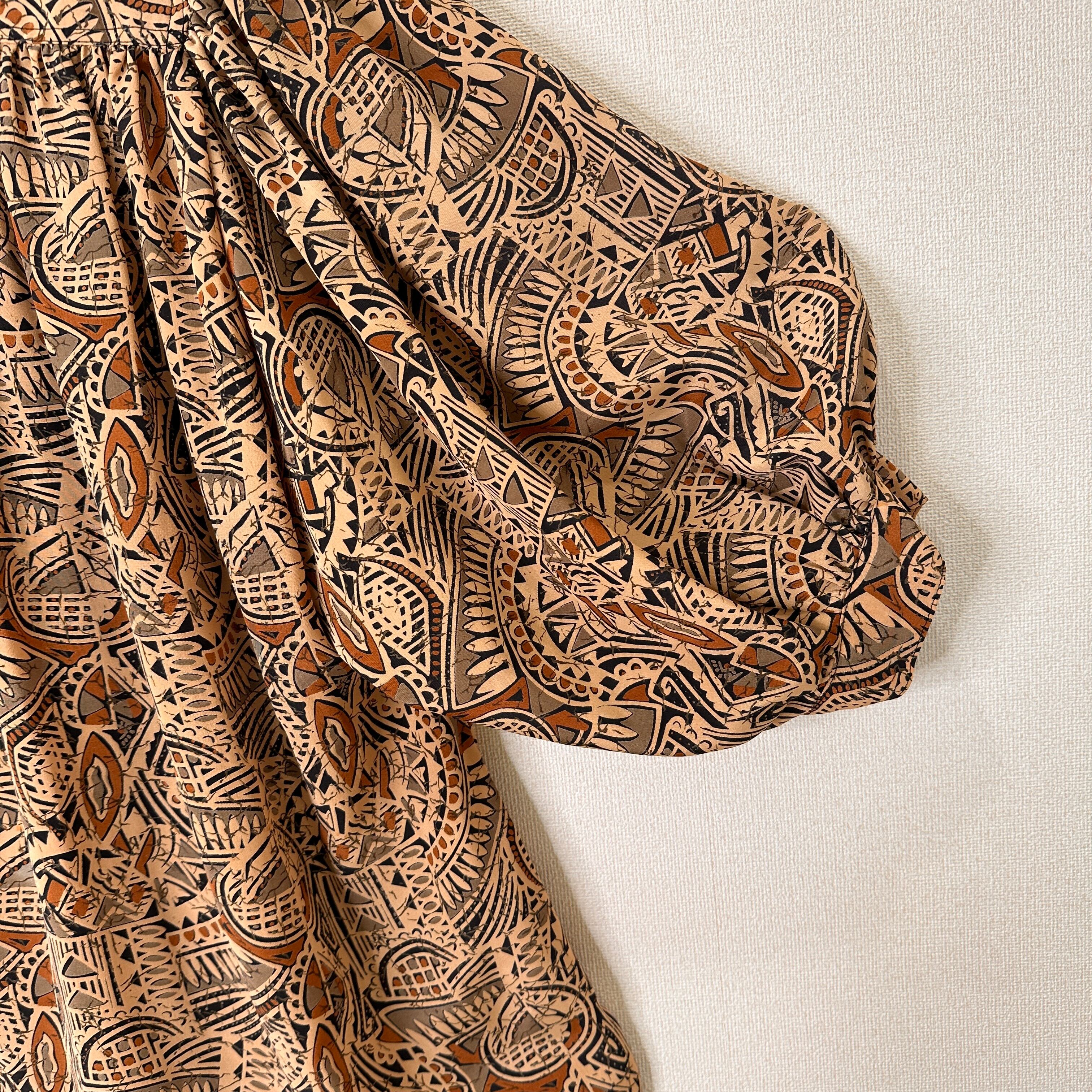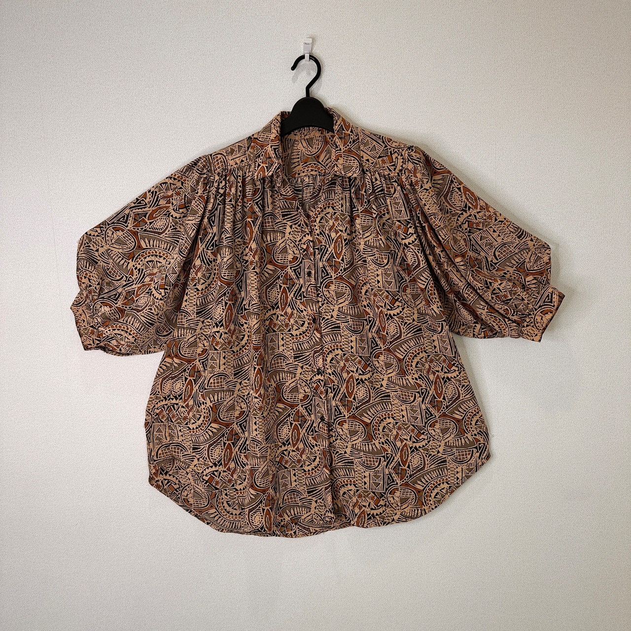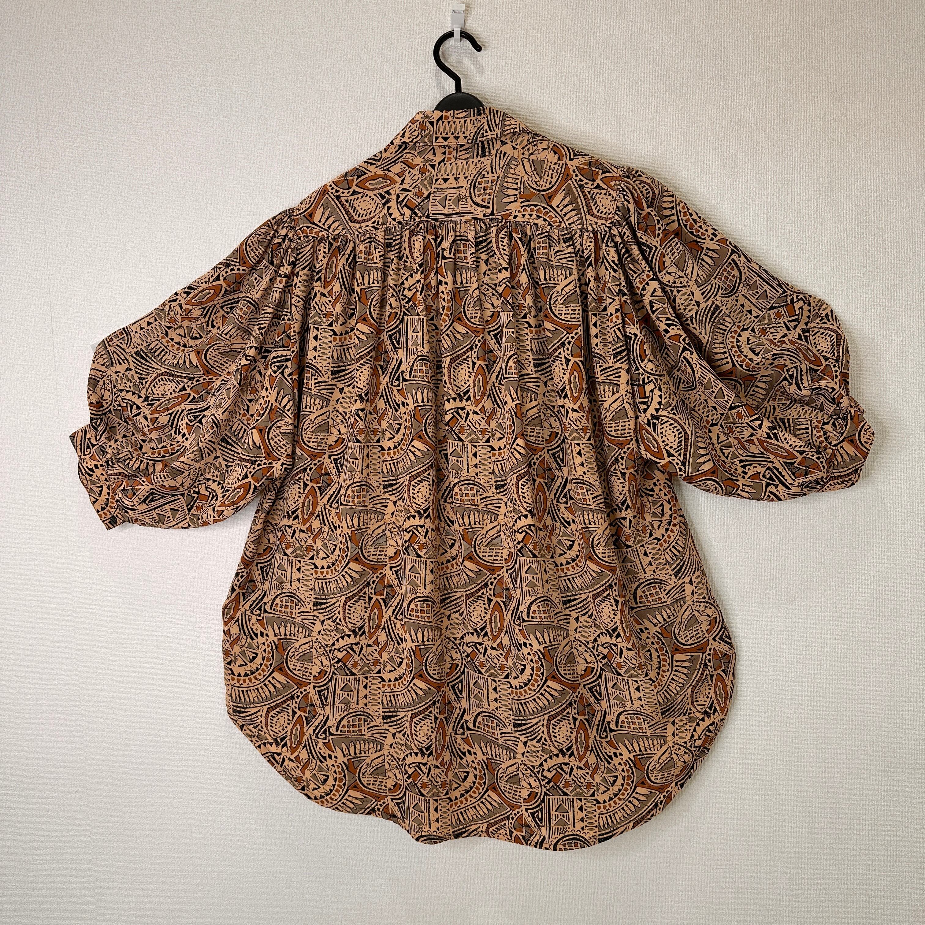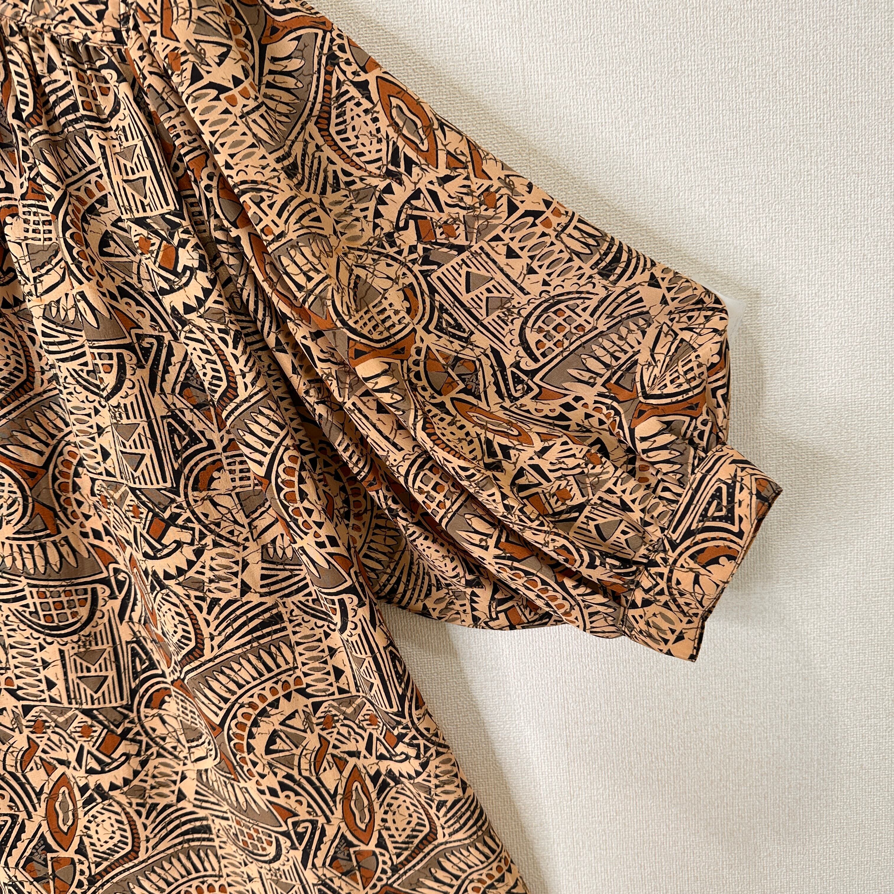 CURRENT レトロ柄 ボリューム袖ブラウス パフスリーブ アート柄