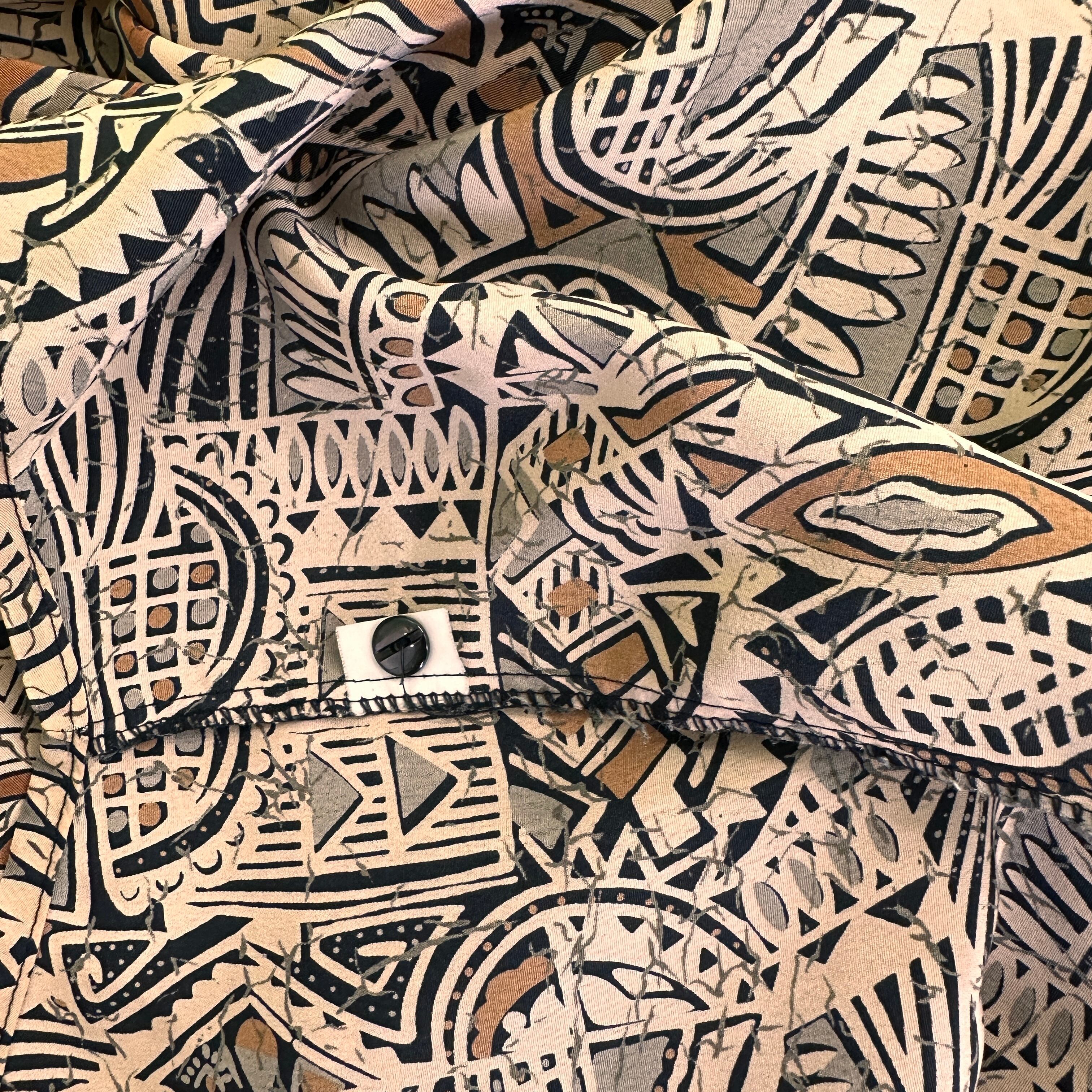 目立った傷や汚れはありませんが、中古品にご理解いただける方のみご購入をお願いいたします。抽象的なパターンのCURRENT製五分袖シャツ。