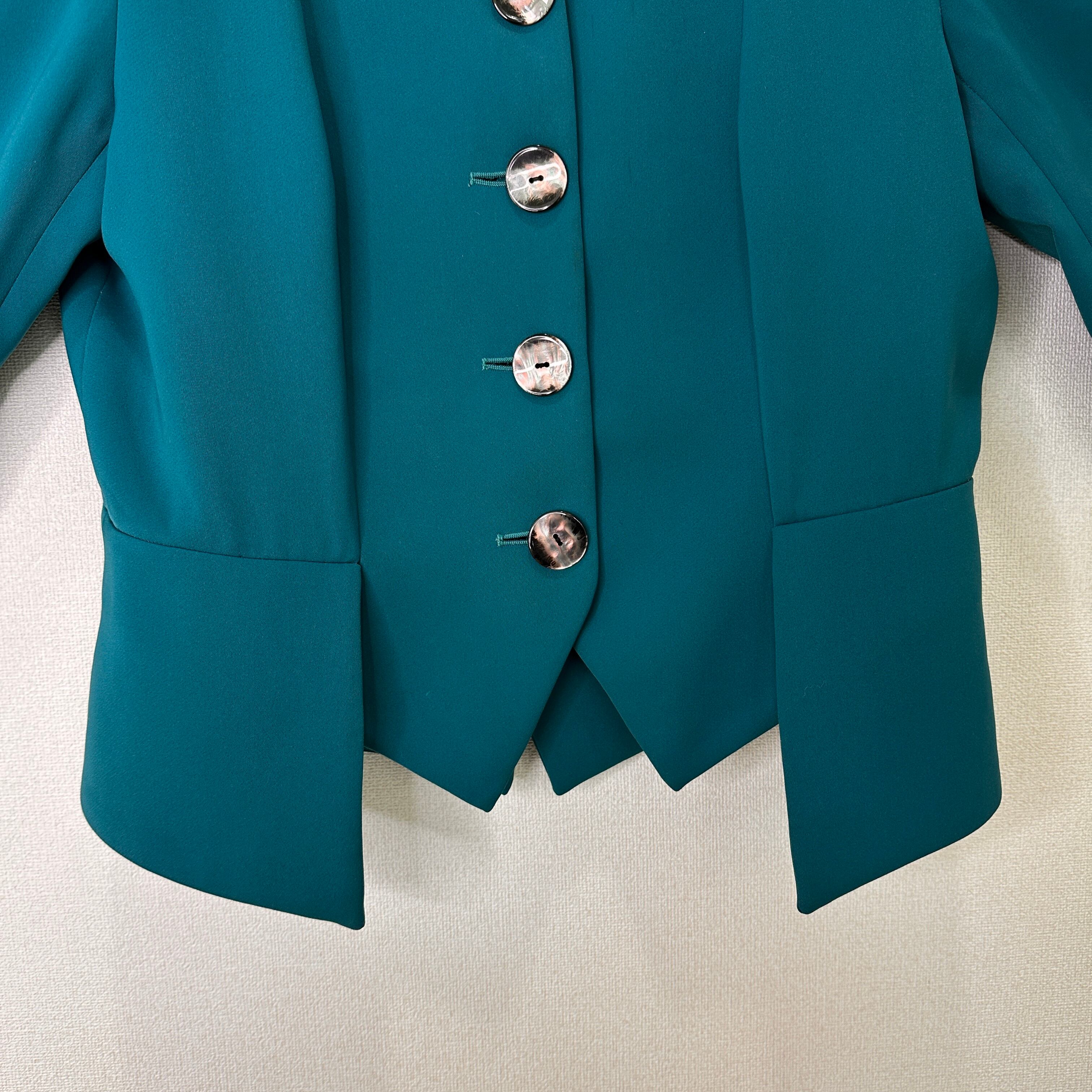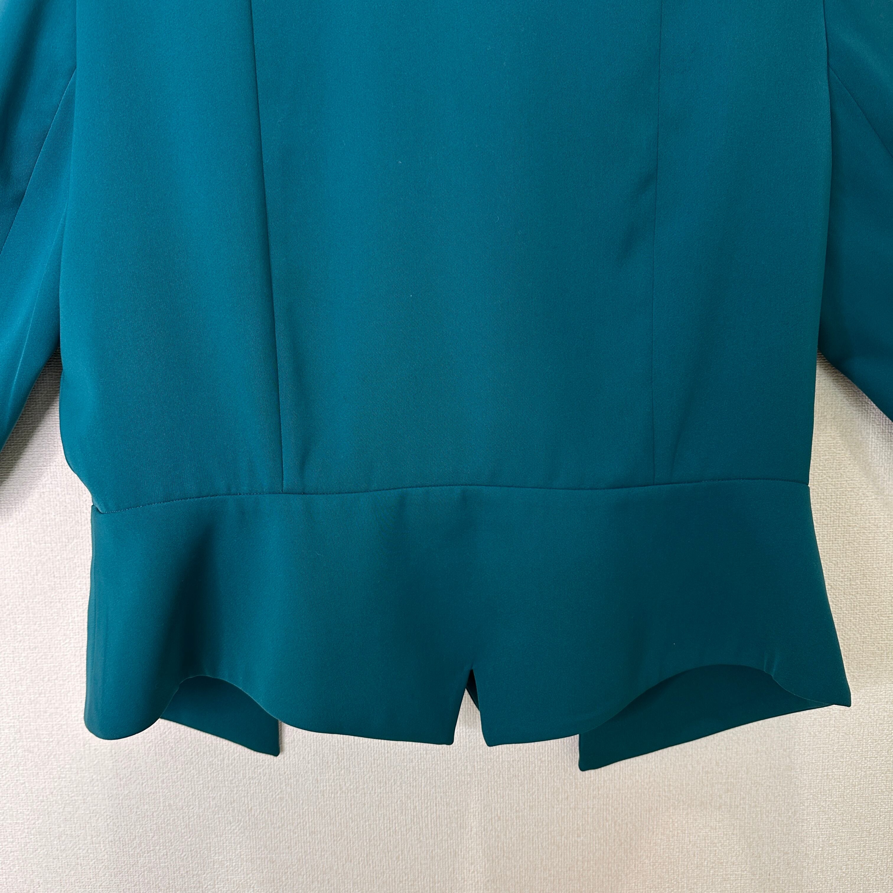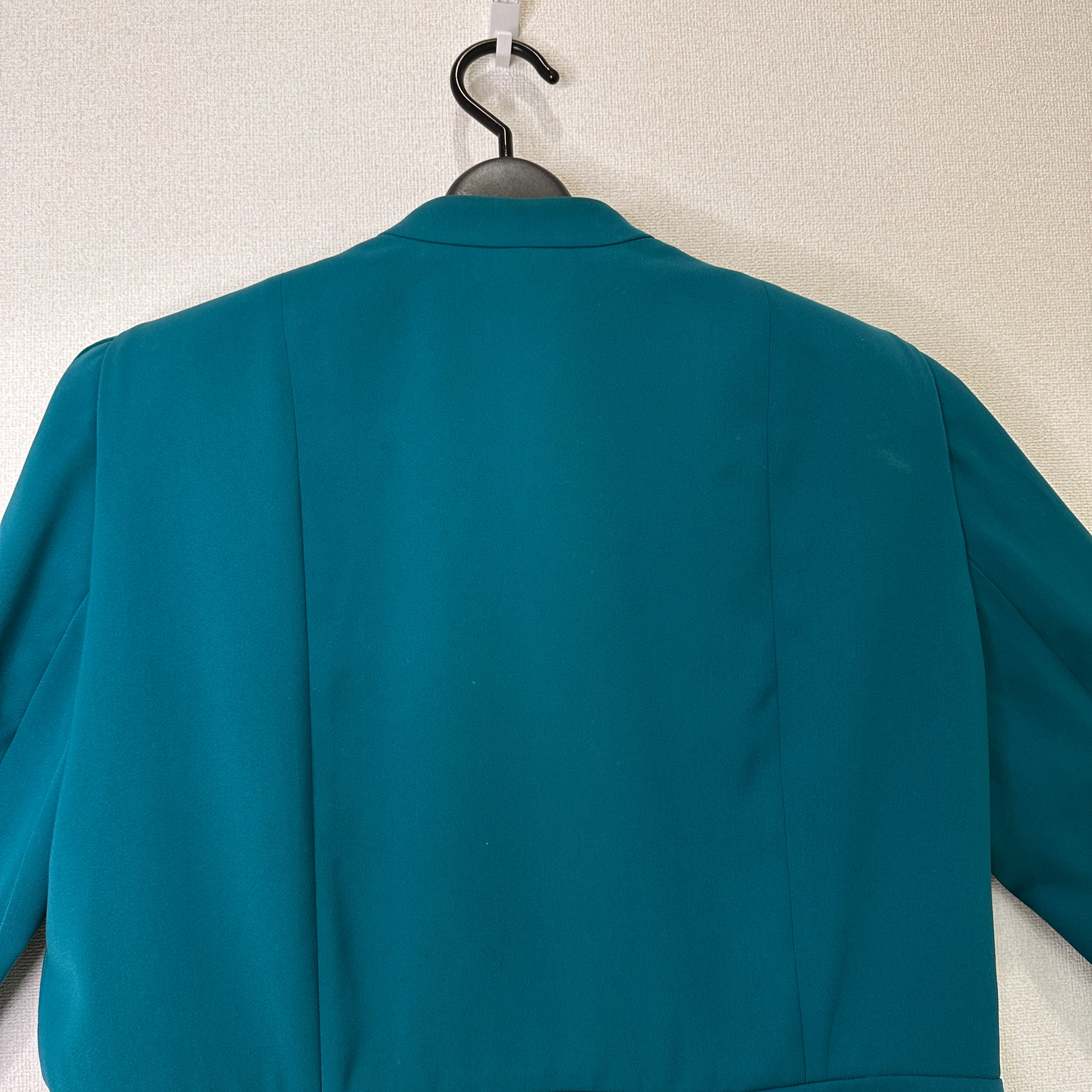 目立った傷や汚れはありませんが、中古品にご理解いただける方のみご購入をお願いいたします。ターコイズ色のショートジャケット、シンプルでエレガントなデザイン。