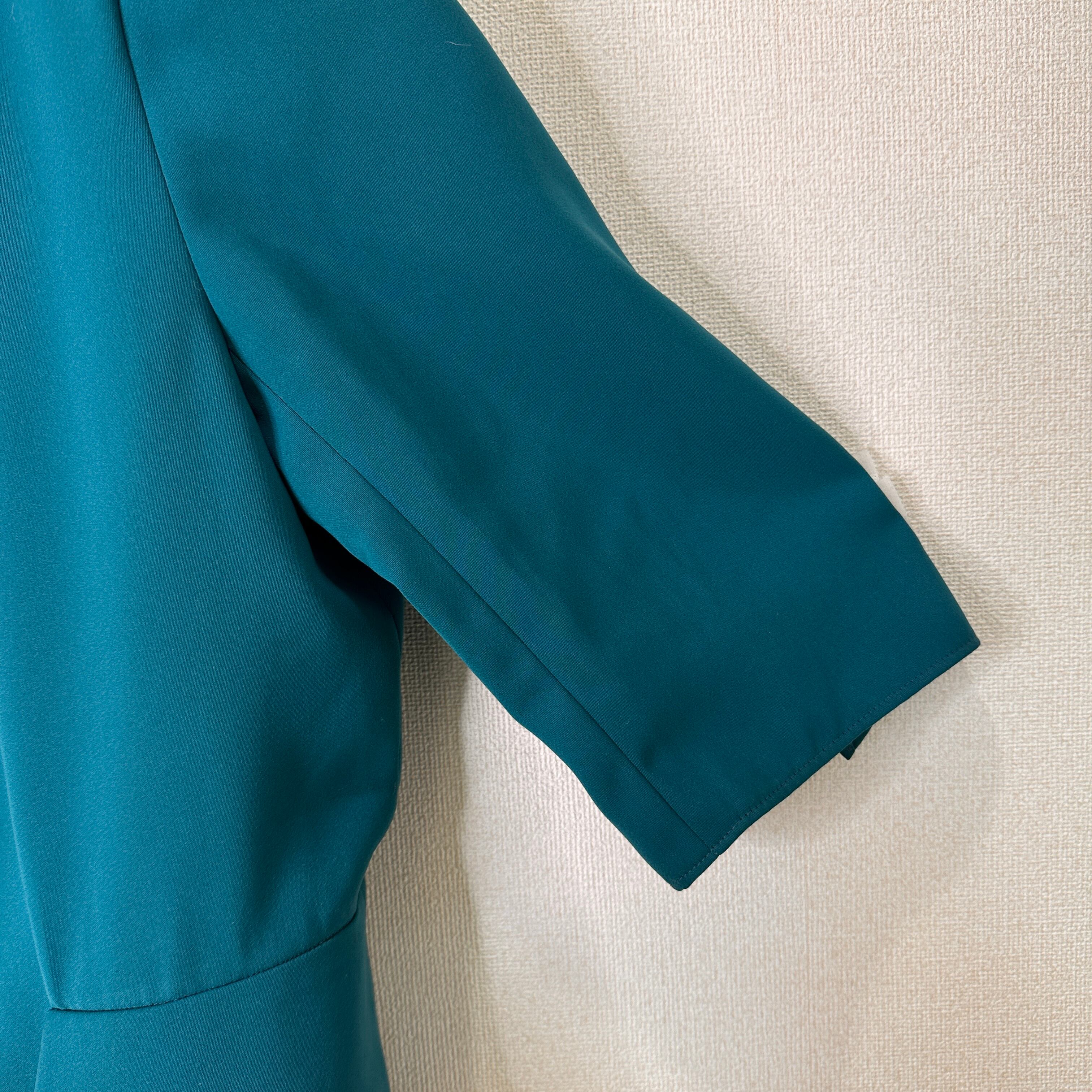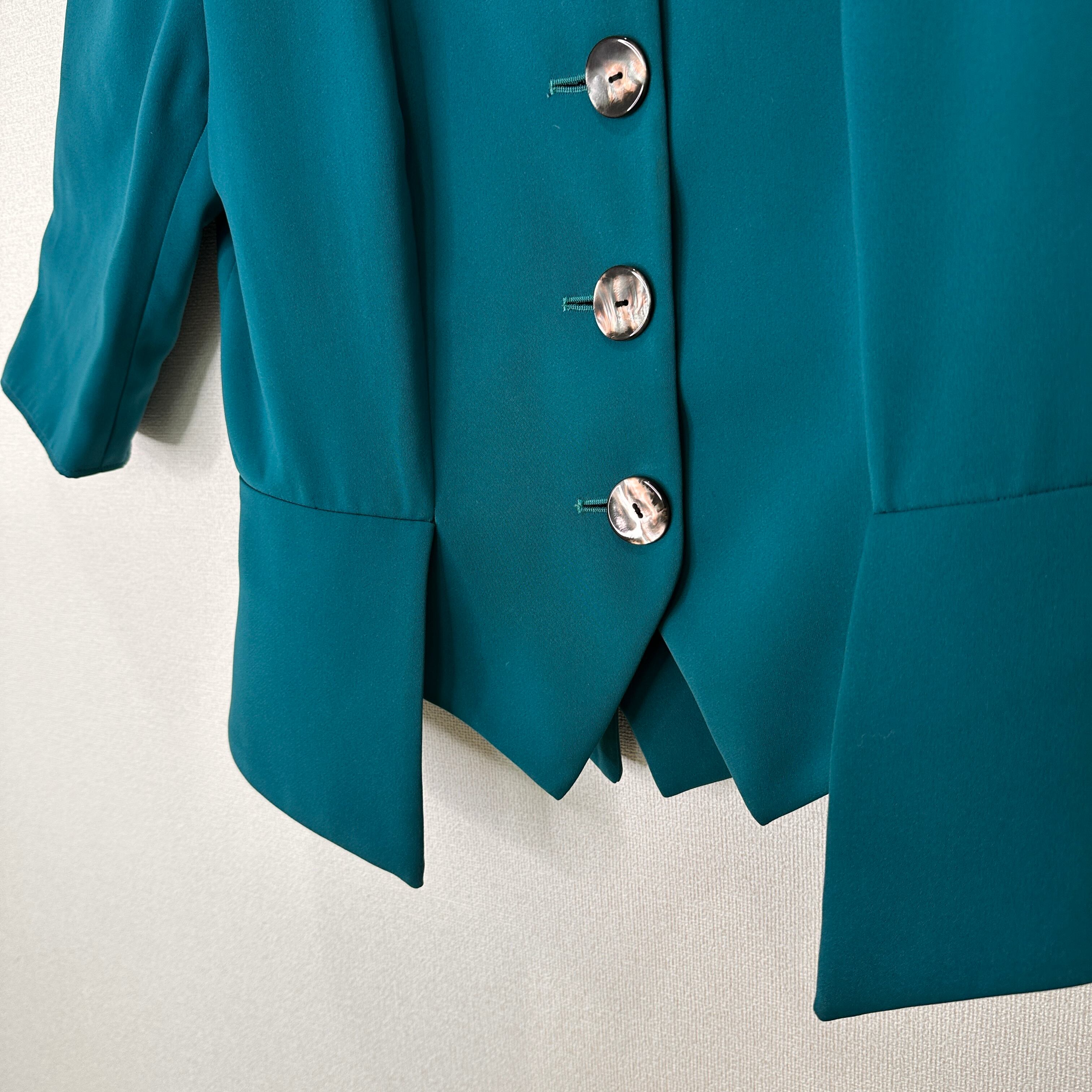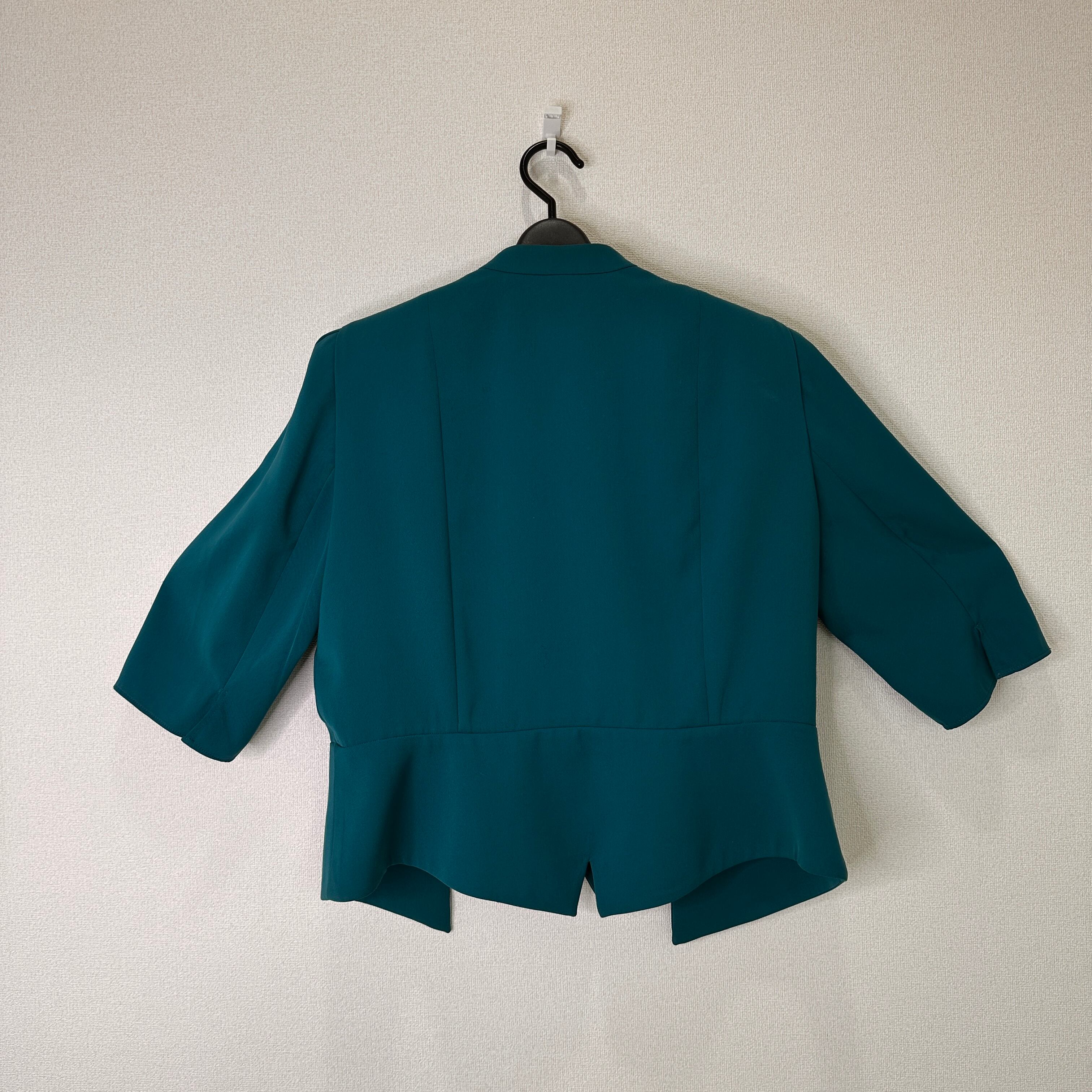 目立った傷や汚れはありませんが、中古品にご理解いただける方のみご購入をお願いいたします。ターコイズ色のショートジャケット、シンプルでエレガントなデザイン。