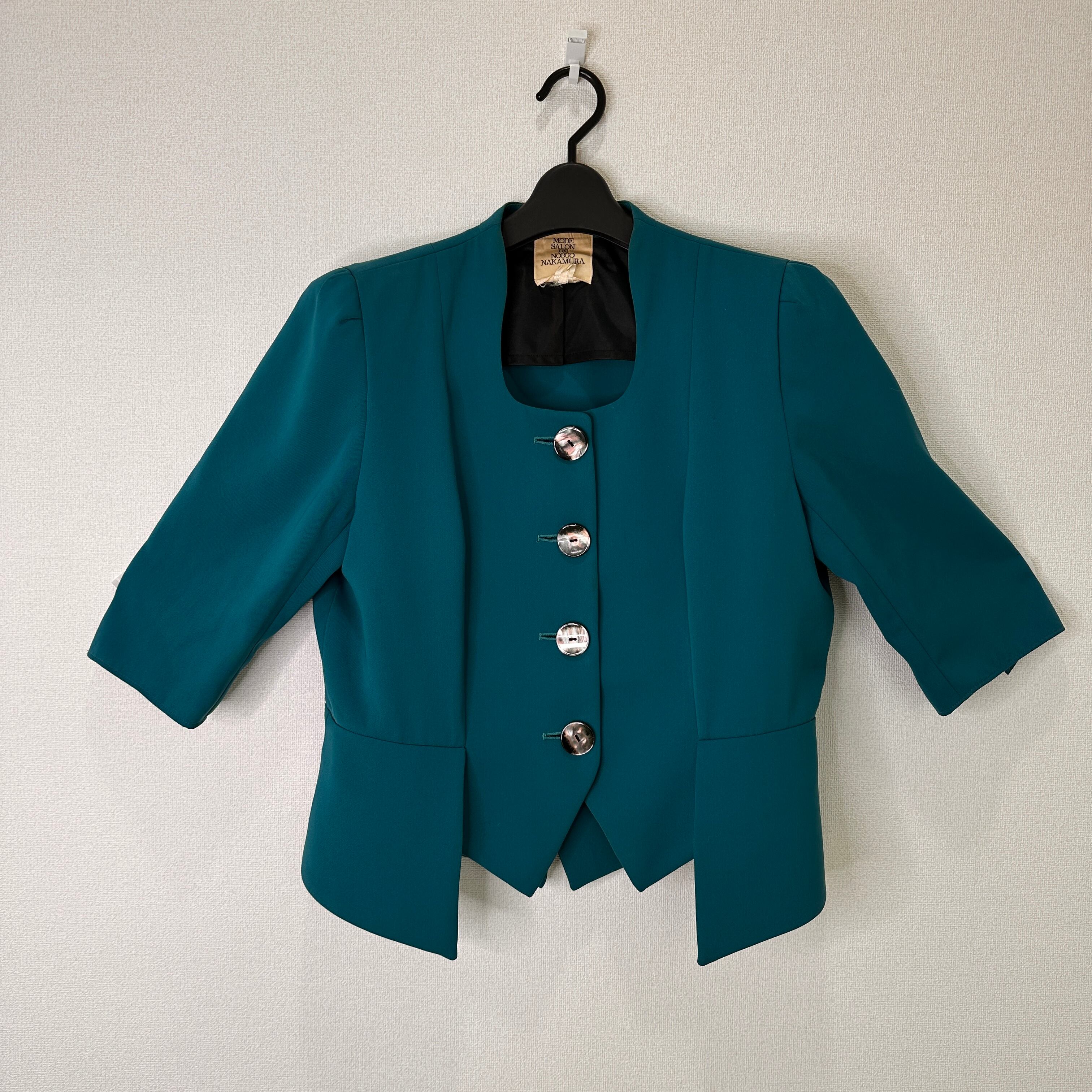 MODE SALON DE NOBUO NAKAMURAの、鮮やかなターコイズブルー(または深みのあるエメラルドグリーン)のジャケットです。