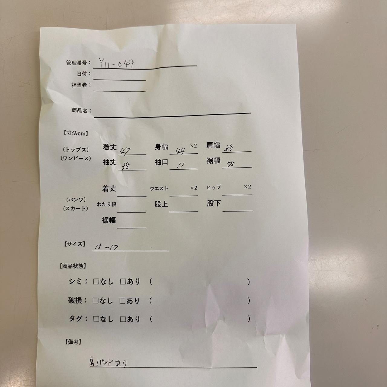 管理番号:Y11-049#てまいらずアパレル商品一覧