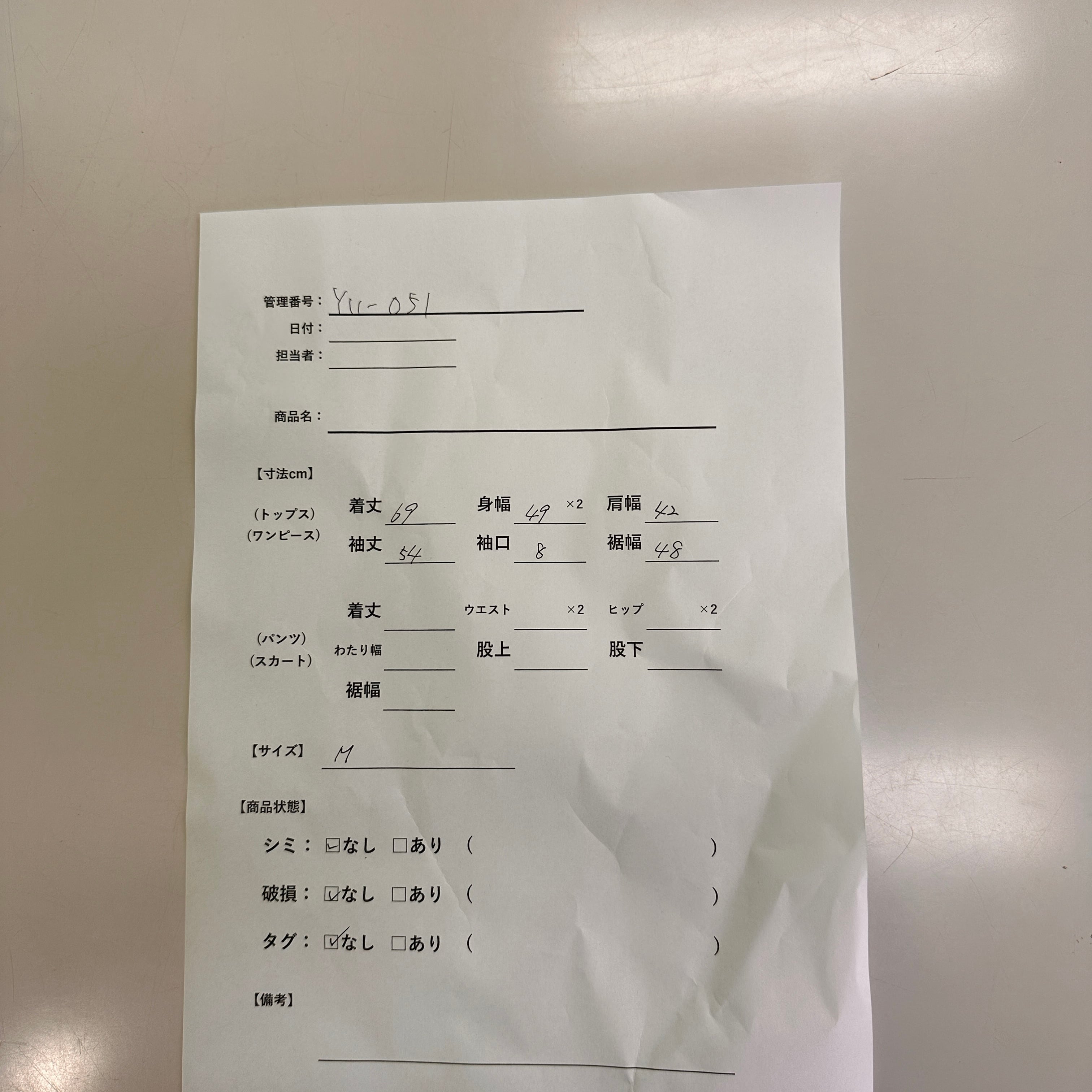 管理番号:Y11-051#てまいらずアパレル商品一覧