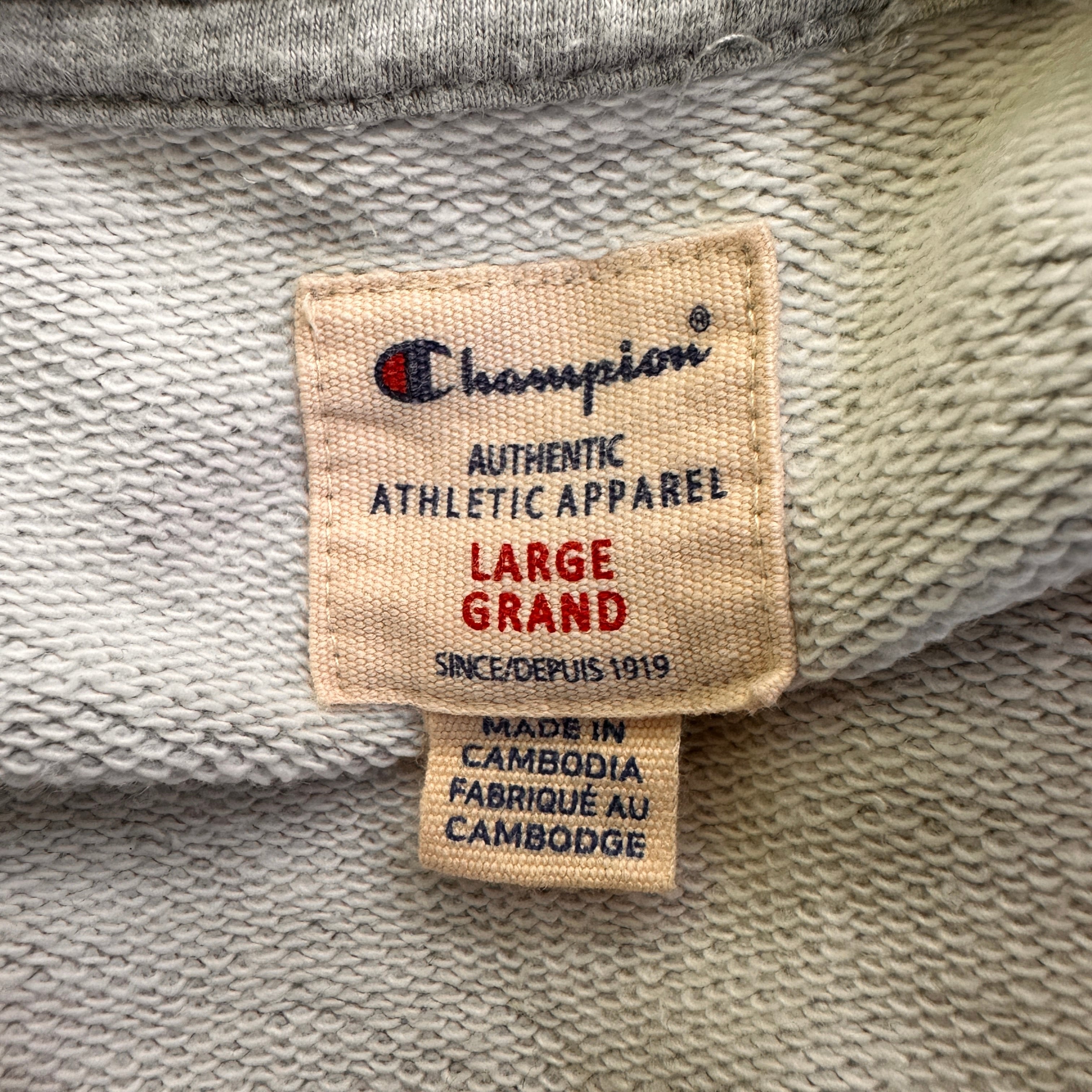 Championのグレーのスウェット、Lサイズで快適な着心地を提供します。
