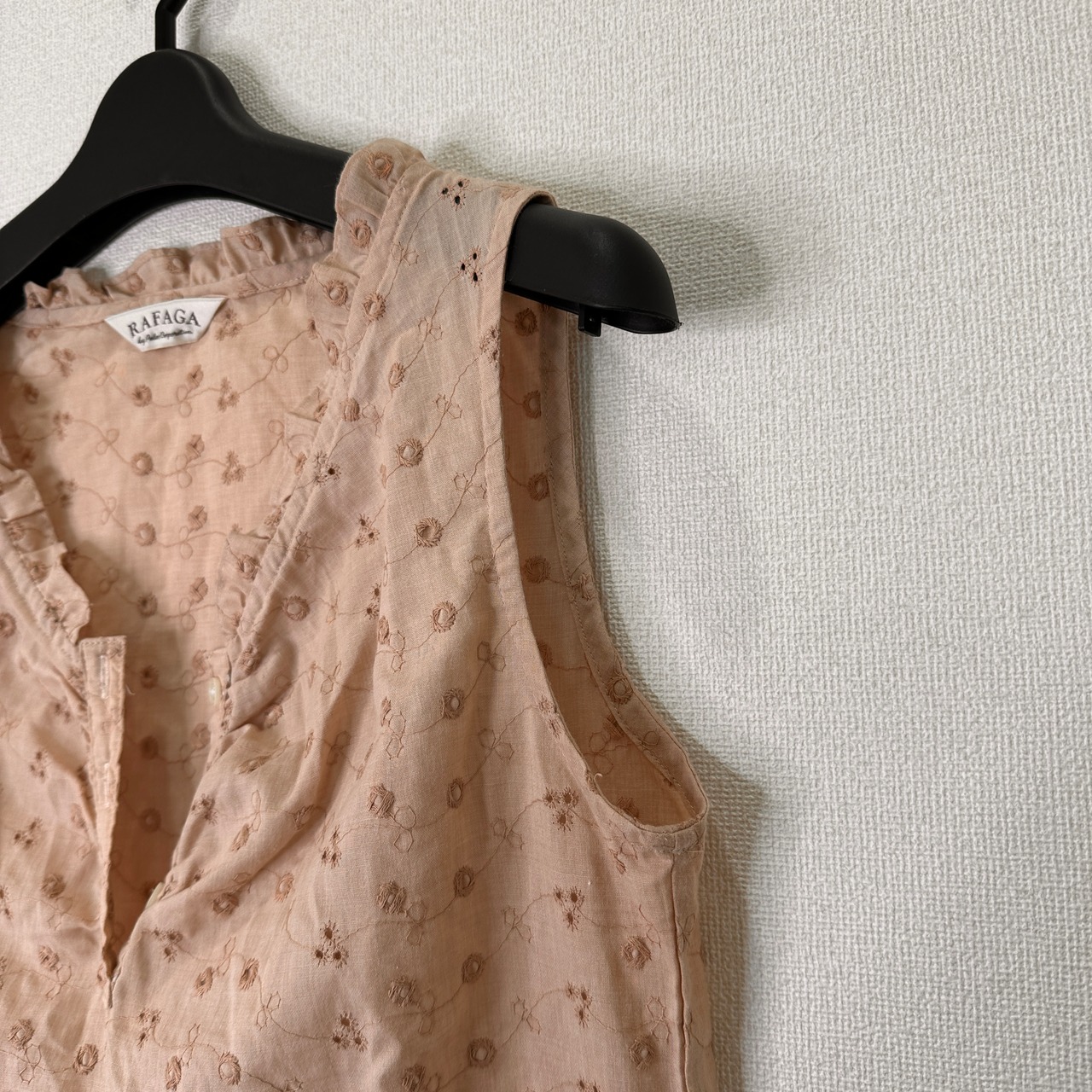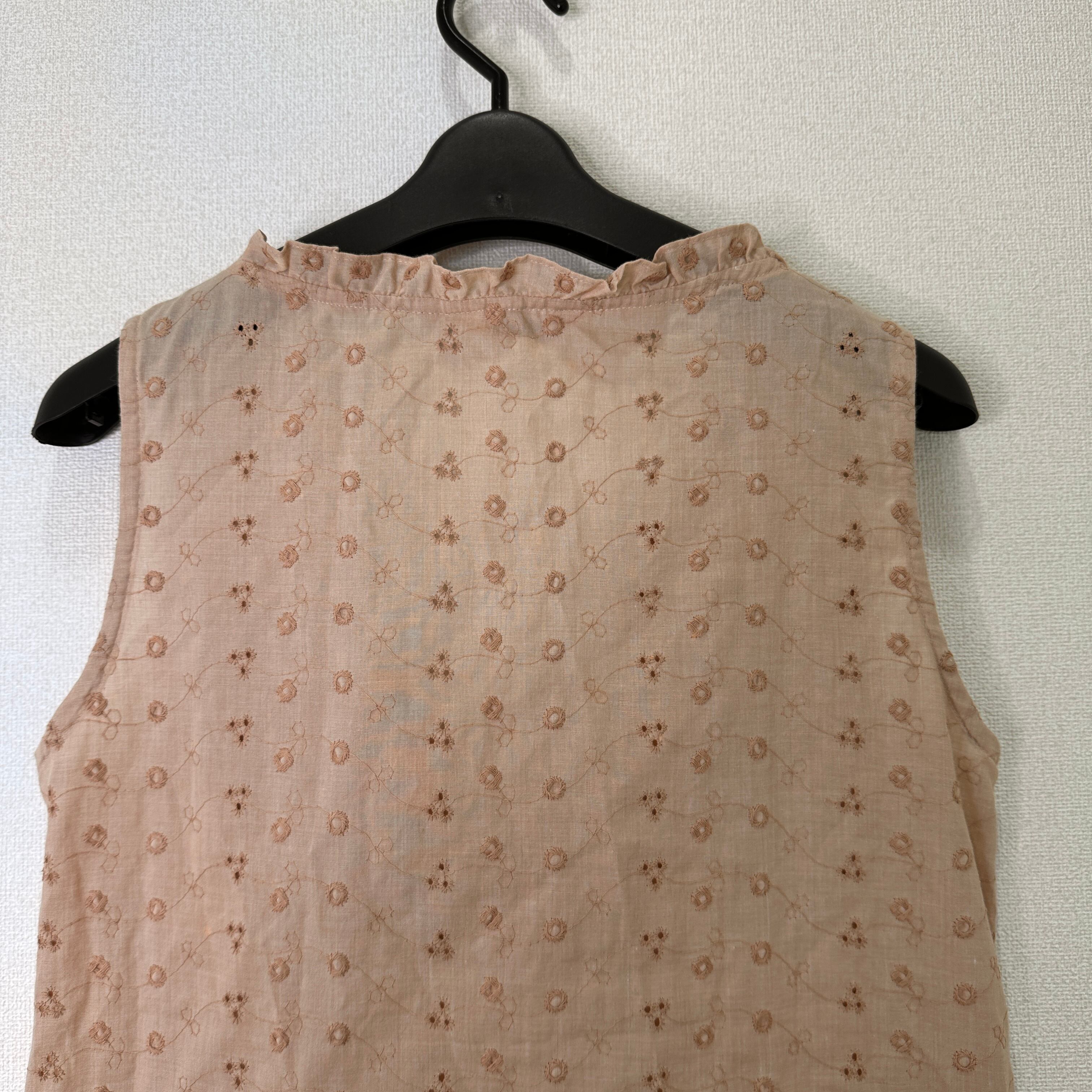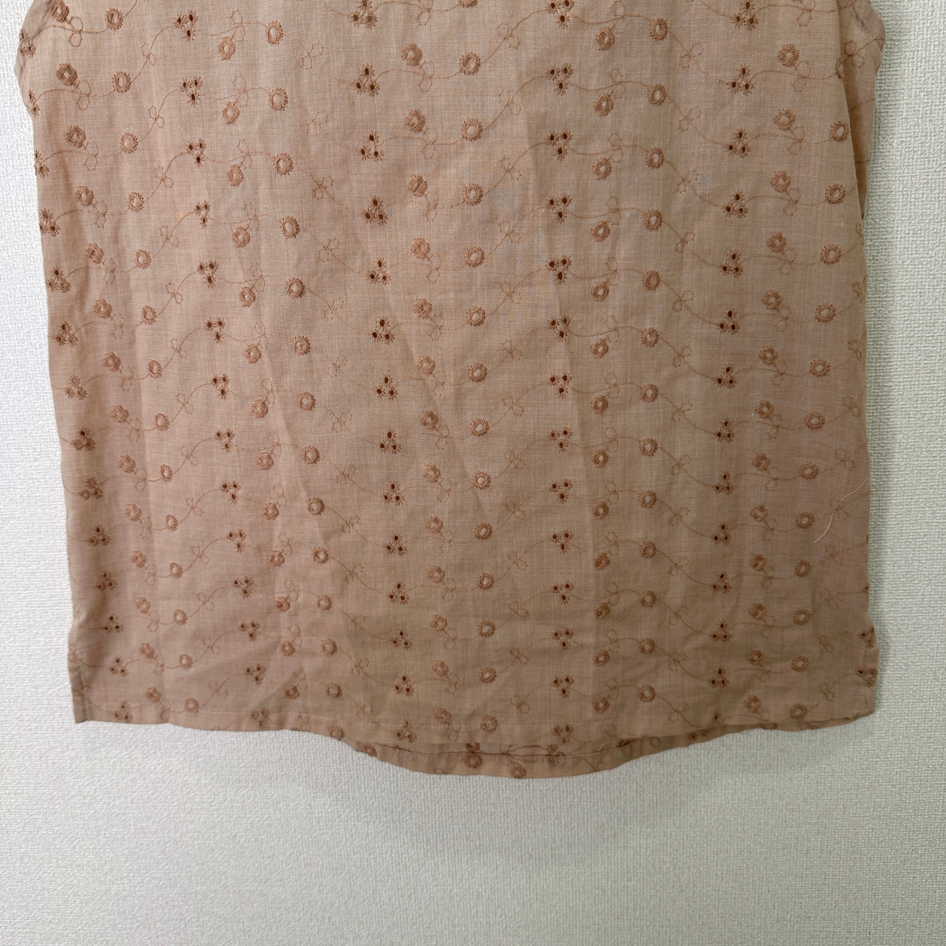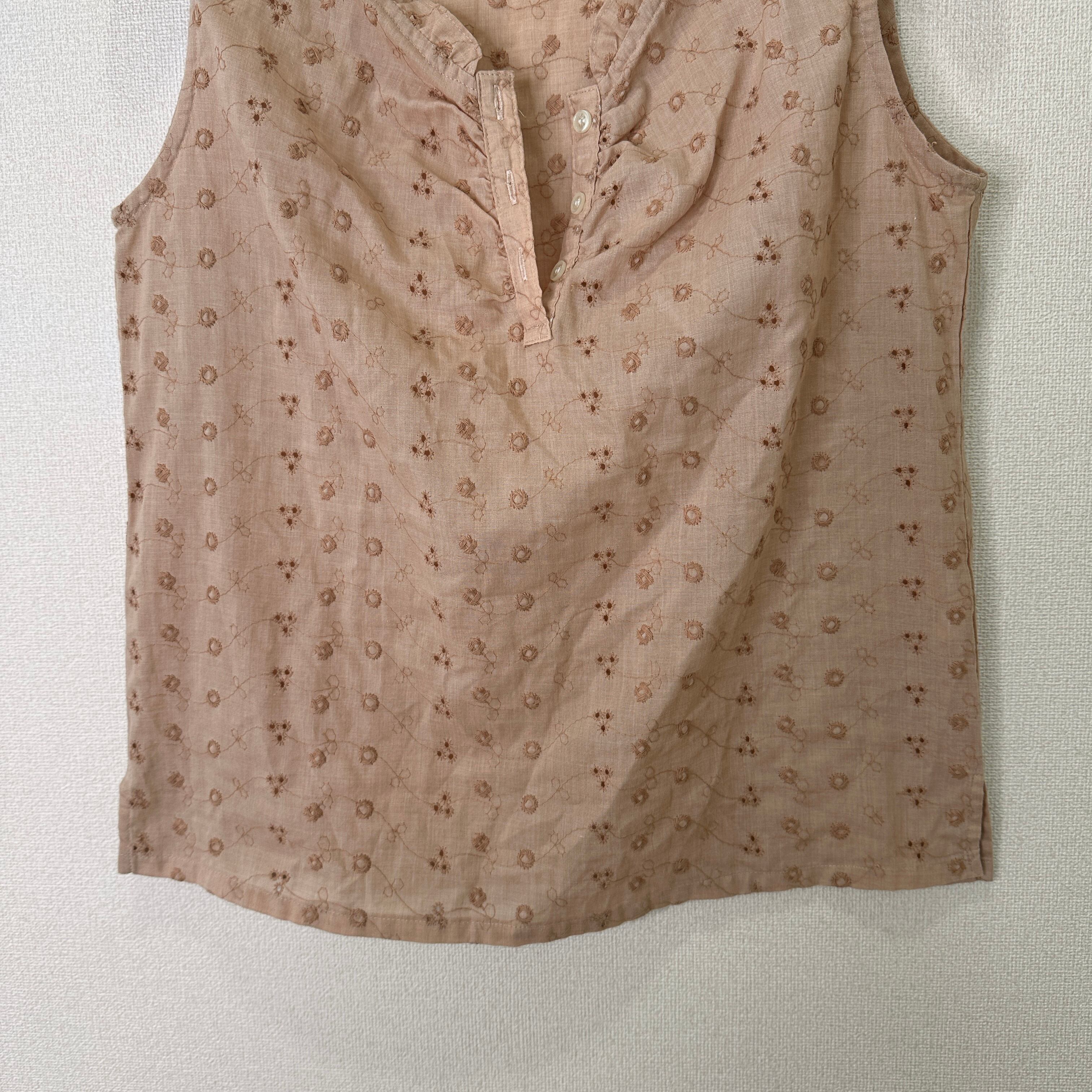 RAFAGA by Palac Corporation ノースリーブ ブラウス 9R/M相当 ベージュ系 総刺繍 フリルネック 日本製
