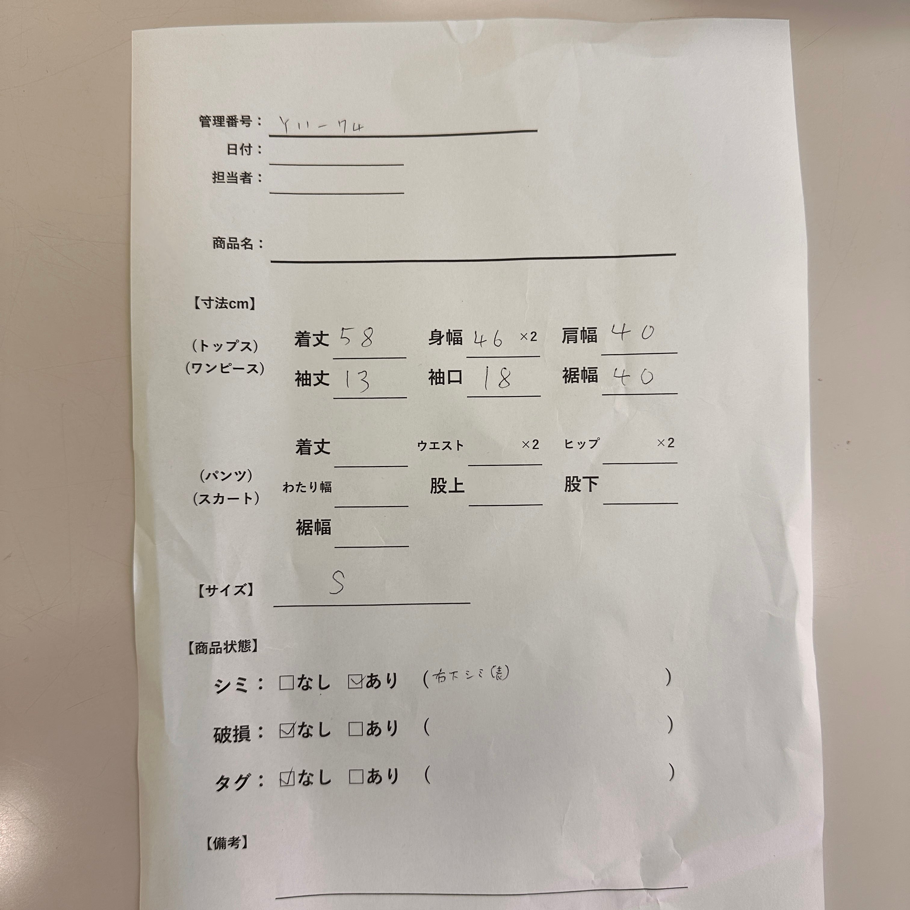 - サイズ: S